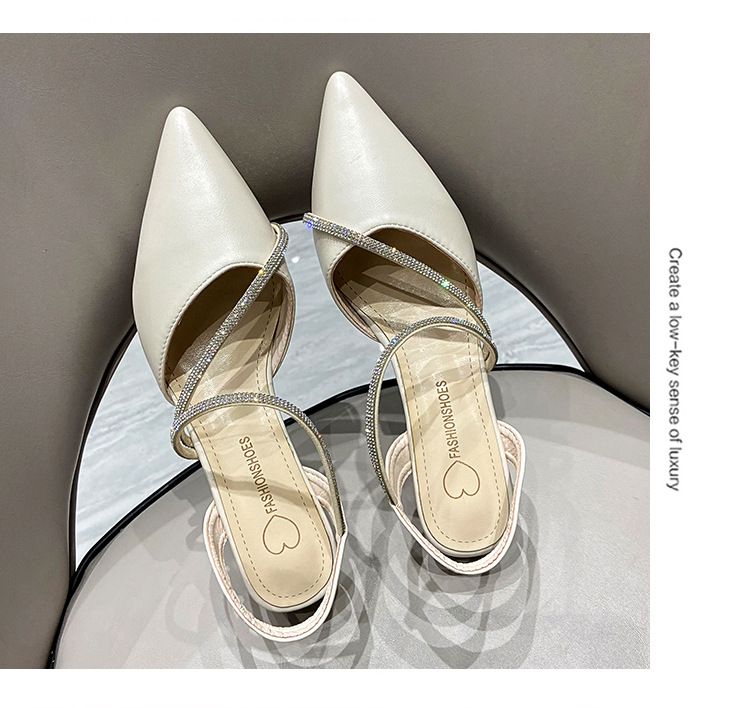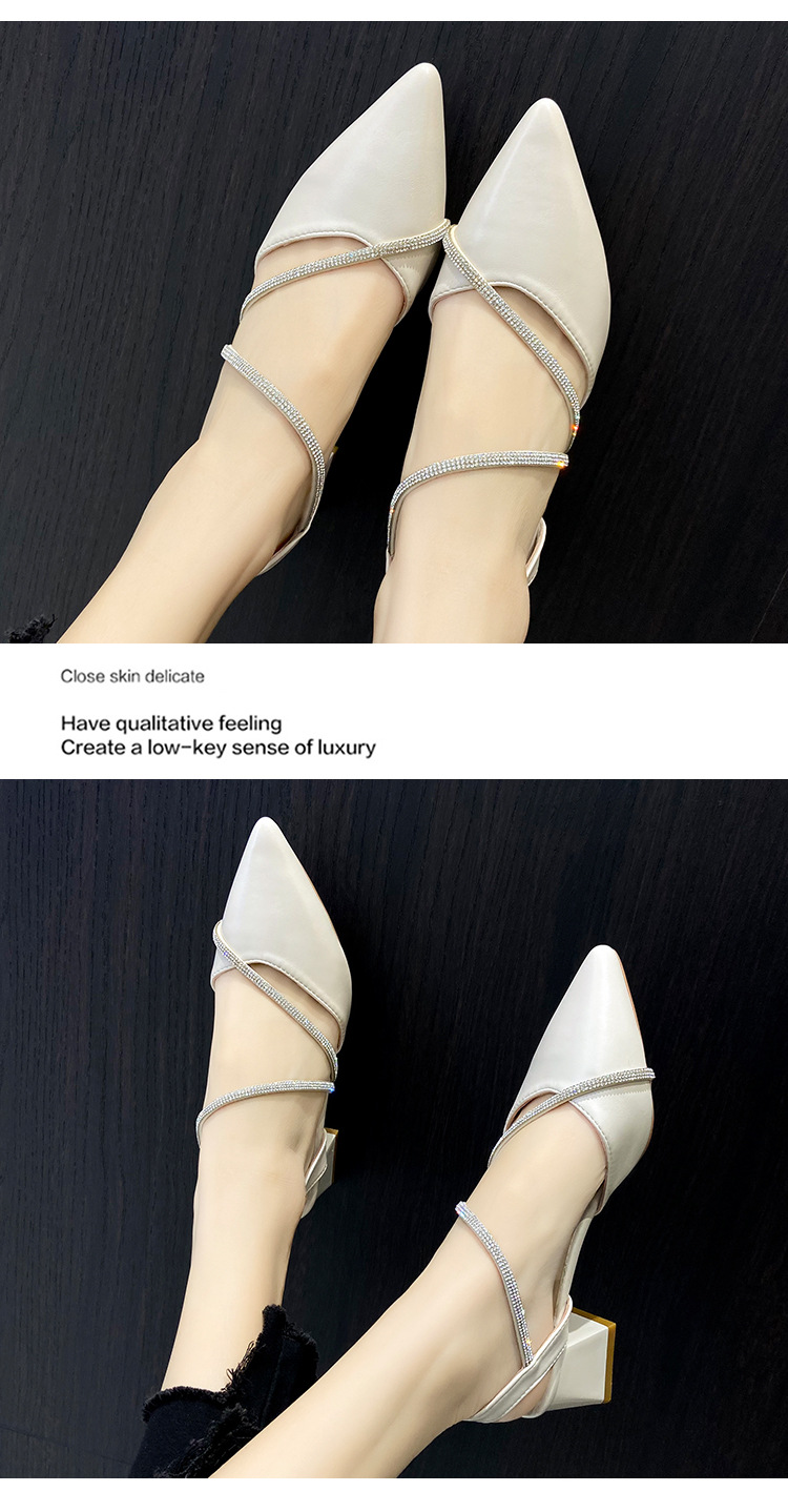 아름다운 부드러운 가죽 샌들 여성 요정 스타일 2025 새로운 한국식 가방 머리 중간 두꺼운 힐 라인스톤 올 매치 여성용 세련된 샌들