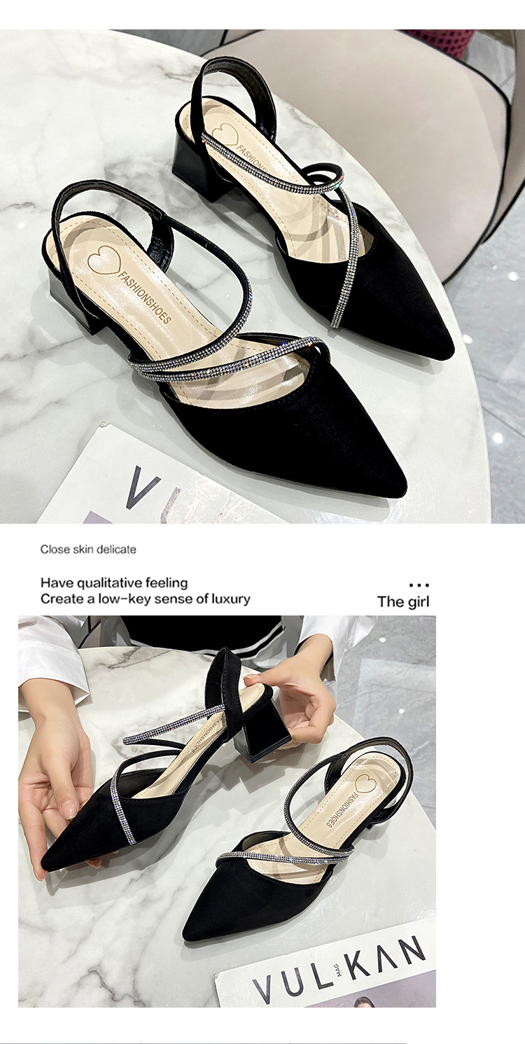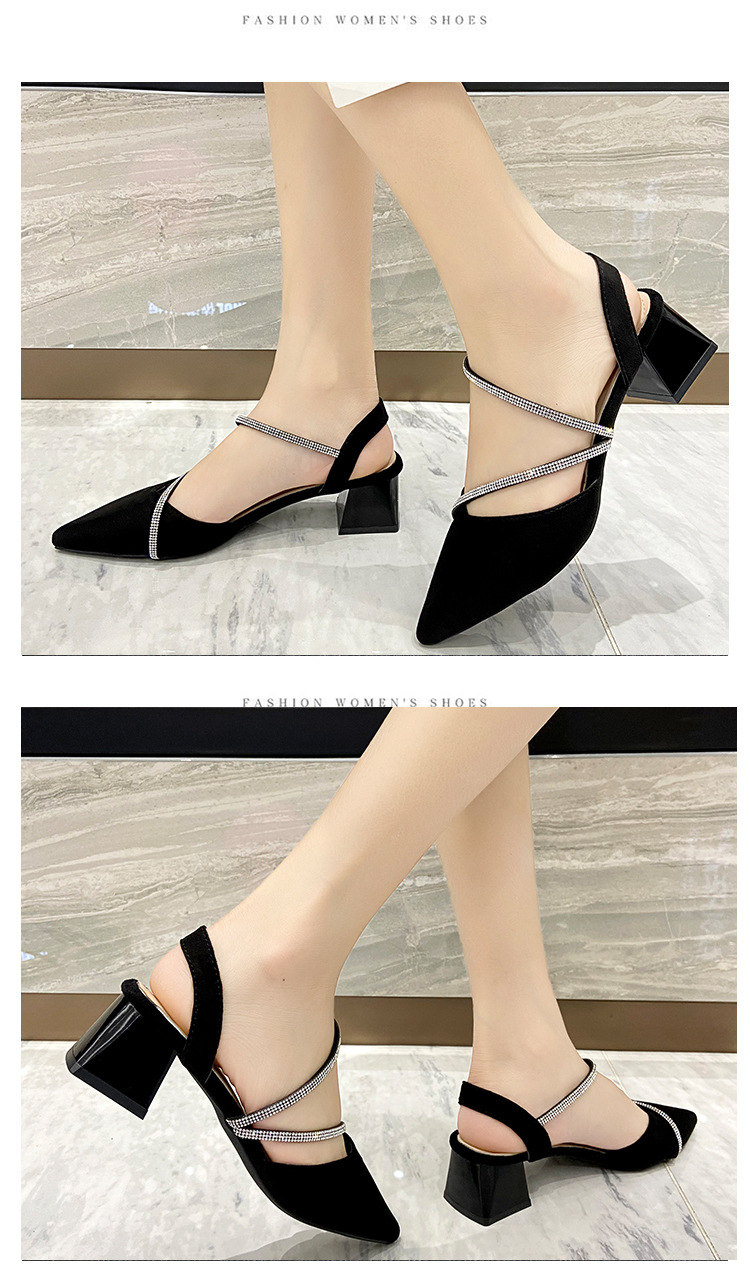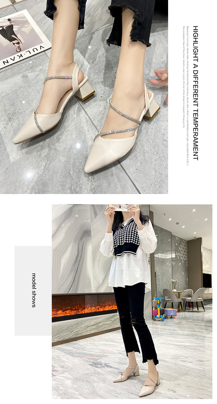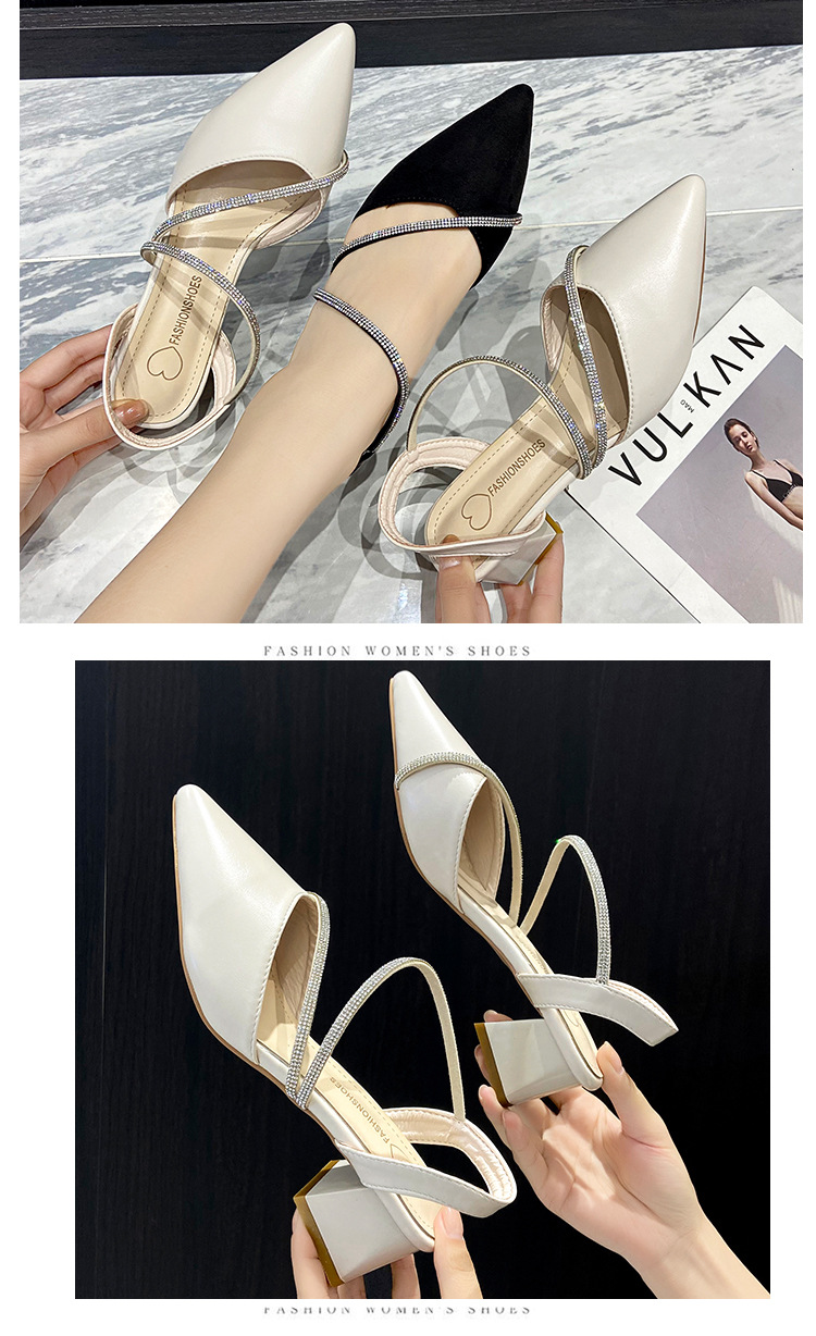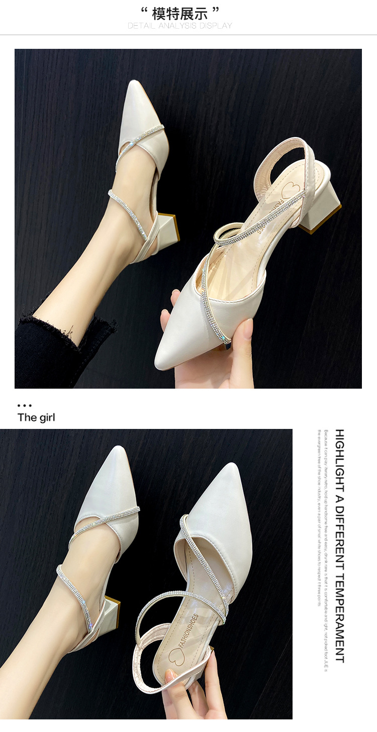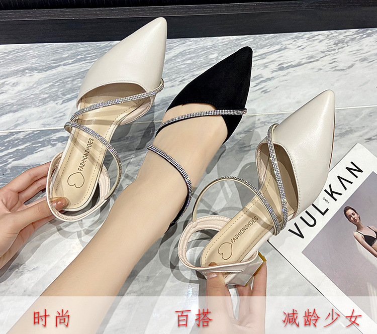 아름다운 부드러운 가죽 샌들 여성 요정 스타일 2025 새로운 한국식 가방 머리 중간 두꺼운 힐 라인스톤 올 매치 여성용 세련된 샌들스토어 가기