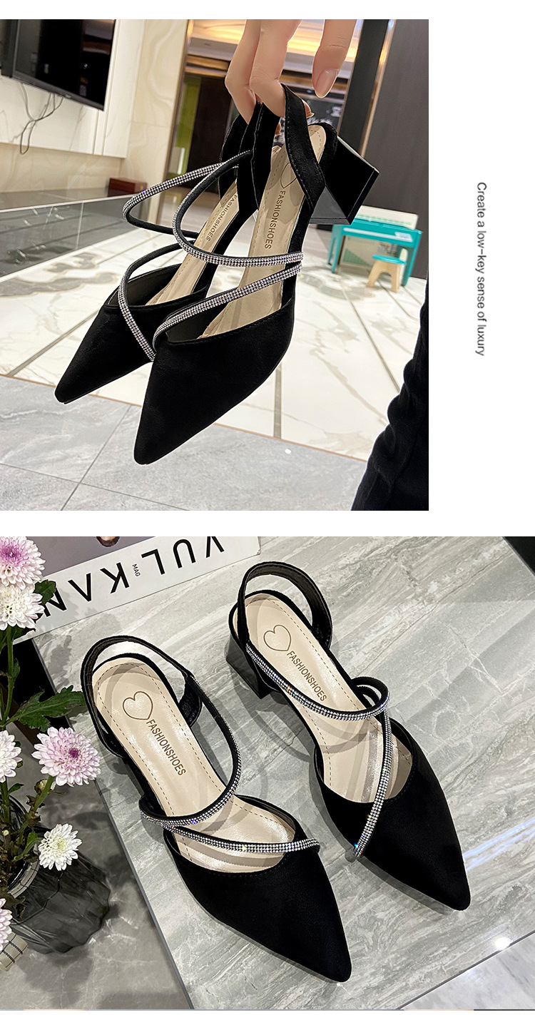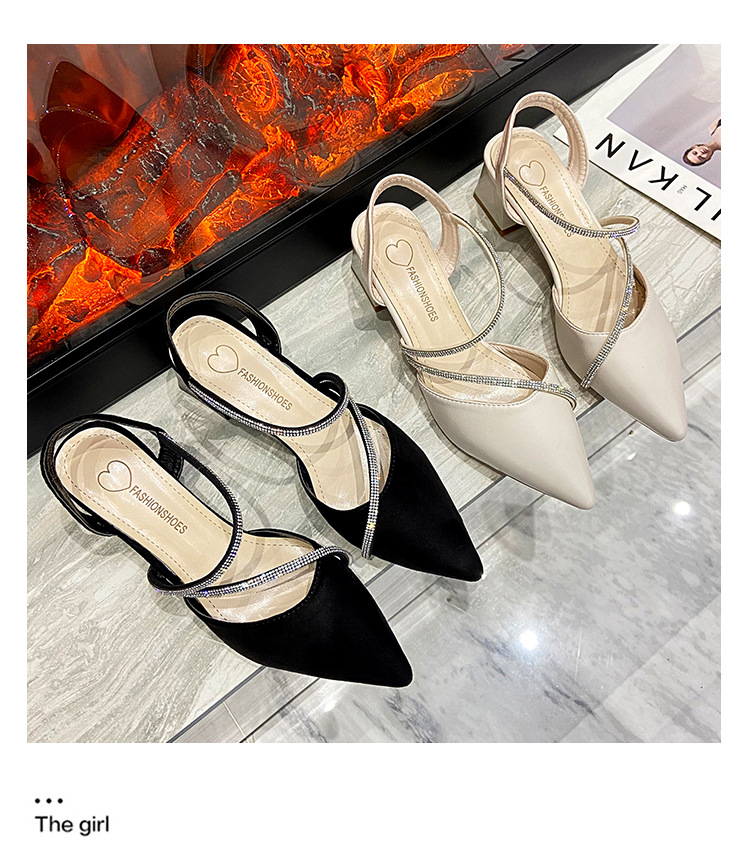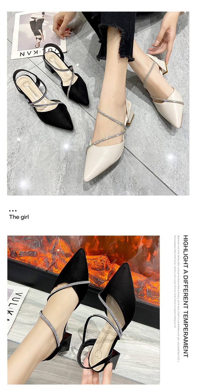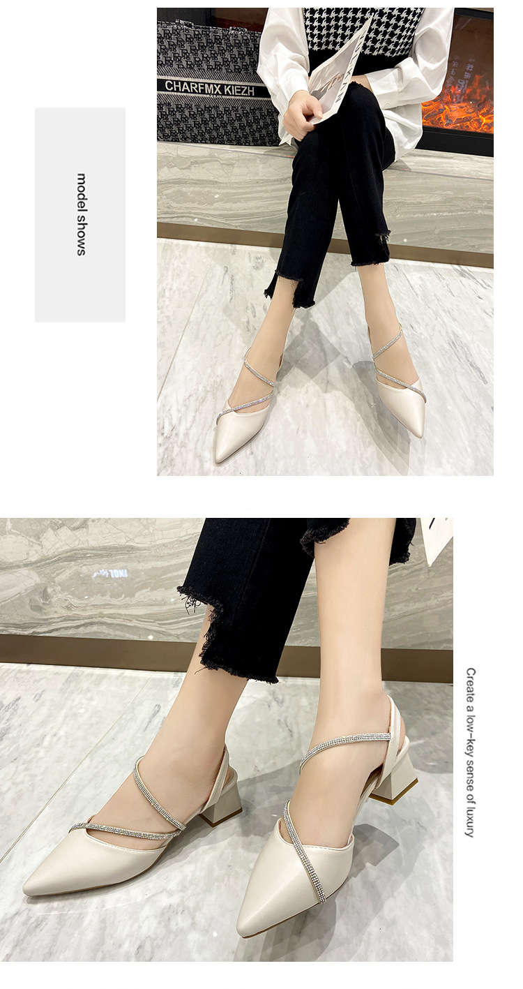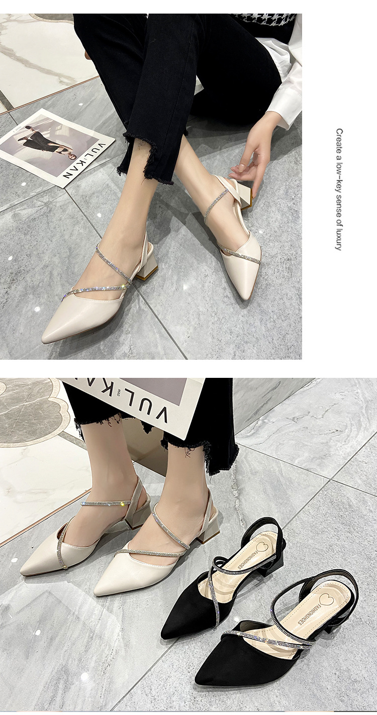 아름다운 부드러운 가죽 샌들 여성 요정 스타일 2025 새로운 한국식 가방 머리 중간 두꺼운 힐 라인스톤 올 매치 여성용 세련된 샌들스토어 가기