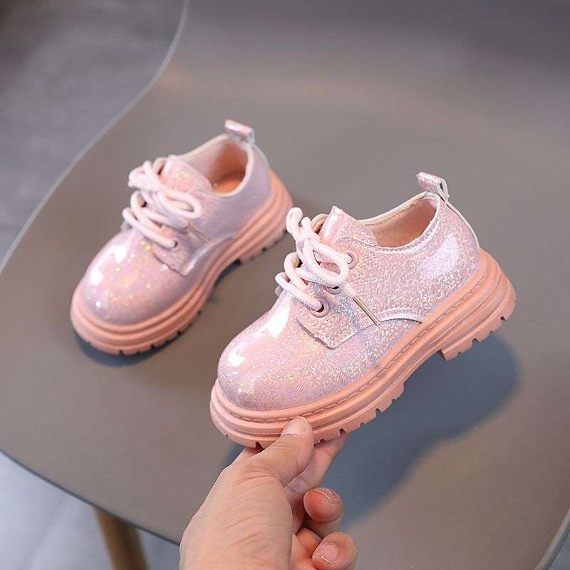 어린이 신발 2025 새로운 봄, 가을 새로운 영국 스타일 어린이 부드러운 바닥 레이스 업 성능 신발 패션 소녀 가죽 신발스토어 가기