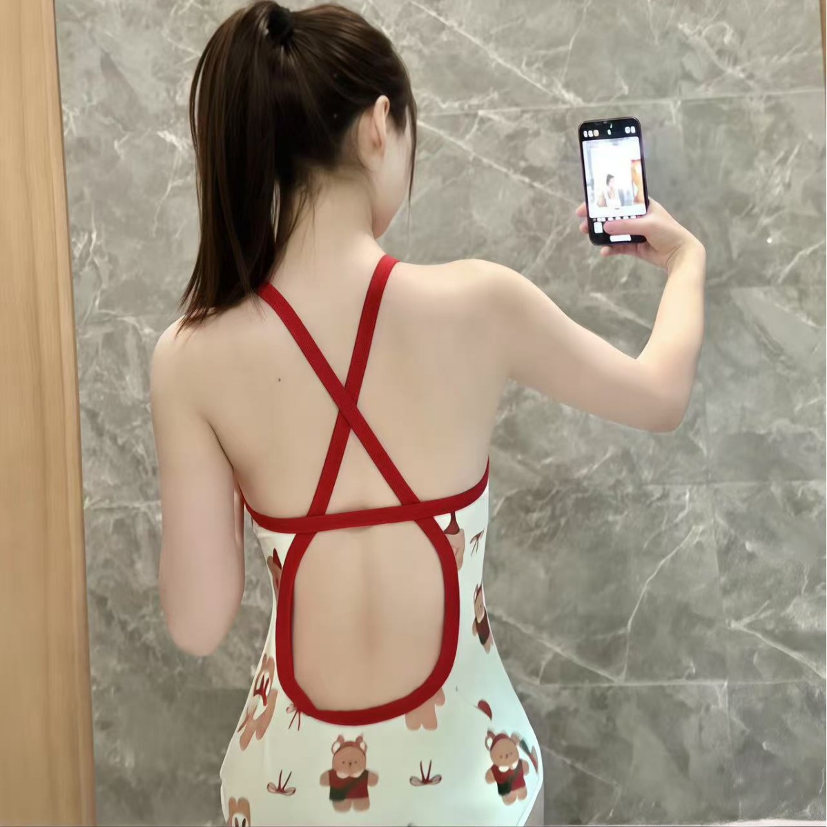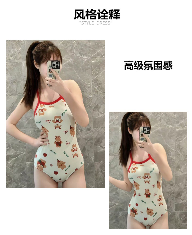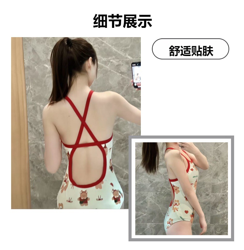 일본 스타일의 여성용 원피스 수영복, 심플하고 섹시한 등 노출 디자인, 온천 휴가용, 고탄력 원피스 수영복스토어 가기
