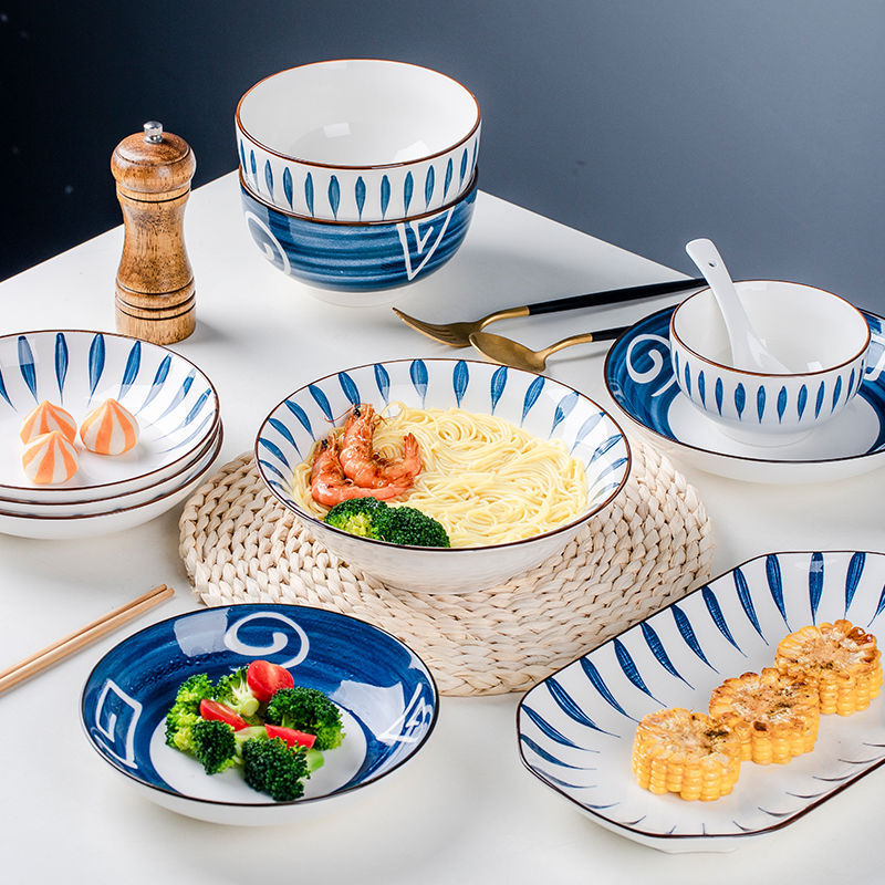 2024 새로운 일본 저 유약 컬러 보울 플레이트 세트 세라믹 식사 그릇 식기 높은 색상 값 세트스토어 가기