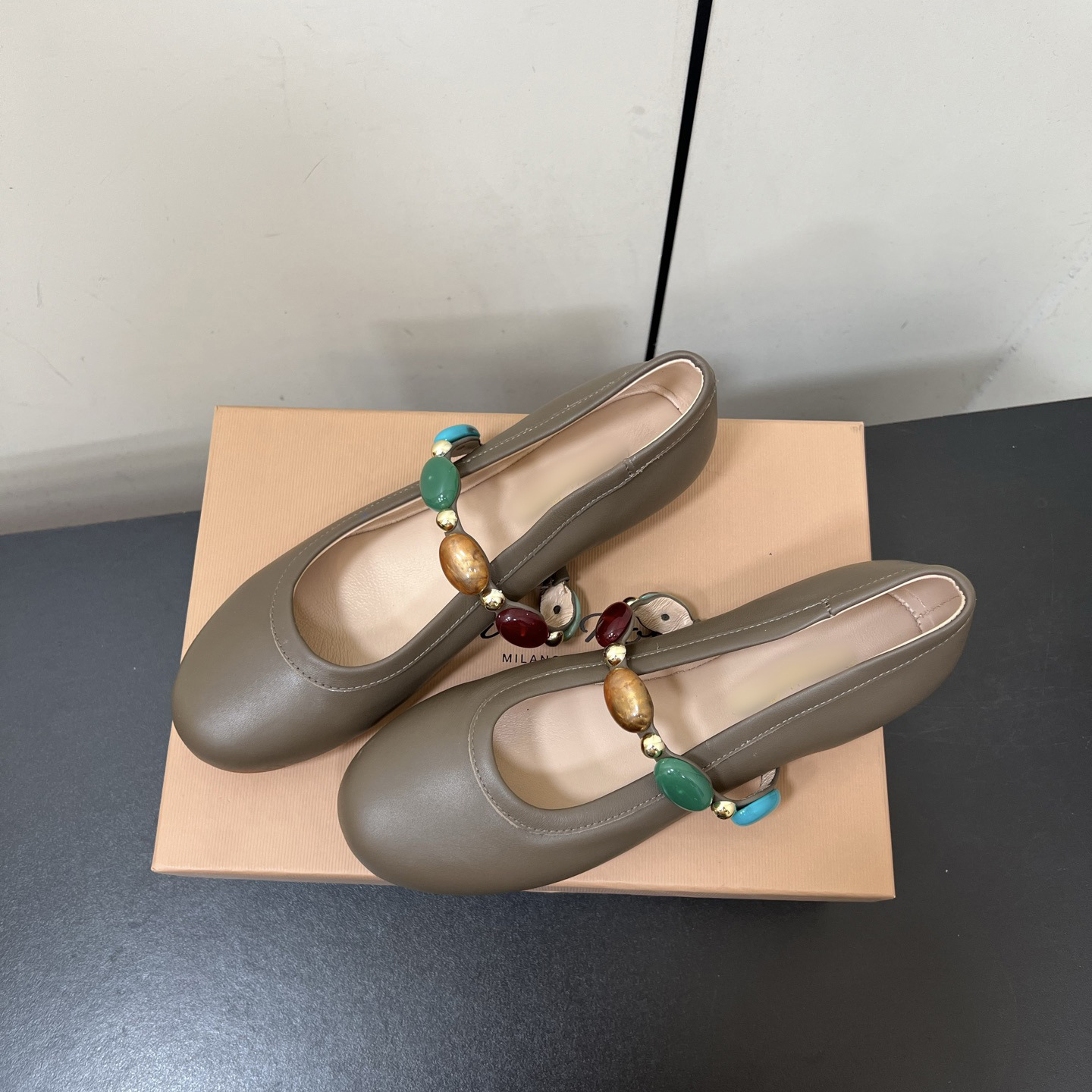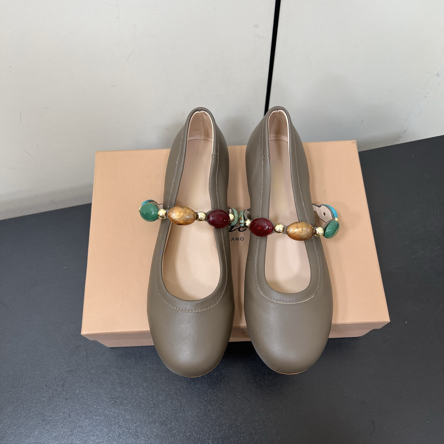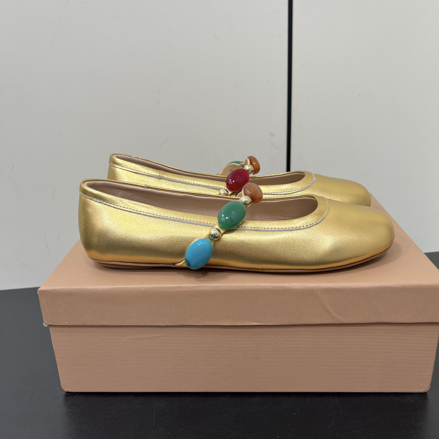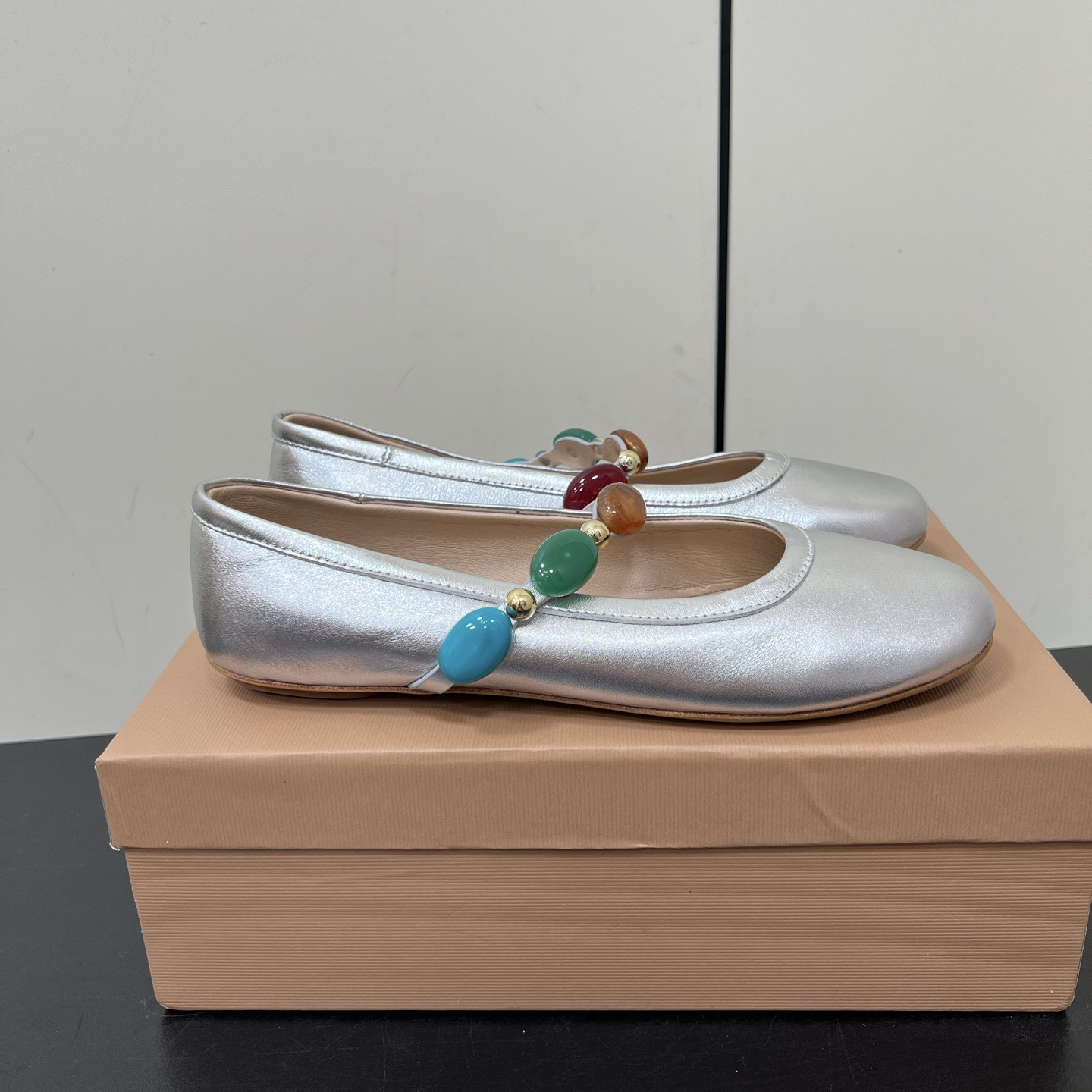 고급 품질 2025 새로운 스타일 정품 가죽 라운드 발가락 펌프 수제 보석 플랫 신발 여성용 메리 제인 신발스토어 가기