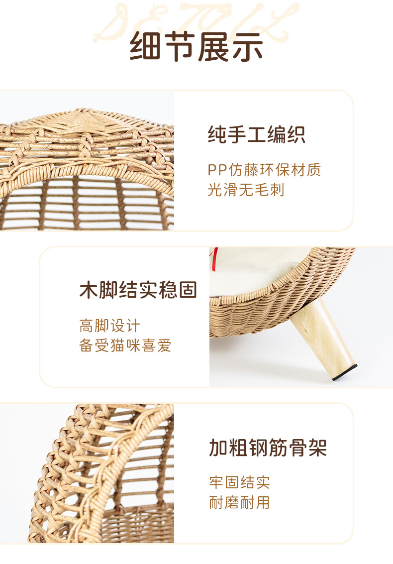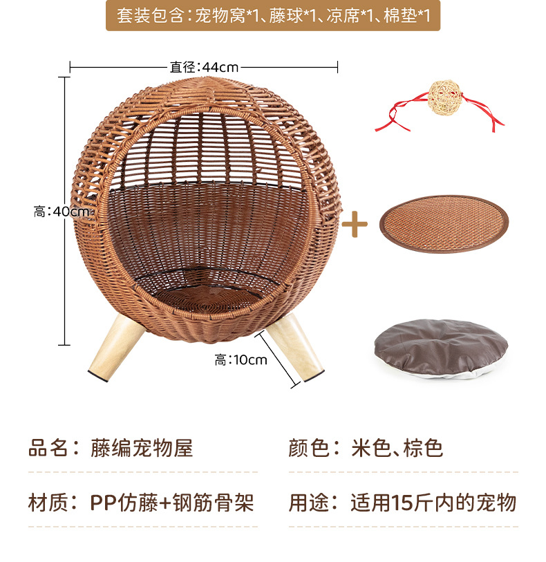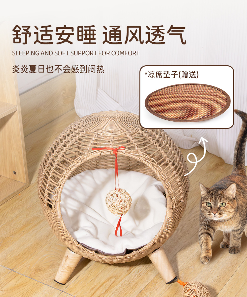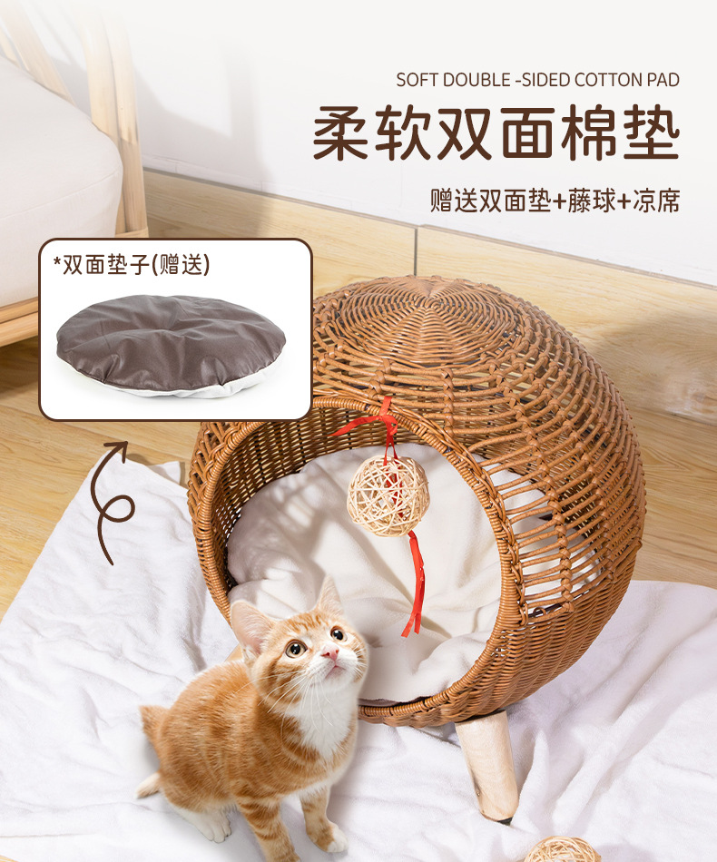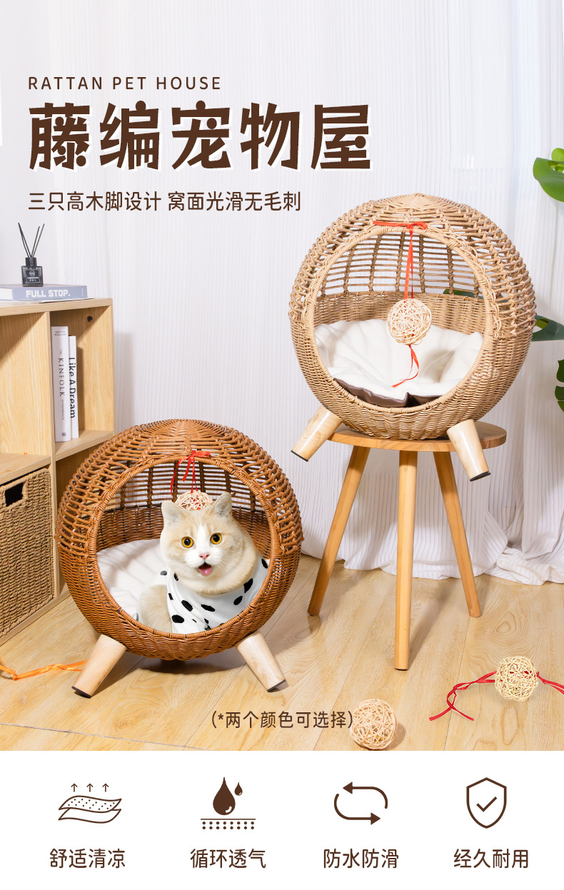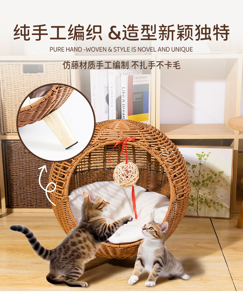 고양이 둥지 등나무 고양이 사계절 유니버설 고양이 집 빌라 이동식 및 세척 가능한 가정용 고양이 케이지 개 둥지 고양이 침대 애완 동물 용품스토어 가기