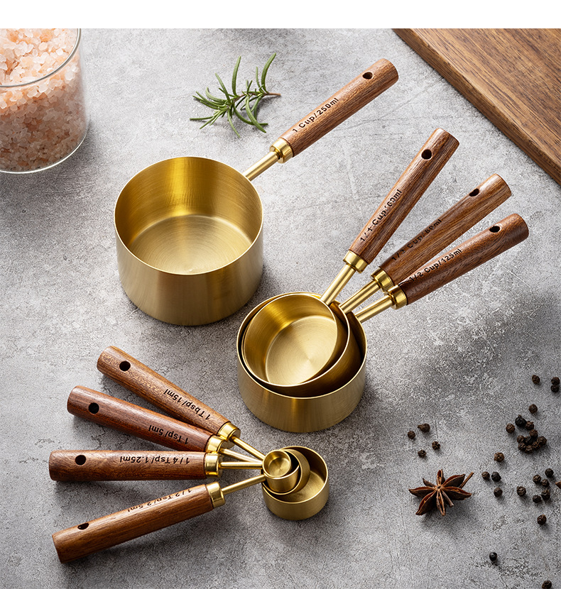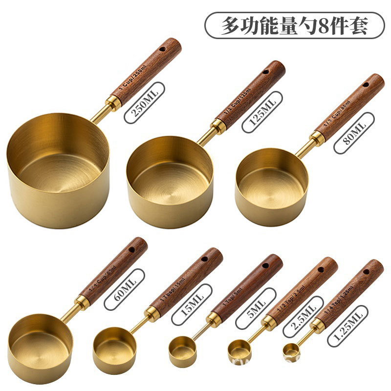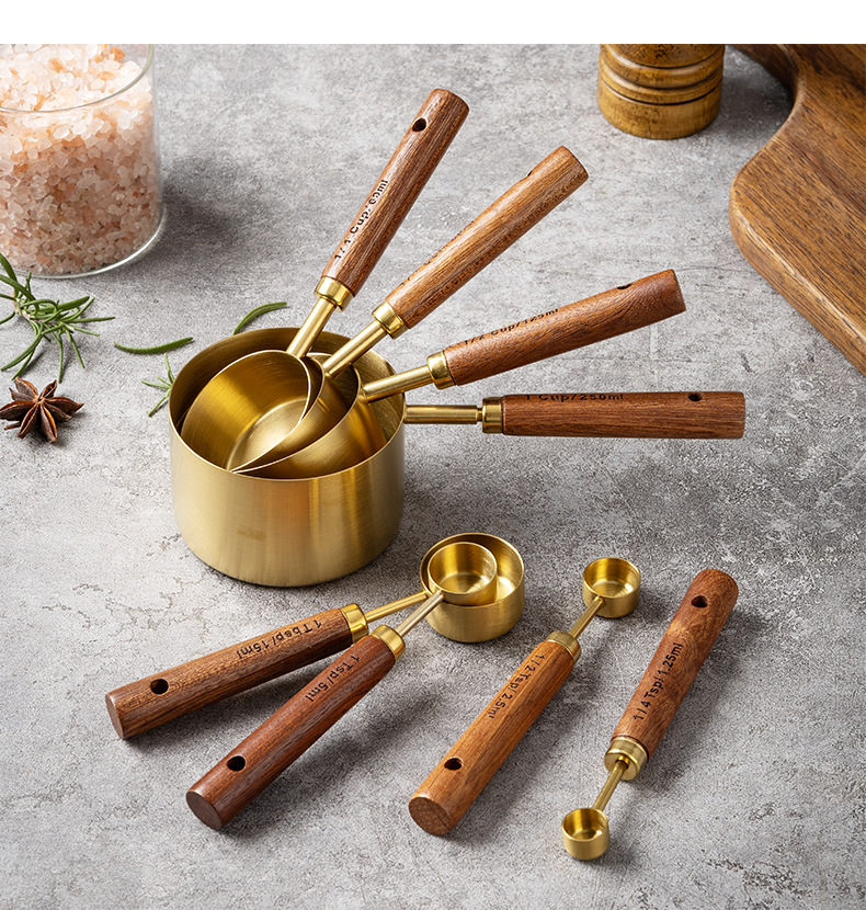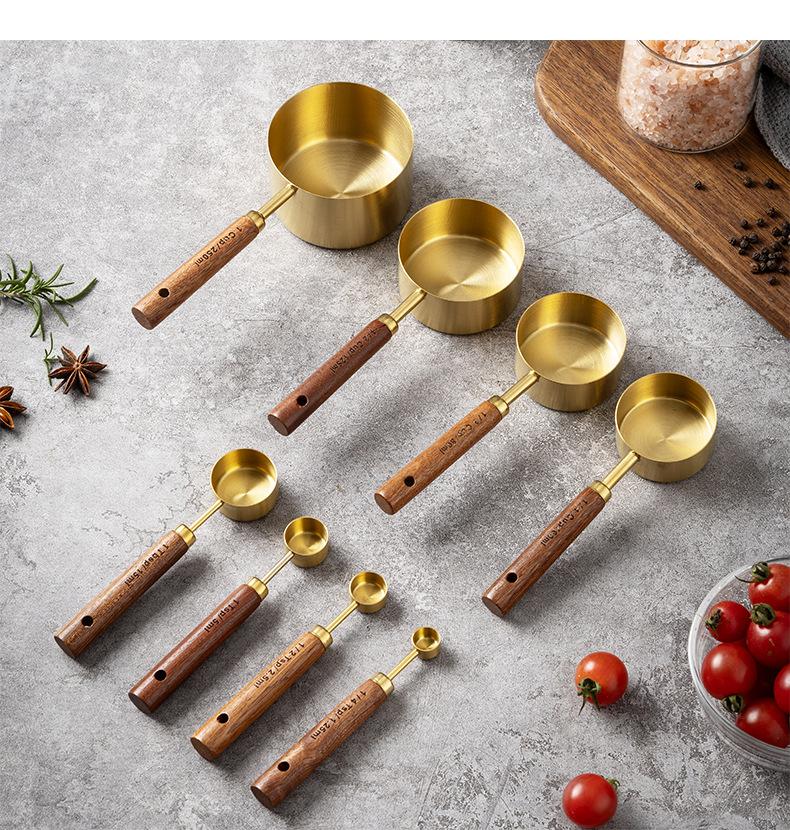 솔리드 우드 측정 컵 측정 숟가락 세트 주방 베이킹 도구 크기 측정 숟가락 8 재고 세트스토어 가기