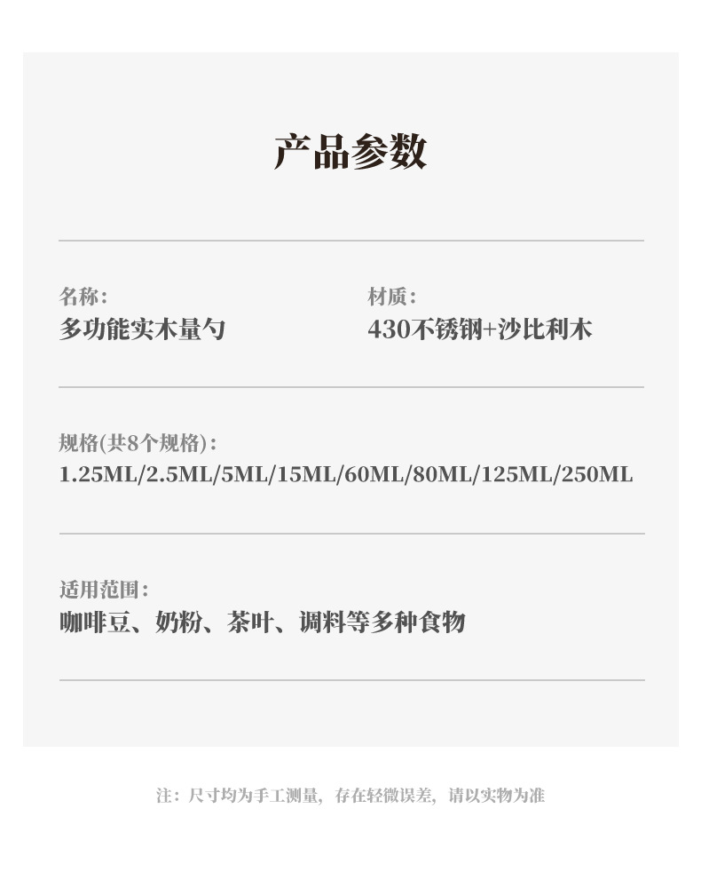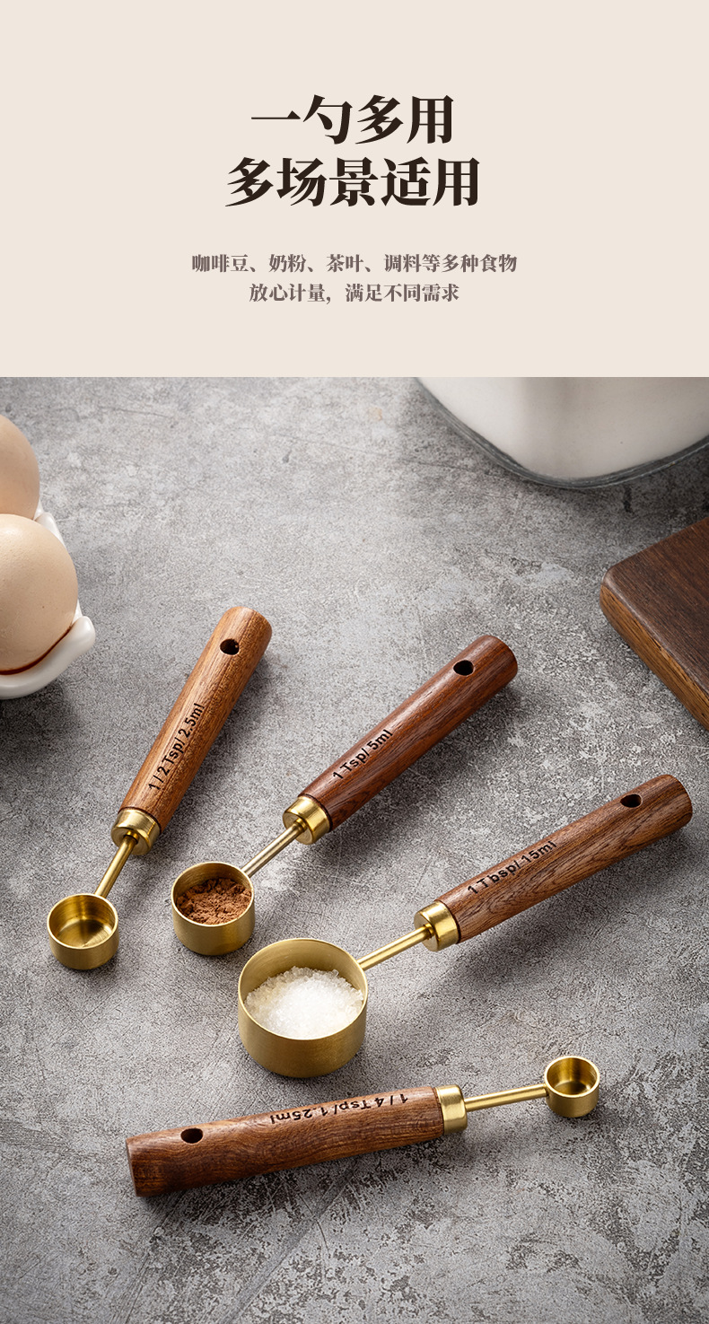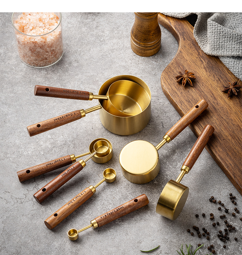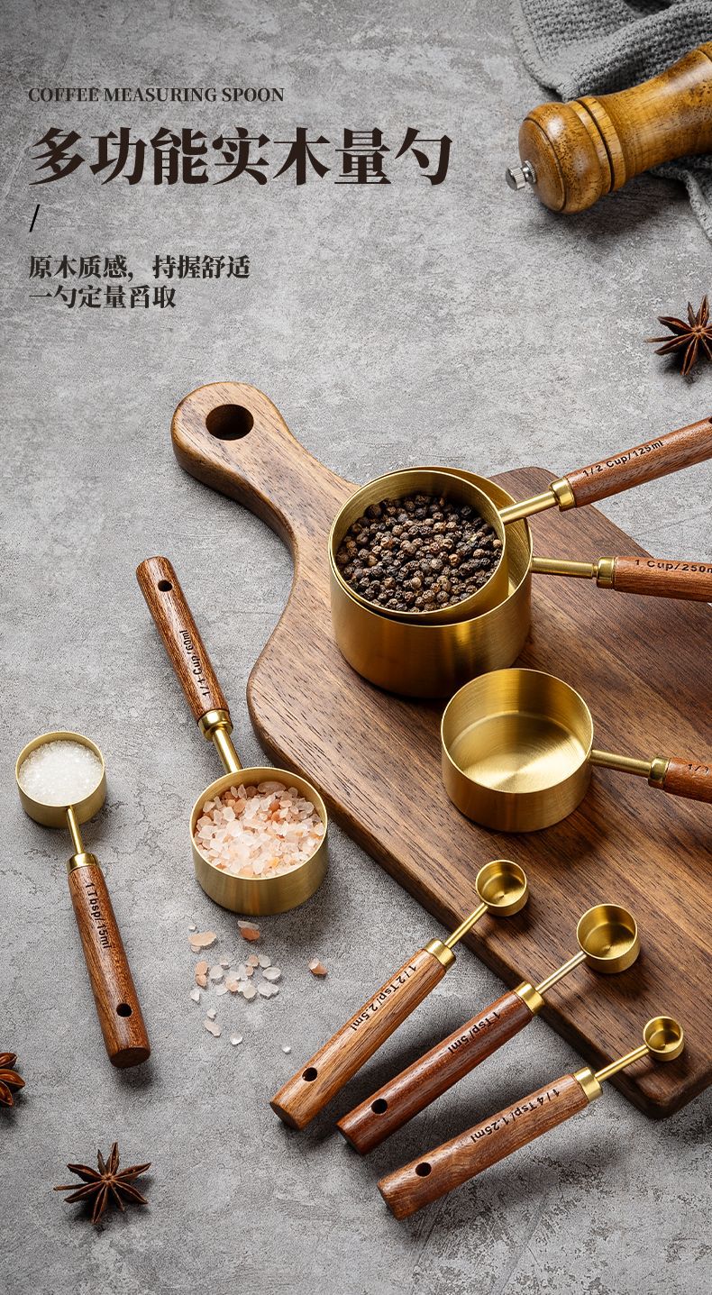 솔리드 우드 측정 컵 측정 숟가락 세트 주방 베이킹 도구 크기 측정 숟가락 8 재고 세트스토어 가기