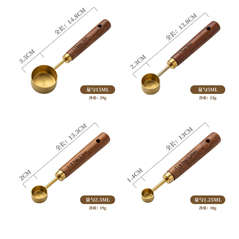 솔리드 우드 측정 컵 측정 숟가락 세트 주방 베이킹 도구 크기 측정 숟가락 8 재고 세트