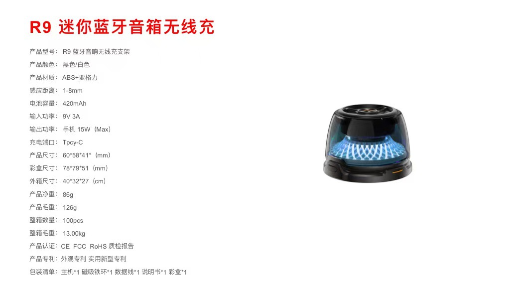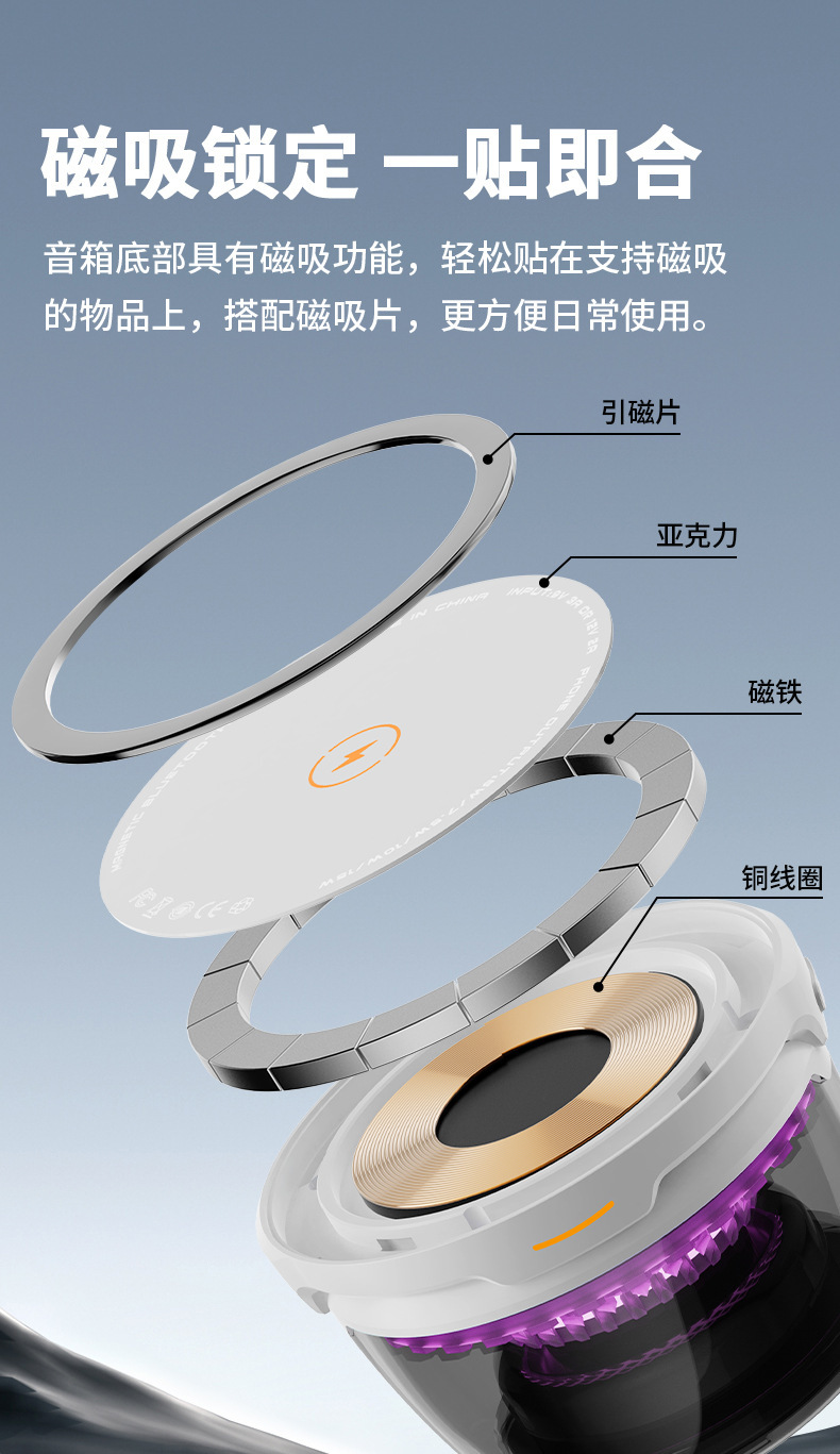 블루투스 오디오 무선 충전기 서브우퍼 오디오 미니 휴대용 자기 무선 충전 15W 블루투스 스피커