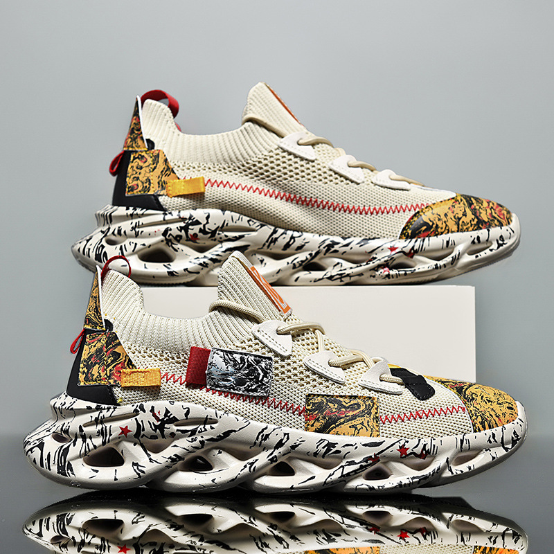 Guochao 남성용 블레이드 바닥 유행 신발 대형 39-46 크로스 보더 레이스 업 플라이 짠 러닝 남성 신발 캐주얼 스포츠 도매