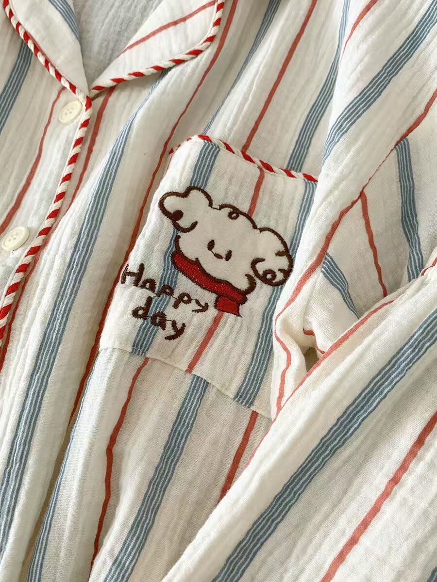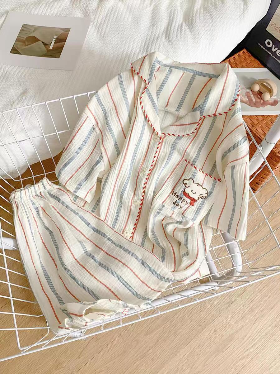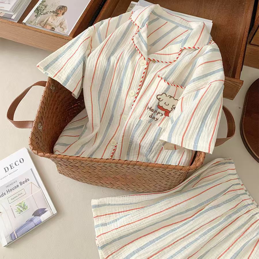 2025 패션 컬렉션 귀여운 만화 줄무늬 개 잠옷 여성의 여름 짧은 소매 반바지 홈 의류 세트
