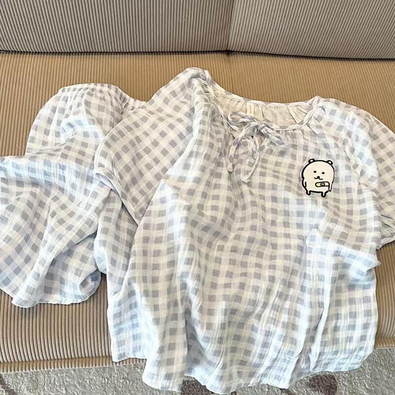 • 4253 - 블루 체크 자조곰 [반팔+반바지]