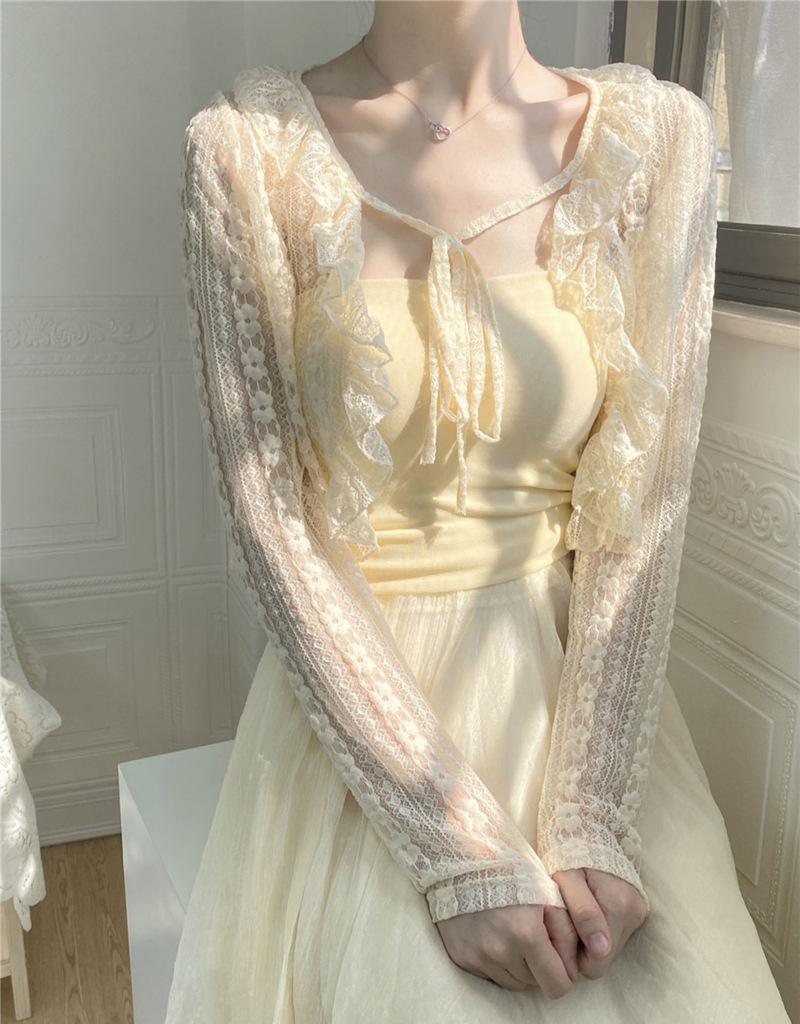 짧은 레이스 카디건 재킷 2023 새로운 스타일 연령 감소 의류 여성 목도리 여름 탑