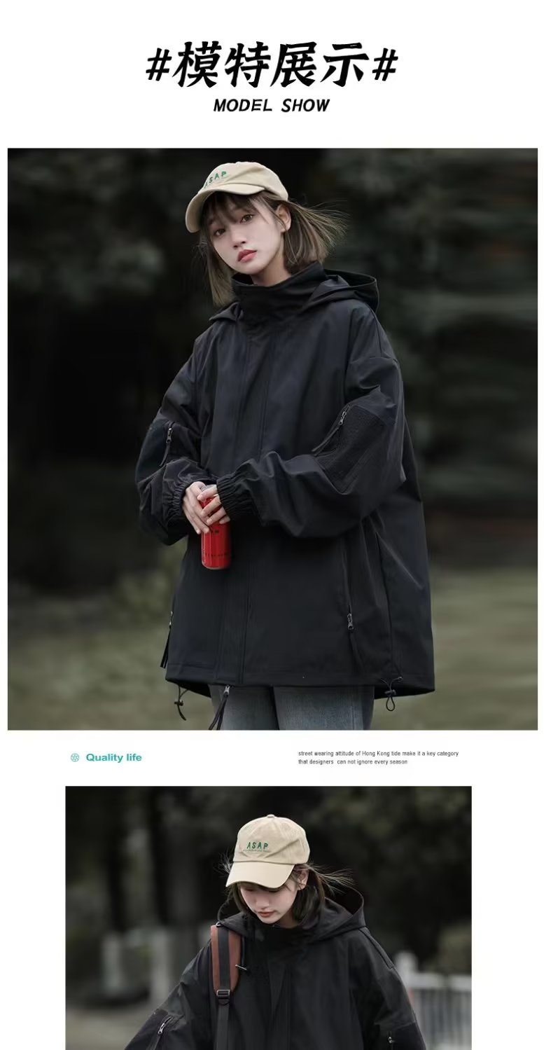 블랙 아웃 도어 자켓 남녀 오버 사이즈 후드 일본 툴링 재킷 봄 디자인 센스 틈새 야구 세트스토어 가기