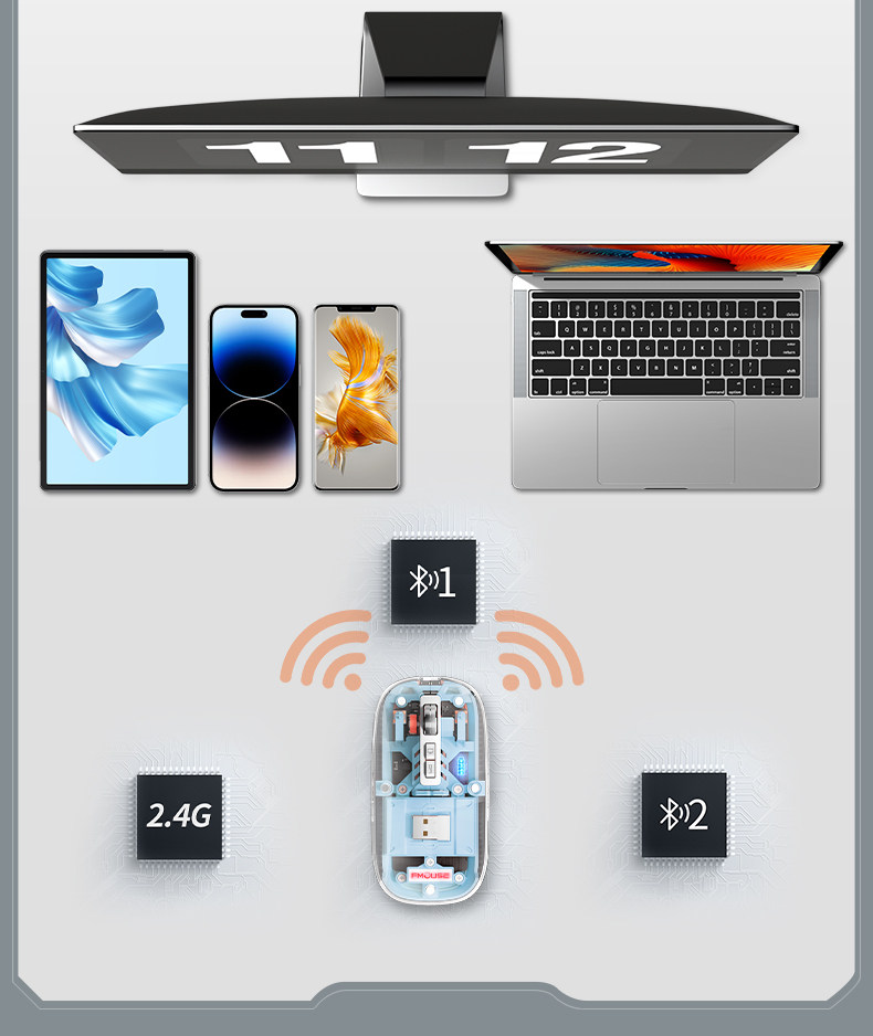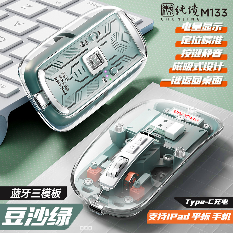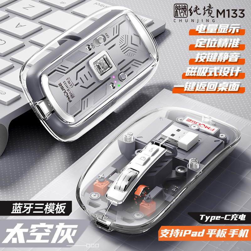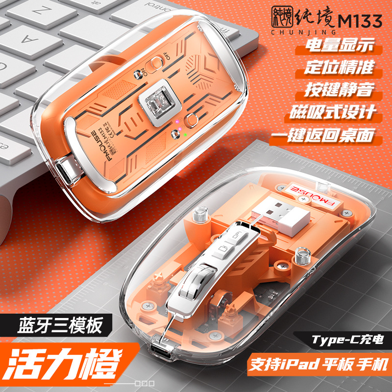 타이거캣 m133 투명 무선 무소음 마우스 블루투스 게이밍 충전식 노트북 사무용 델 3모드 호환