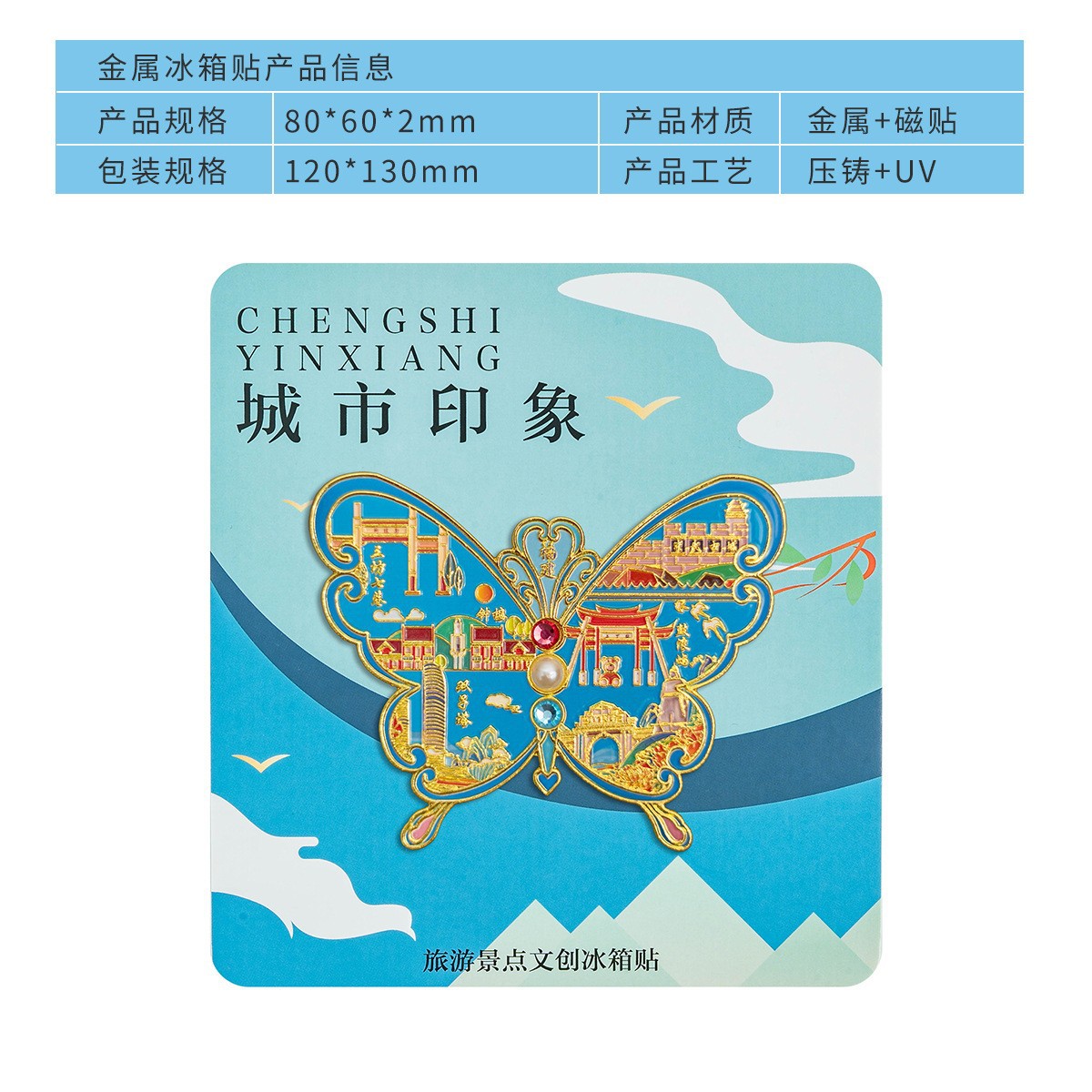 도시 여행 냉장고 스티커 시안 충칭 하얼빈 난징 나비 모양의 Guochao Wenchuang 마그네틱 스티커 재고