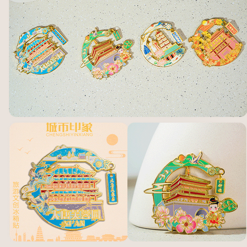 도시 여행 냉장고 스티커 시안 충칭 하얼빈 난징 나비 모양의 Guochao Wenchuang 마그네틱 스티커 재고스토어 가기