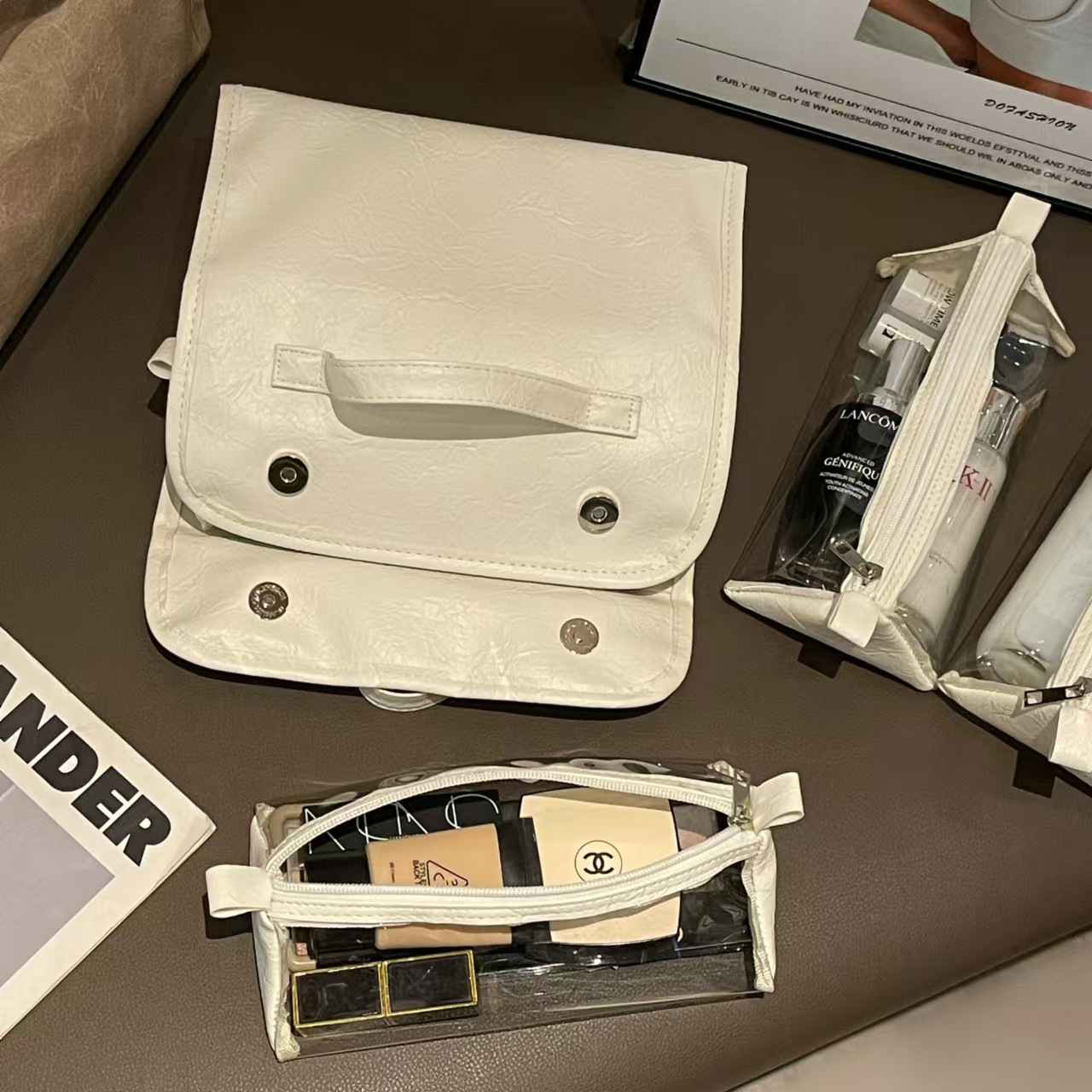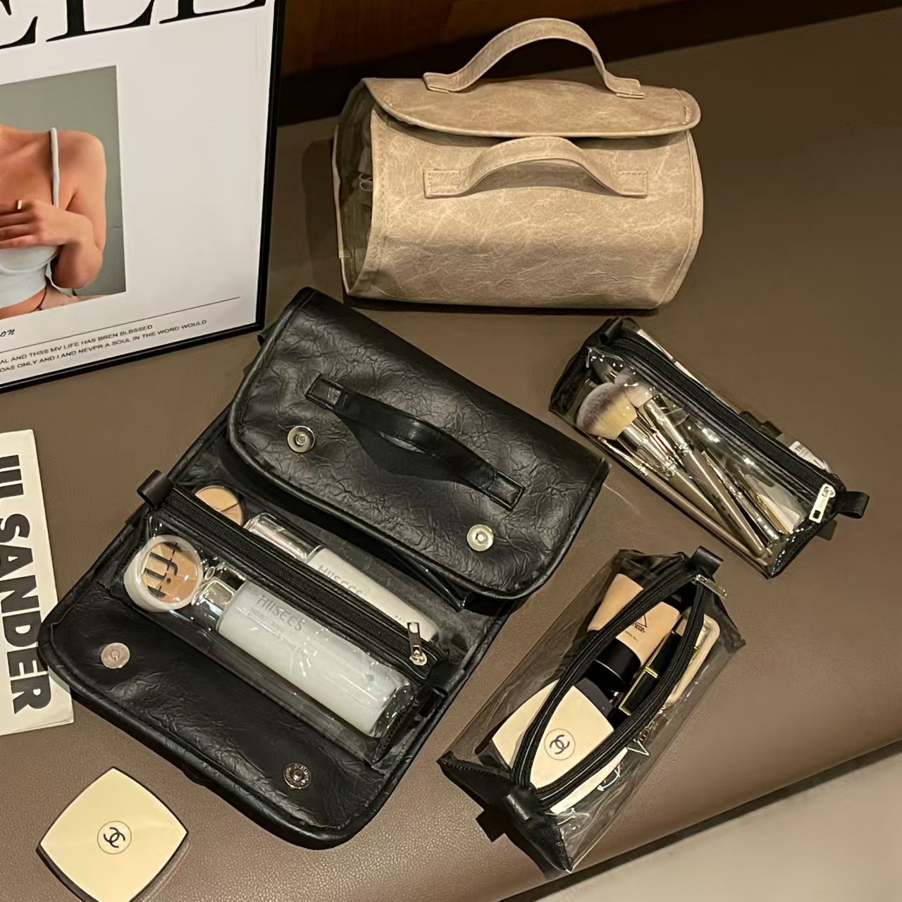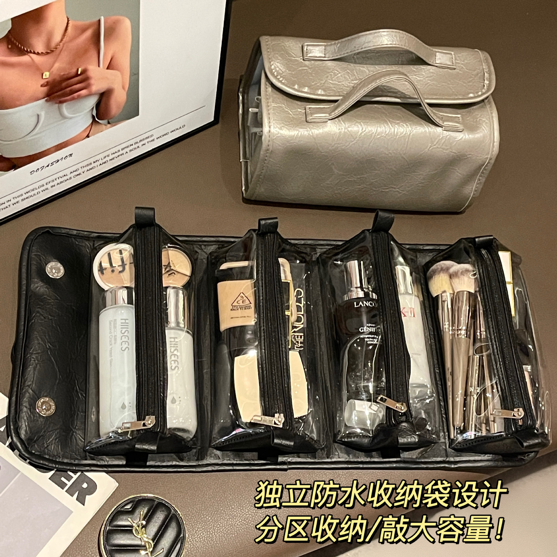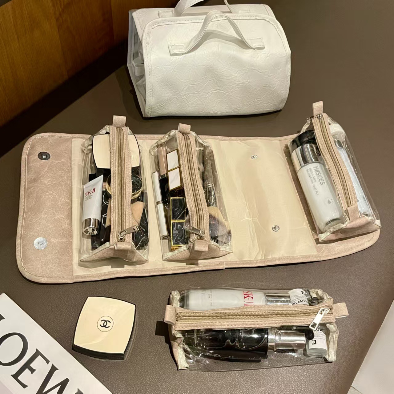 게으른 분들을 위한 분리형 걸이형 화장품 가방, 휴대용 4-in-1 휴대용 접이식 여행용 크림 메이크업 및 세면도구 보관 가방