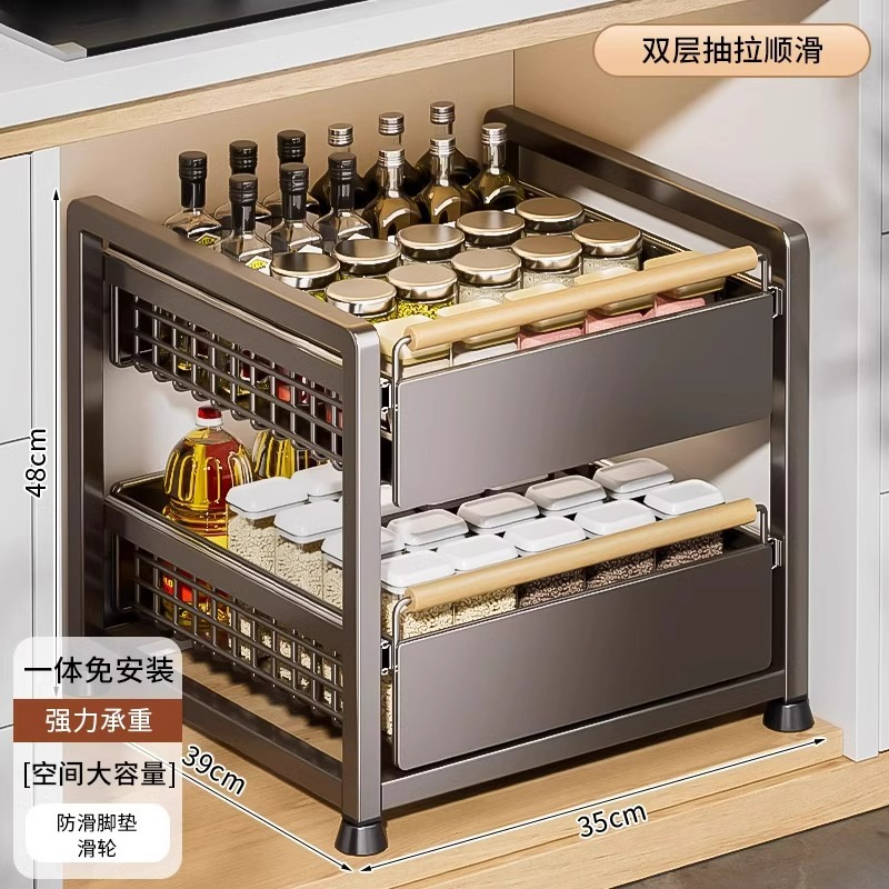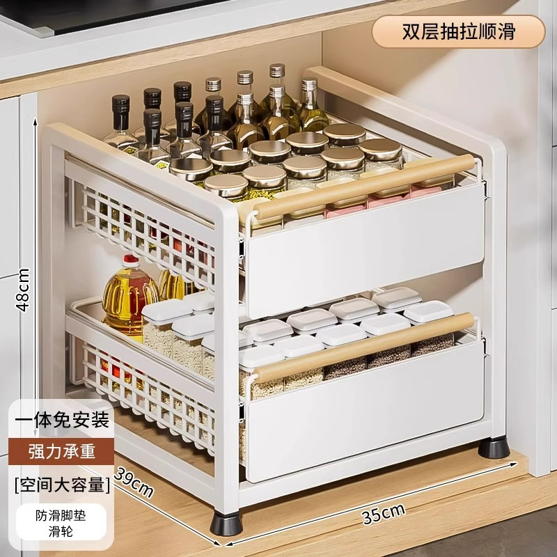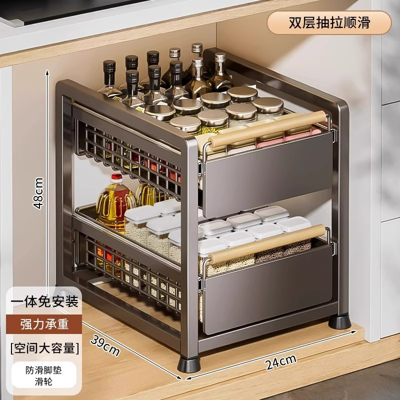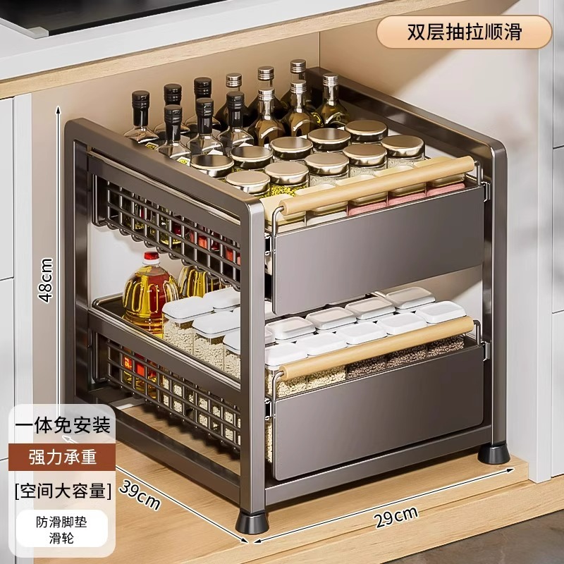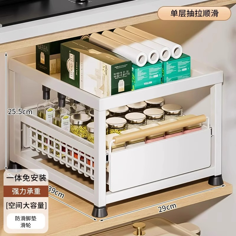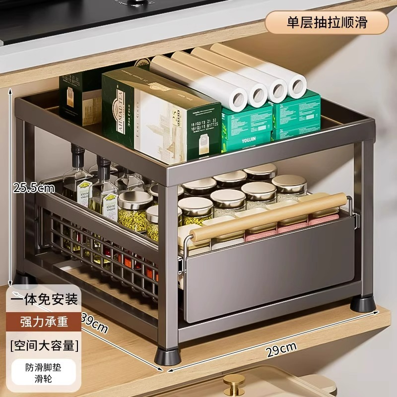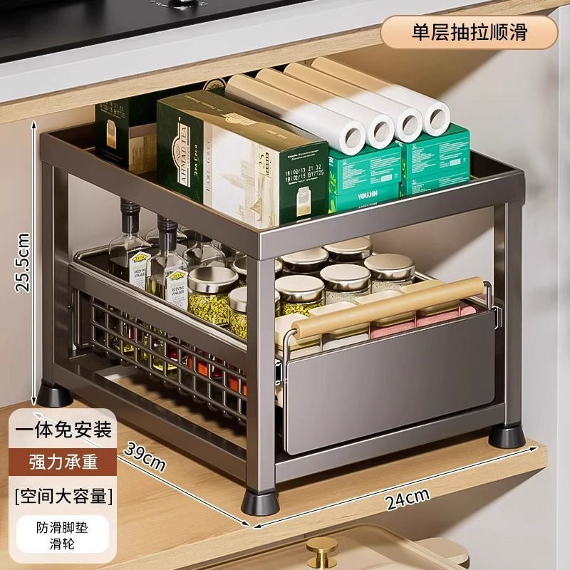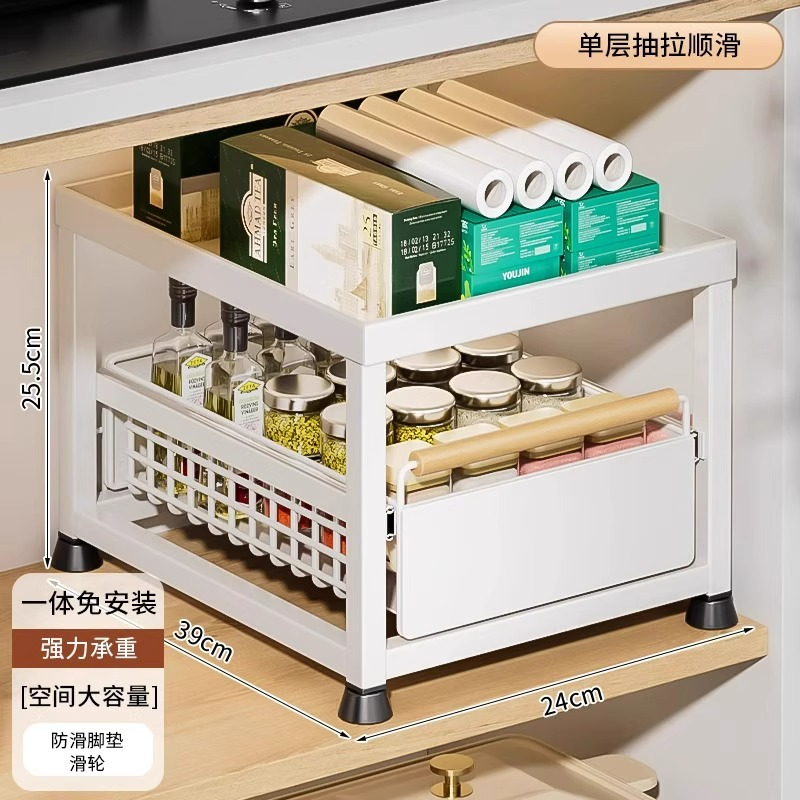 주방 캐비닛의 계층형 선반, 서랍, 펀치 없는 캐비닛 바구니 보관함, 싱크대 아래 다기능 보관함스토어 가기