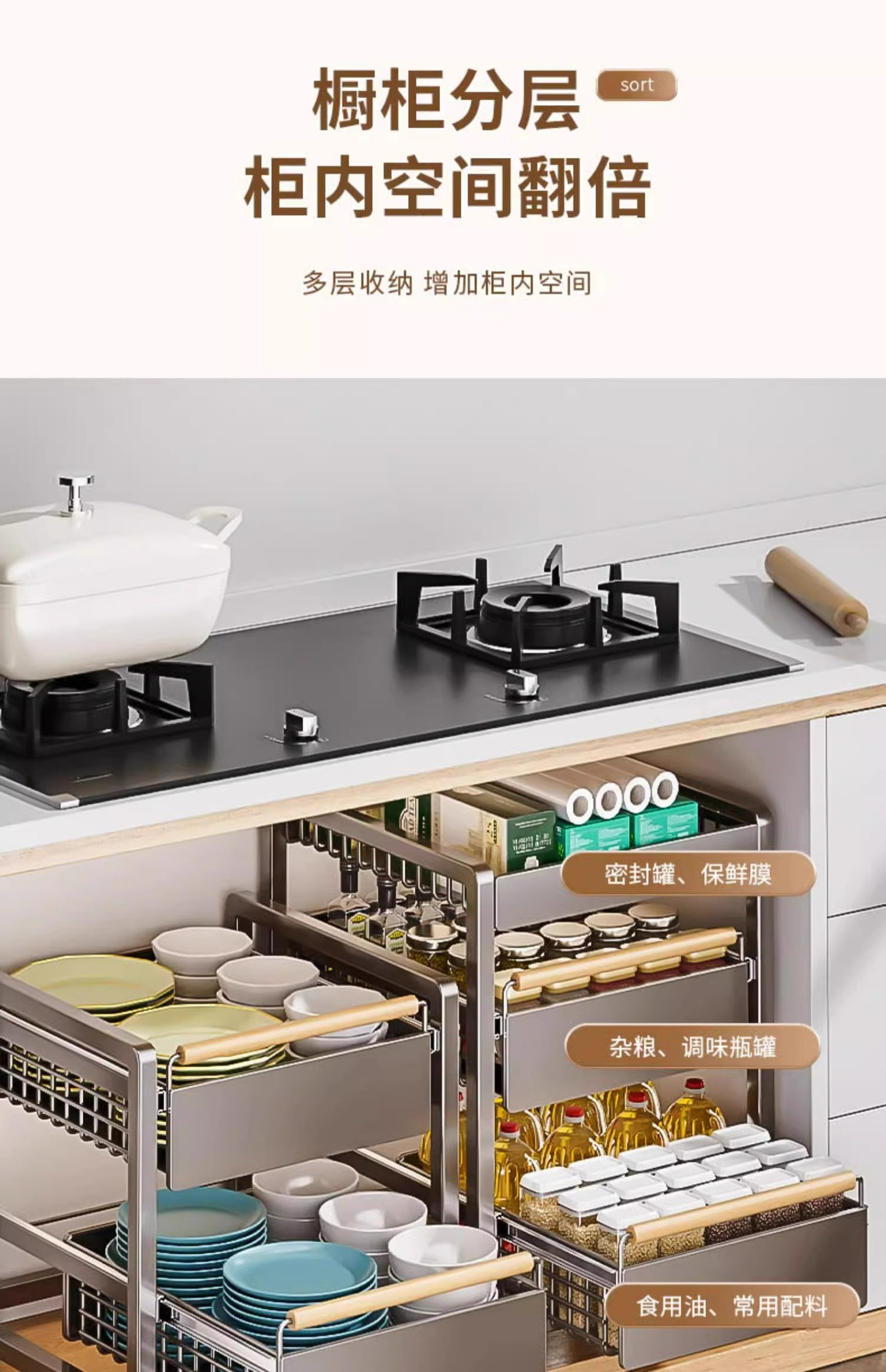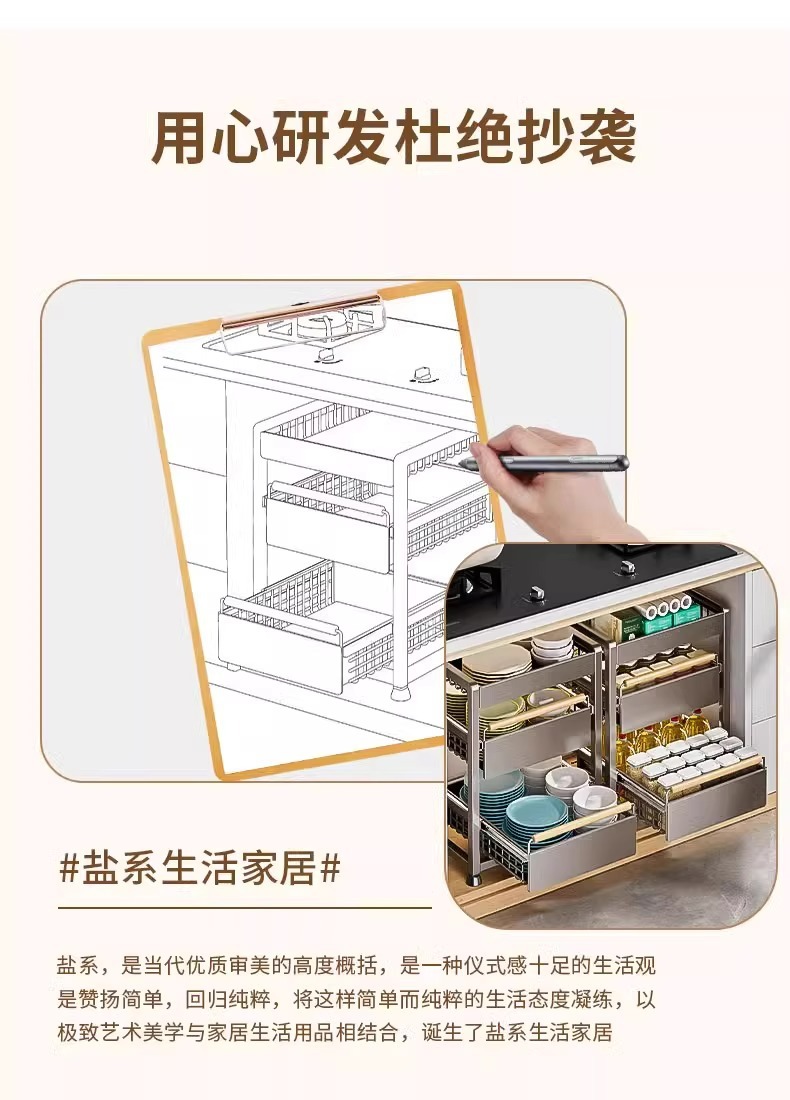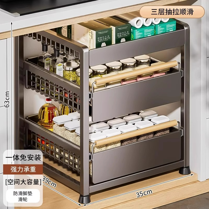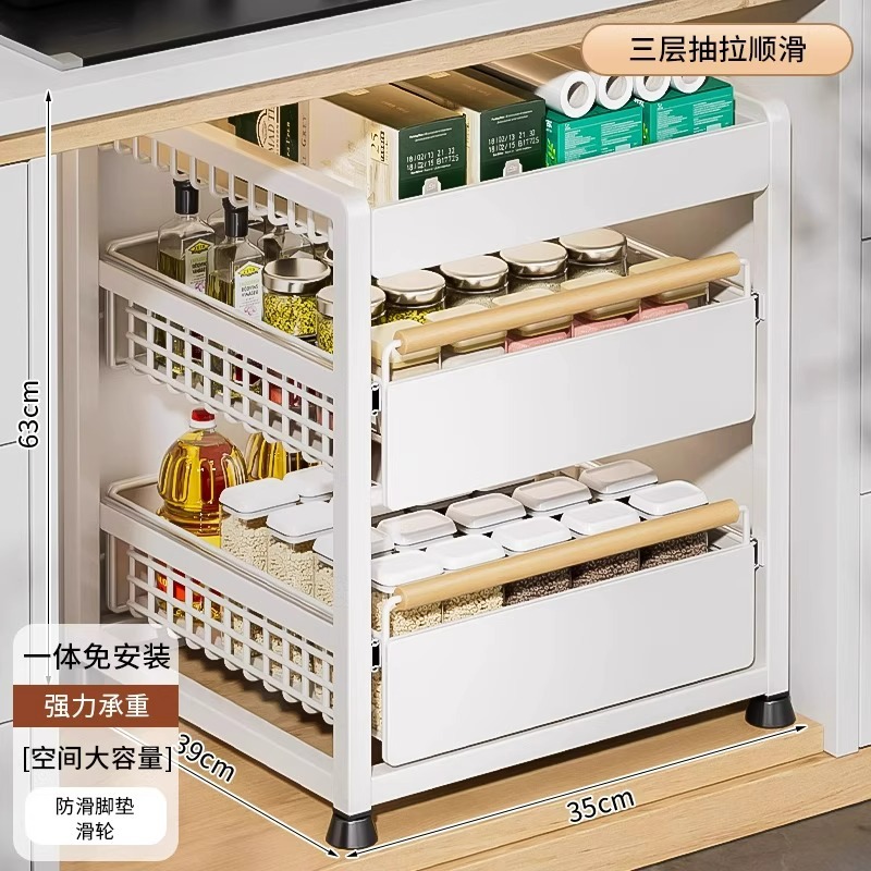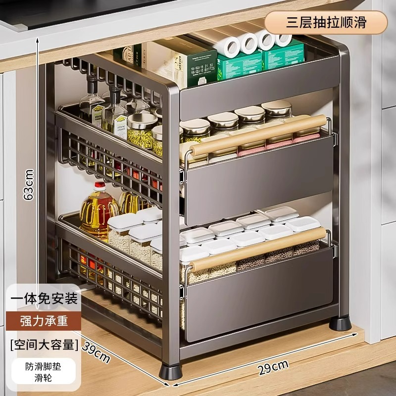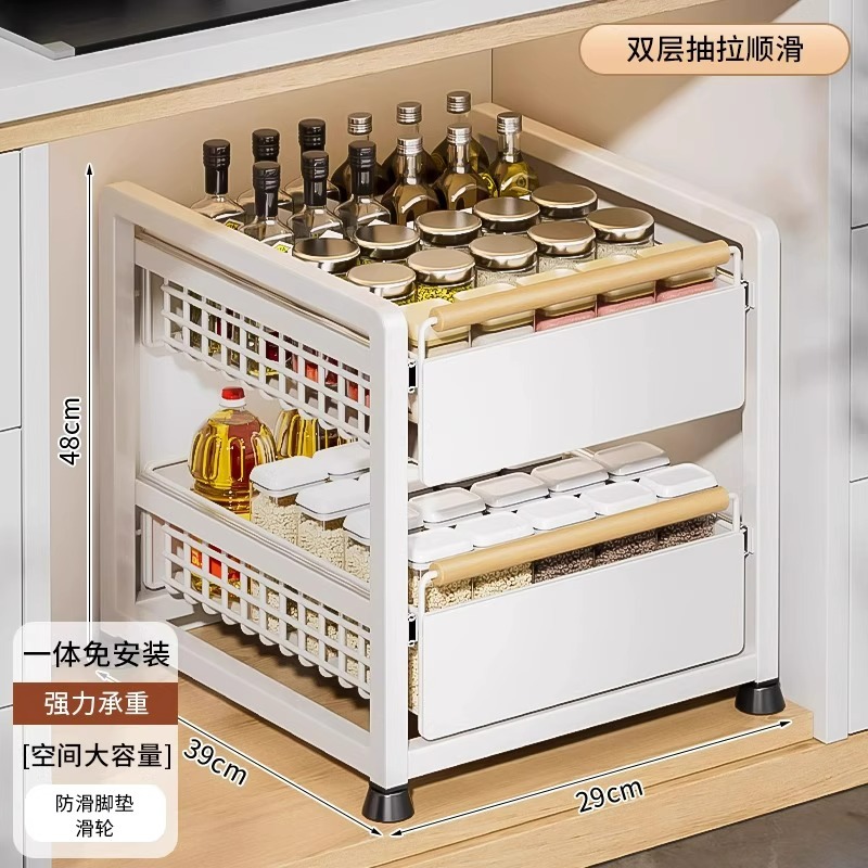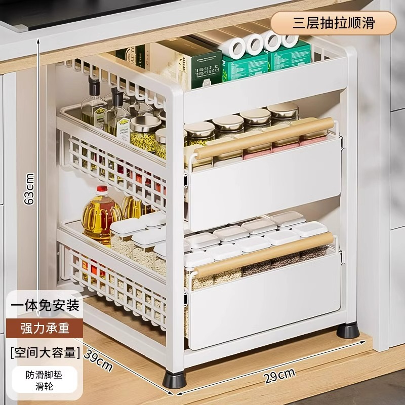 주방 캐비닛의 계층형 선반, 서랍, 펀치 없는 캐비닛 바구니 보관함, 싱크대 아래 다기능 보관함