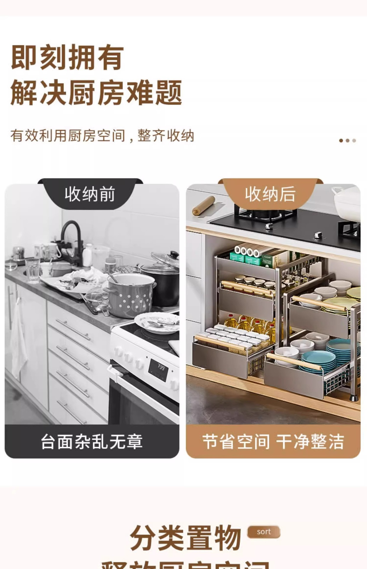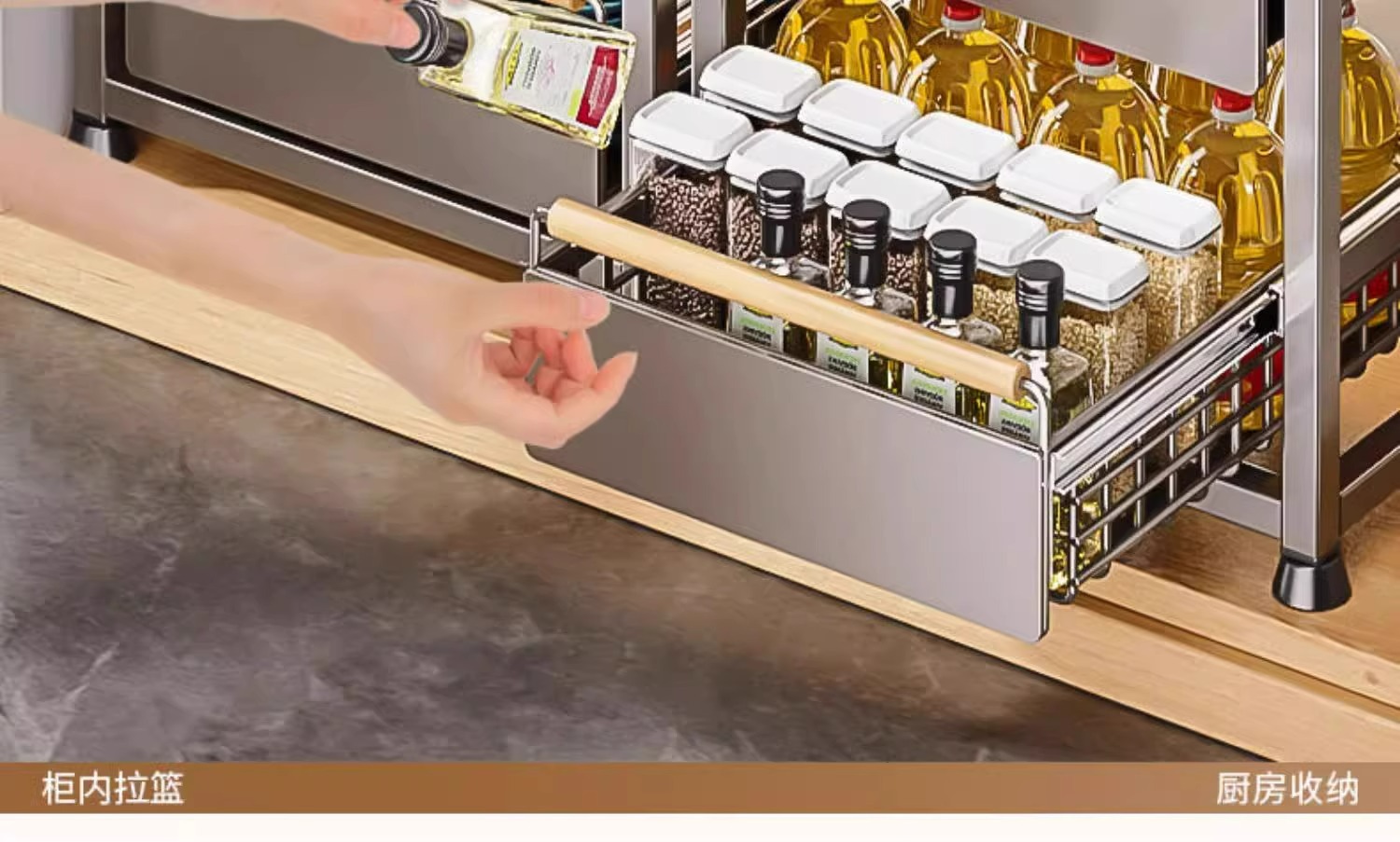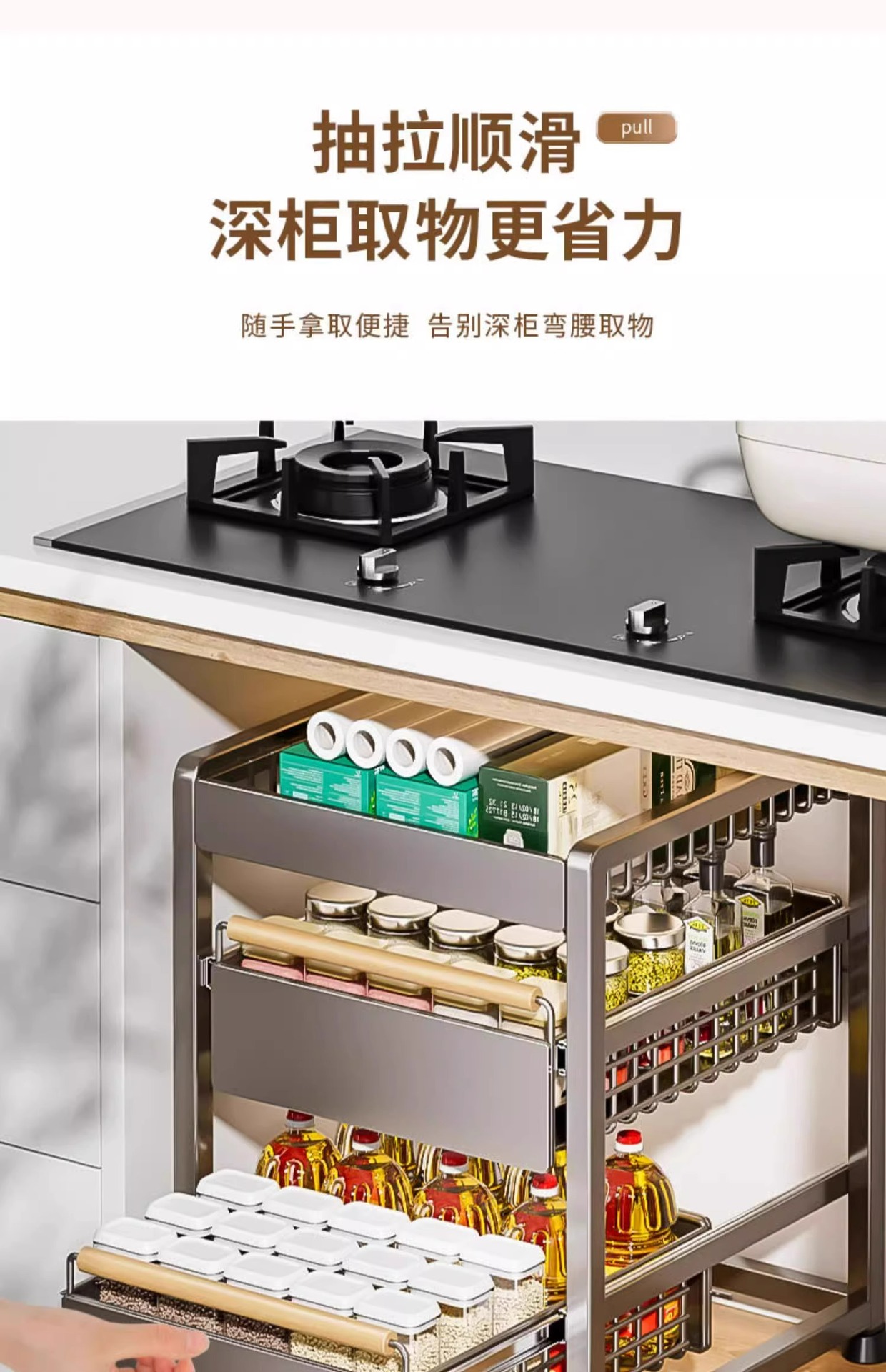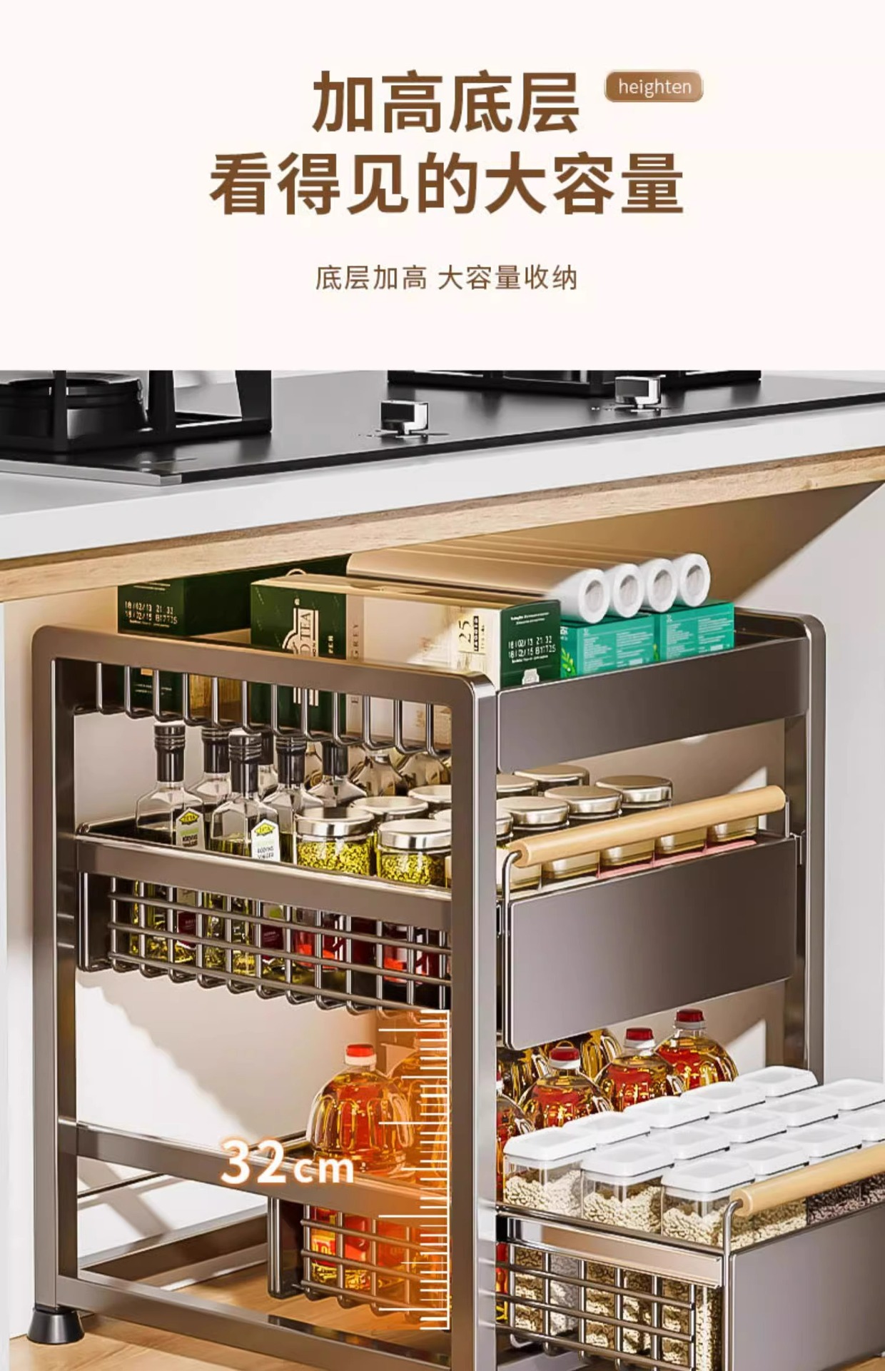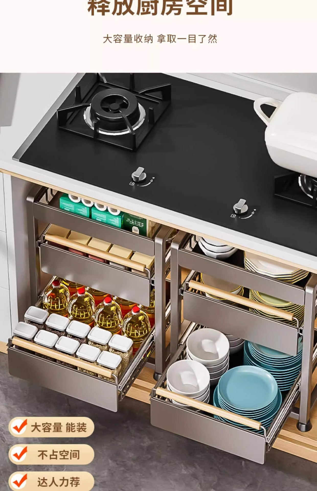 주방 캐비닛의 계층형 선반, 서랍, 펀치 없는 캐비닛 바구니 보관함, 싱크대 아래 다기능 보관함
