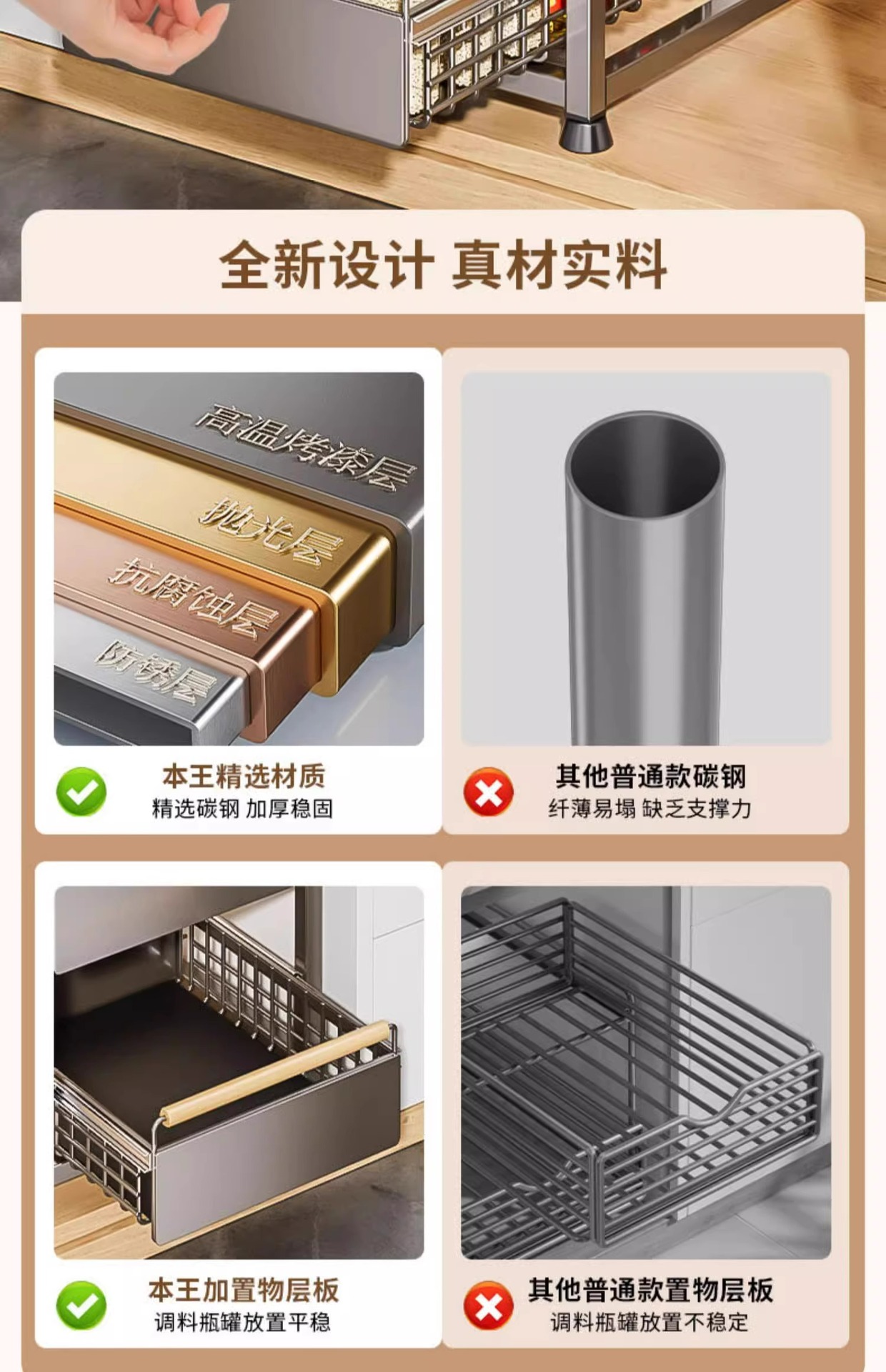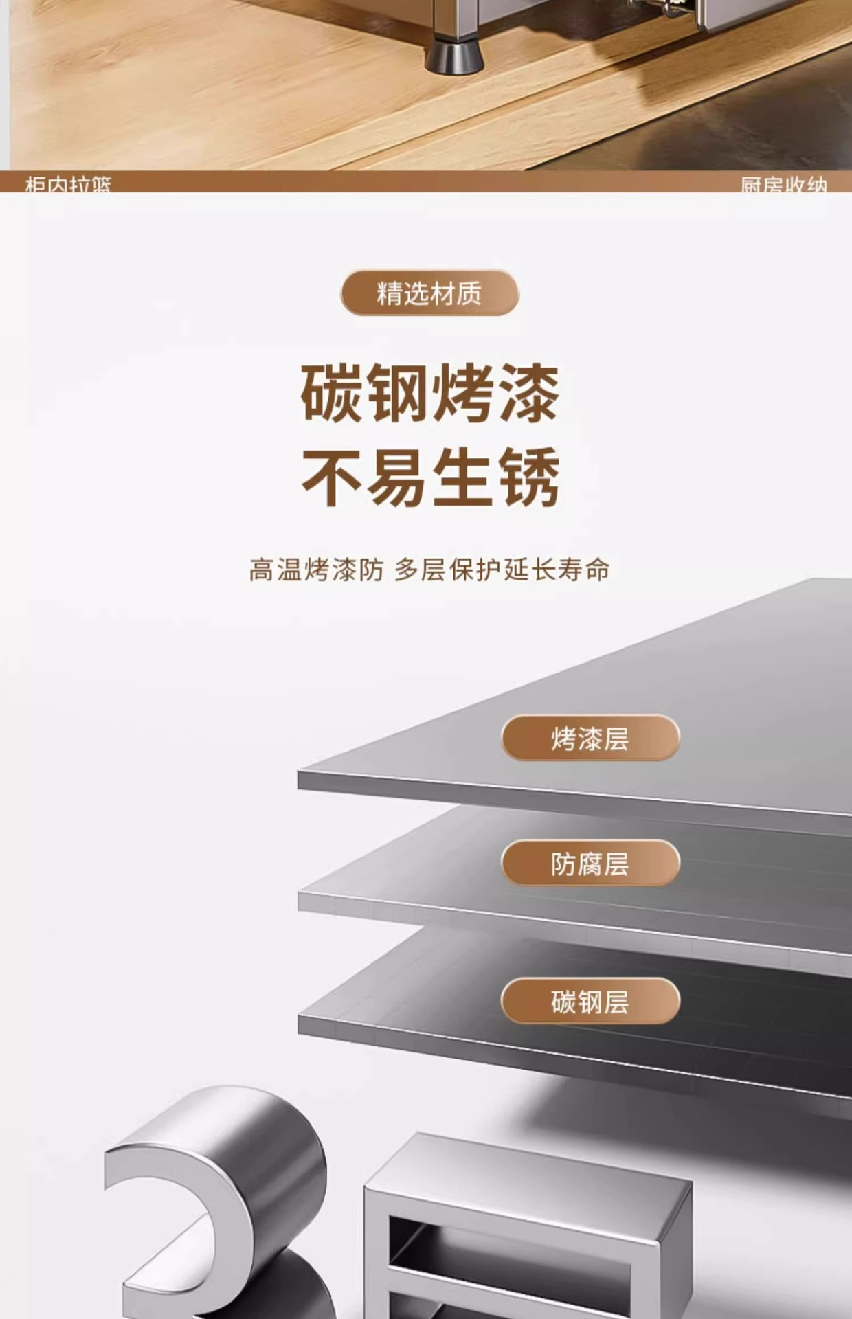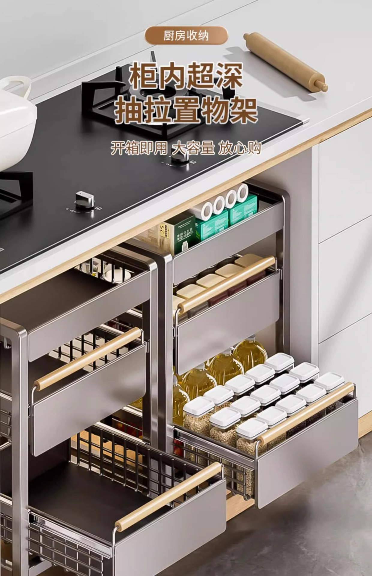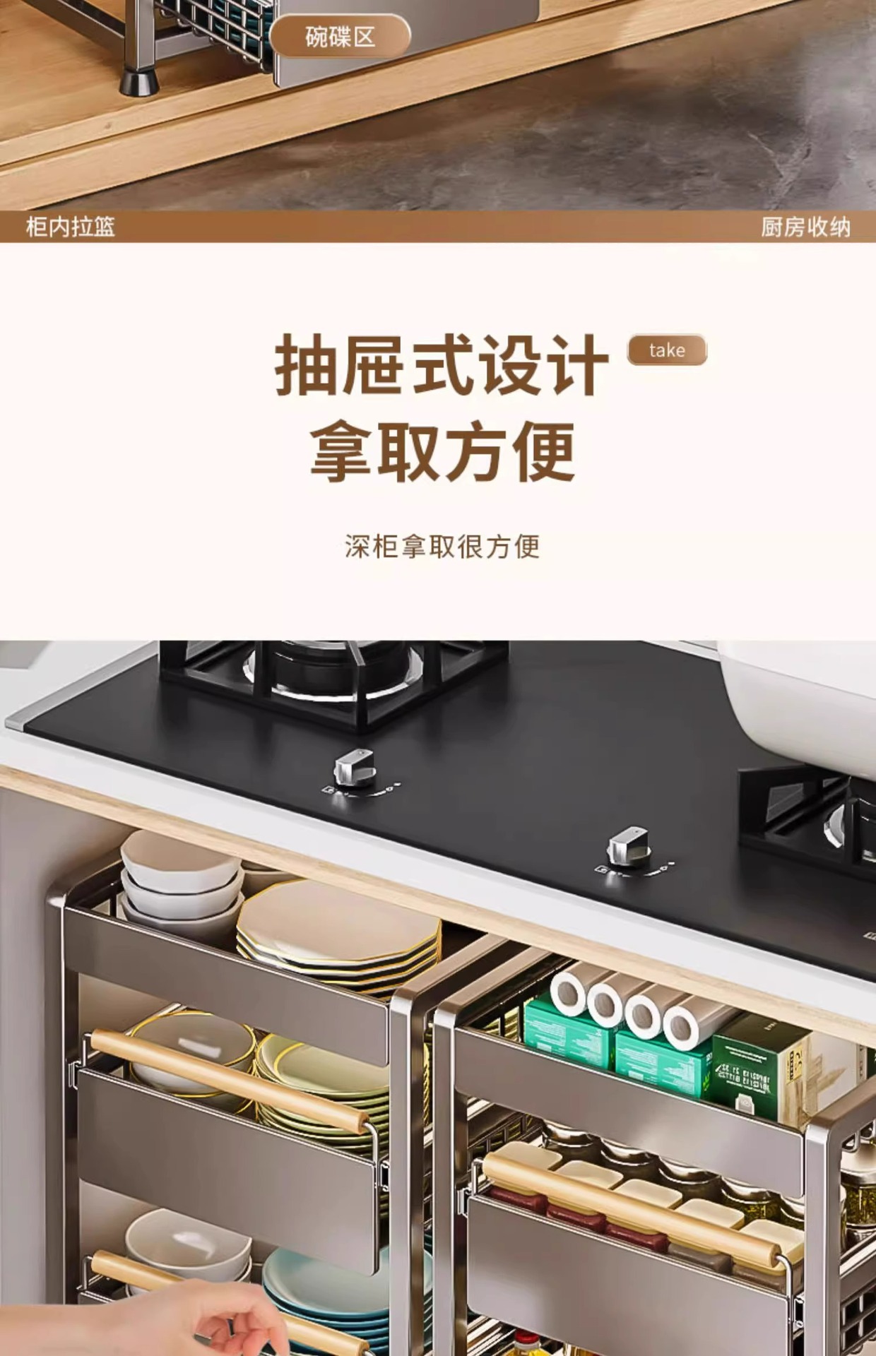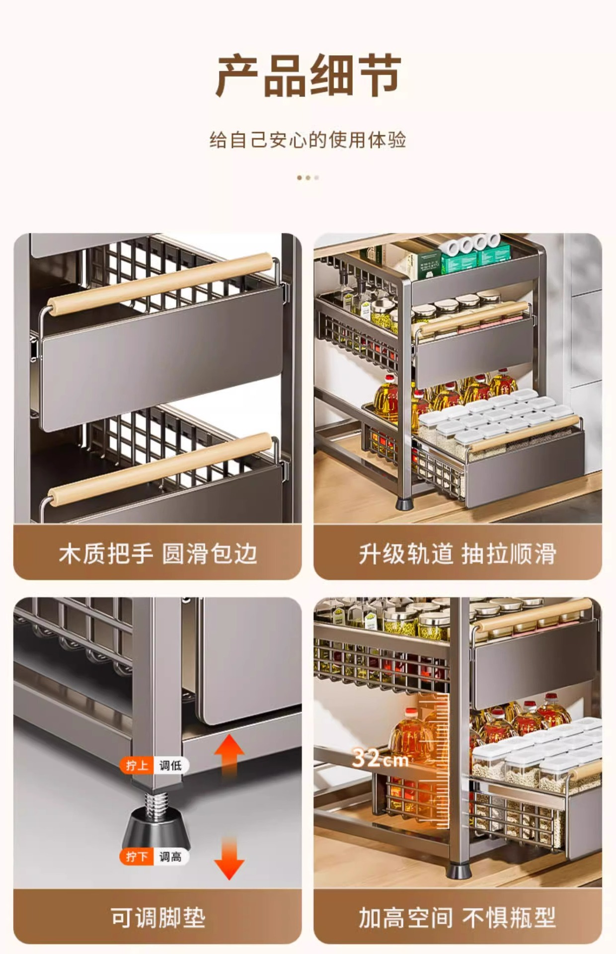 주방 캐비닛의 계층형 선반, 서랍, 펀치 없는 캐비닛 바구니 보관함, 싱크대 아래 다기능 보관함