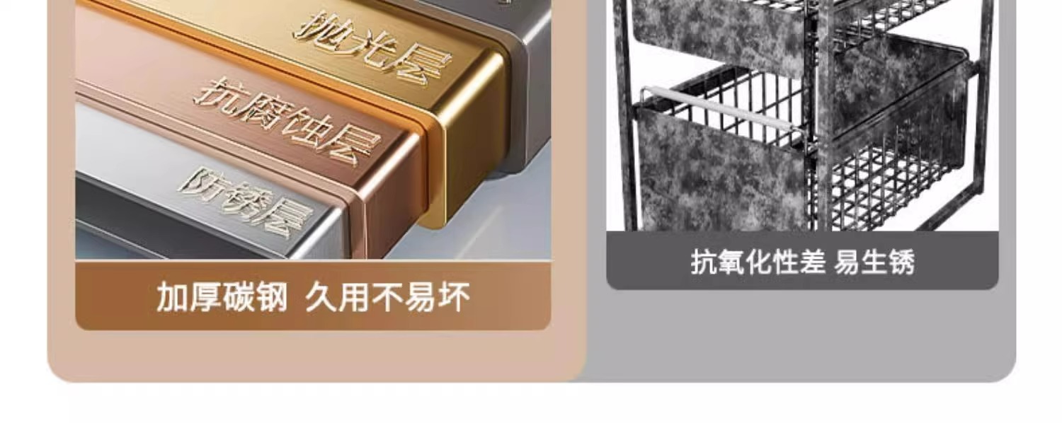 • [더블 레이어 더블 드로우] 특대형* 건 그레이 스테인레스 스틸 슬라이드 레일(설치 불필요)