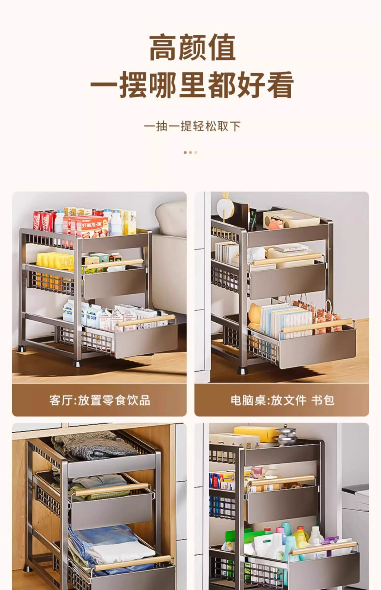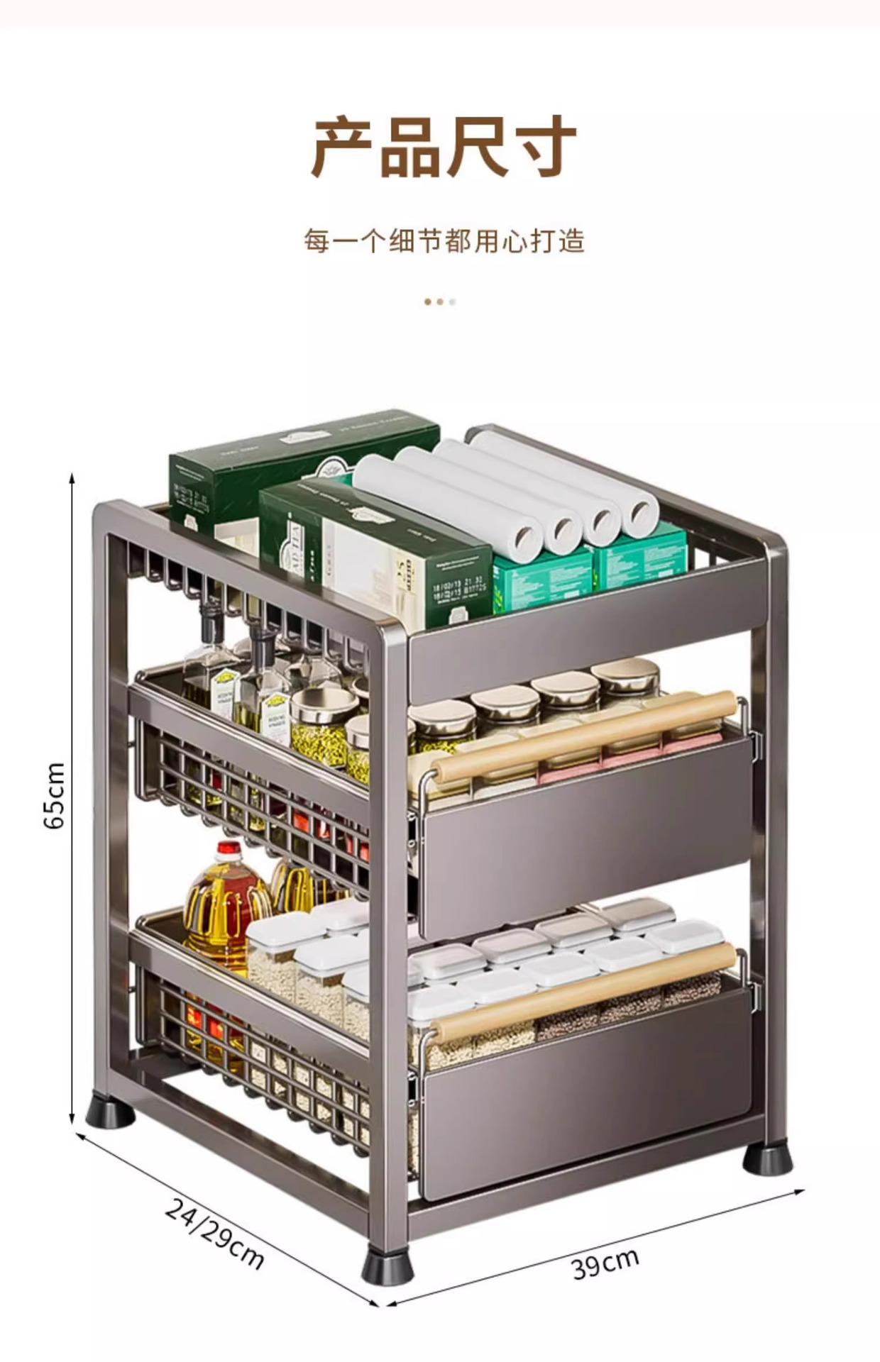 • [더블 레이어 싱글 드로우] 대형* 건 그레이-스테인레스 스틸 슬라이드 레일(설치 불필요)