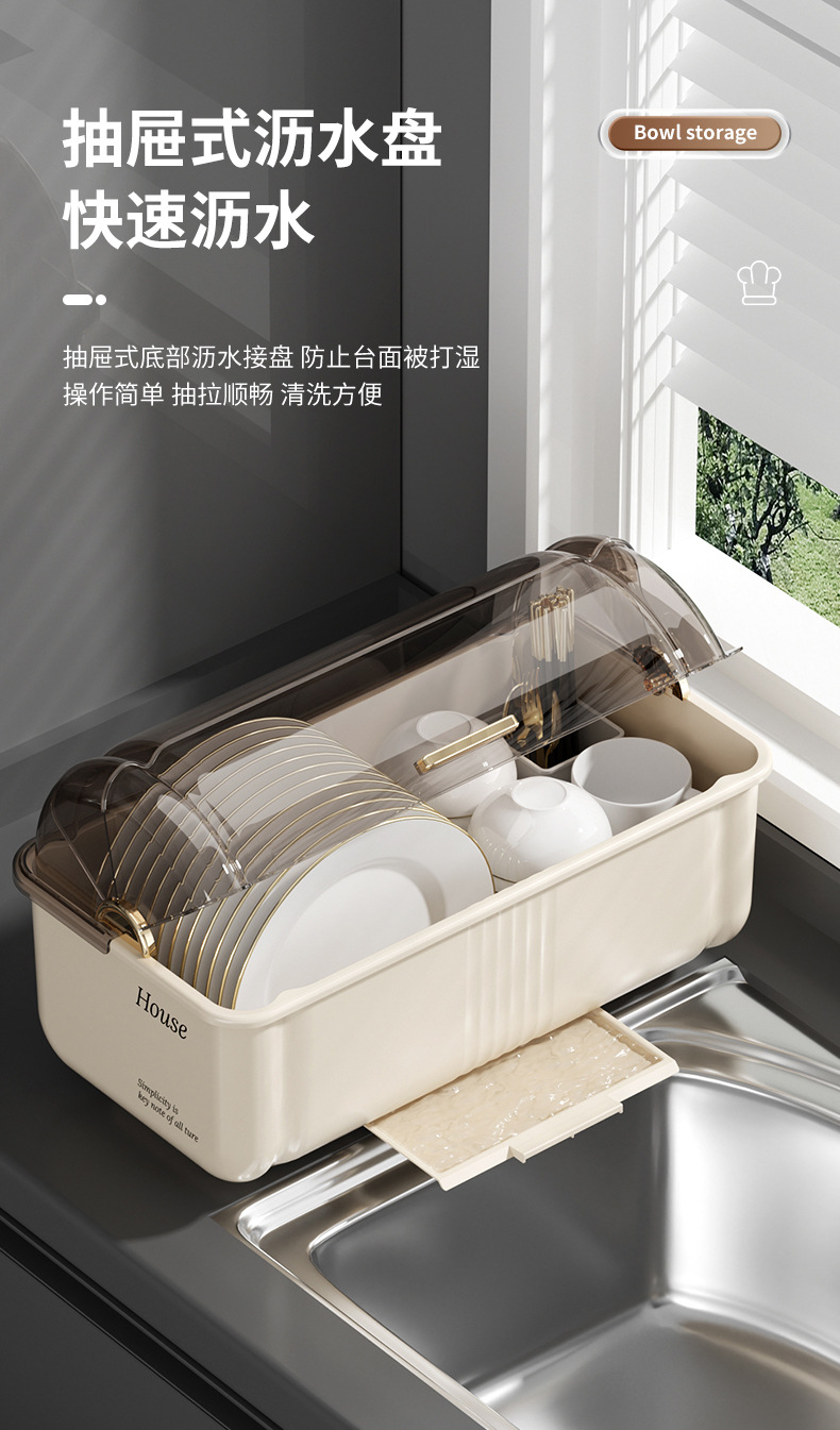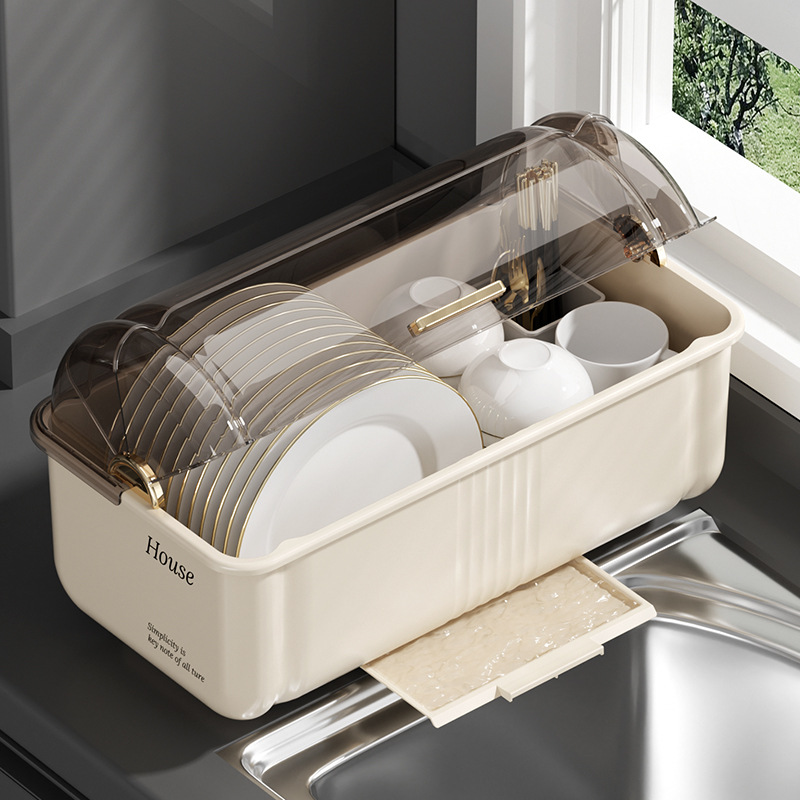 식기 플레이트 보울 젓가락 저장 상자 도매를위한 뚜껑 배수 저장 랙을 가진 접시 저장 랙 찬장 가정용 주방스토어 가기
