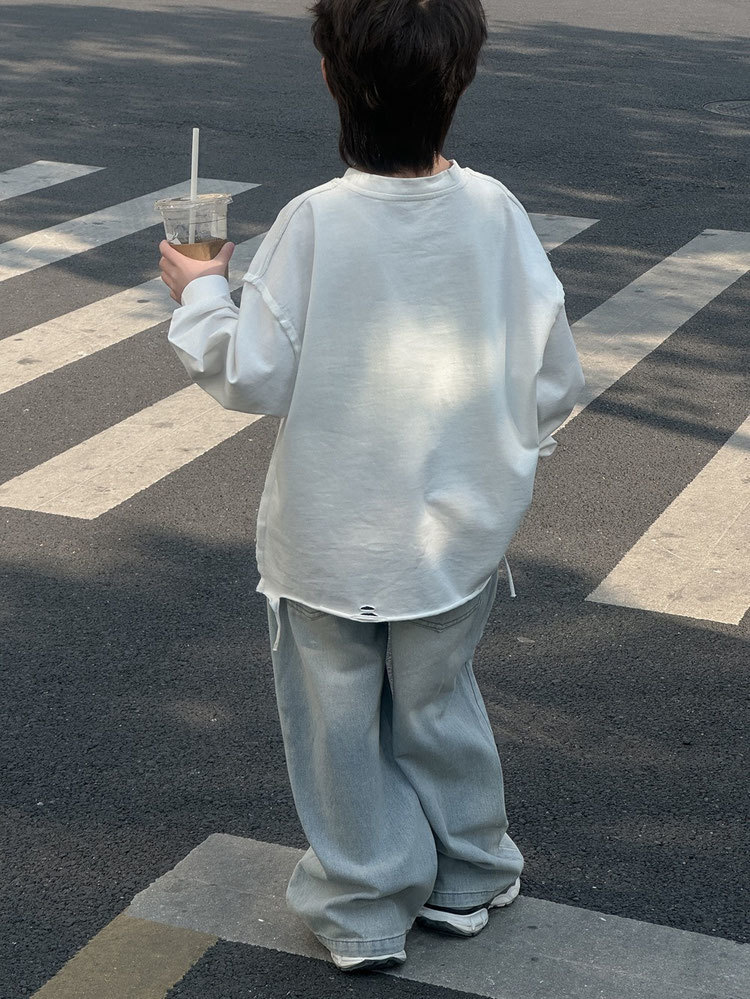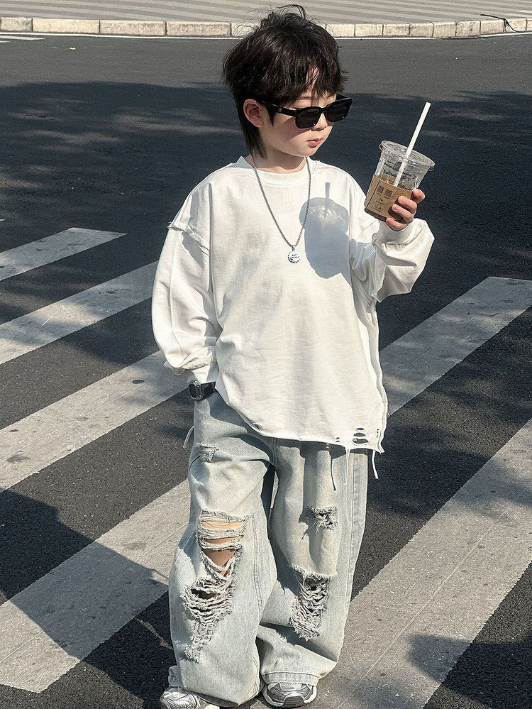 아동용 찢어진 청바지 2025 봄 여름 새로운 루즈 스트레이트 다용도 바지 소년 스타일스토어 가기
