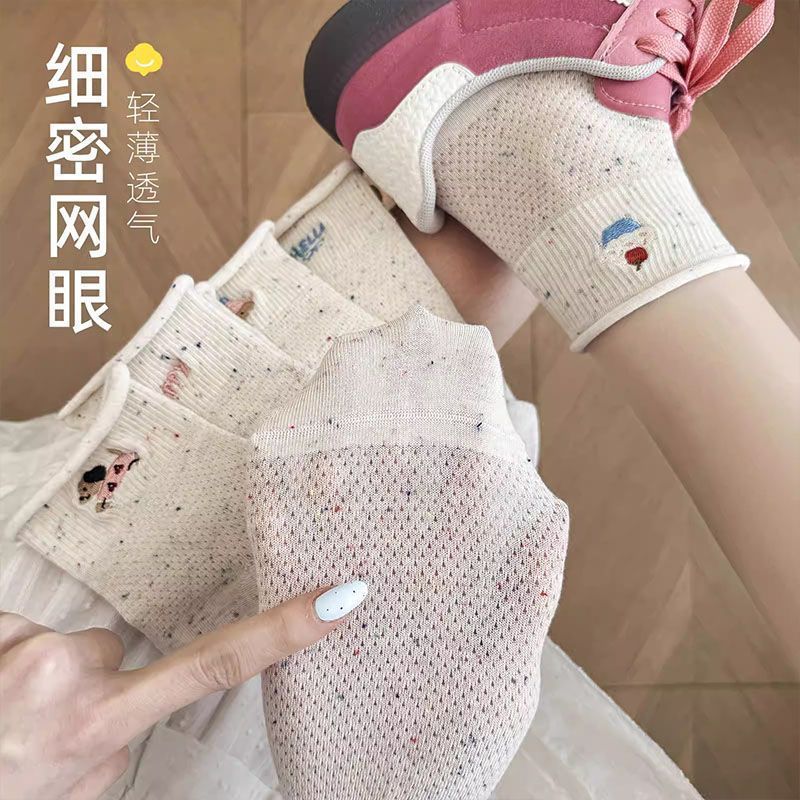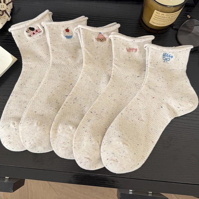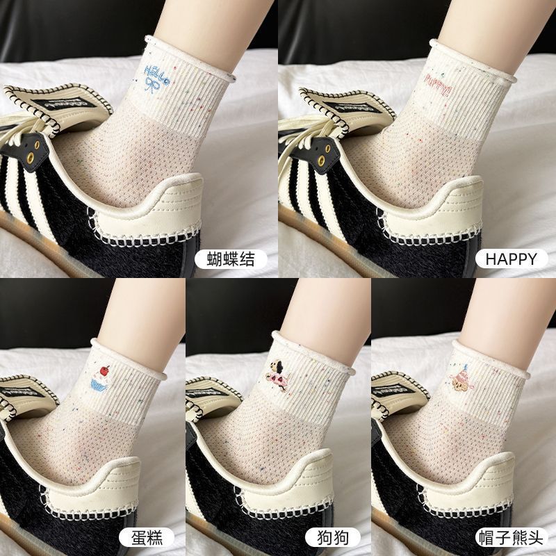여성을위한 컬 양말 2025 새로운 기능 유행 양말 여름 통기성 얇은 순수 코튼 중간 튜브 양말 만화 귀여운 양말