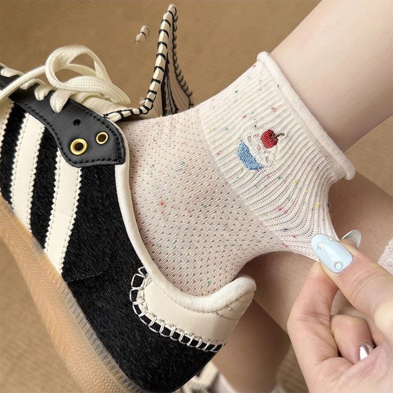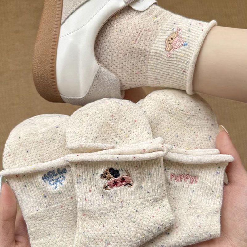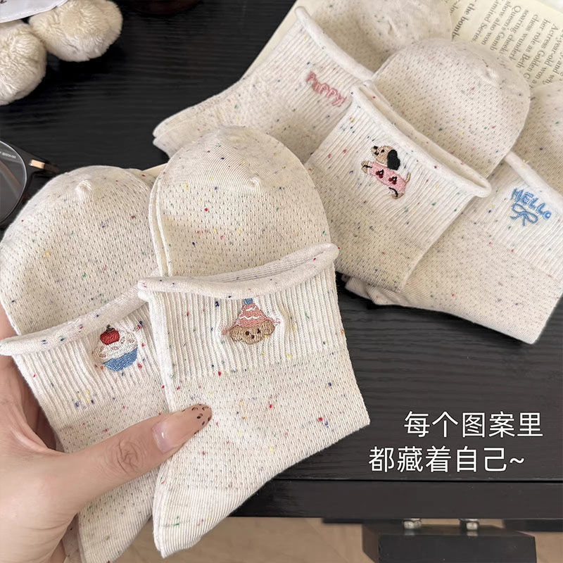 여성을위한 컬 양말 2025 새로운 기능 유행 양말 여름 통기성 얇은 순수 코튼 중간 튜브 양말 만화 귀여운 양말스토어 가기