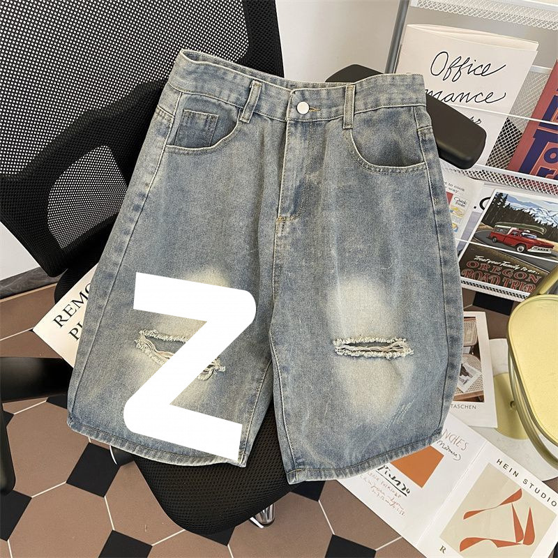 남성용 트렌디 한 아메리칸 스타일 복고풍 청바지 남성 반바지 여름 얇은 느슨한 핸섬 바지스토어 가기