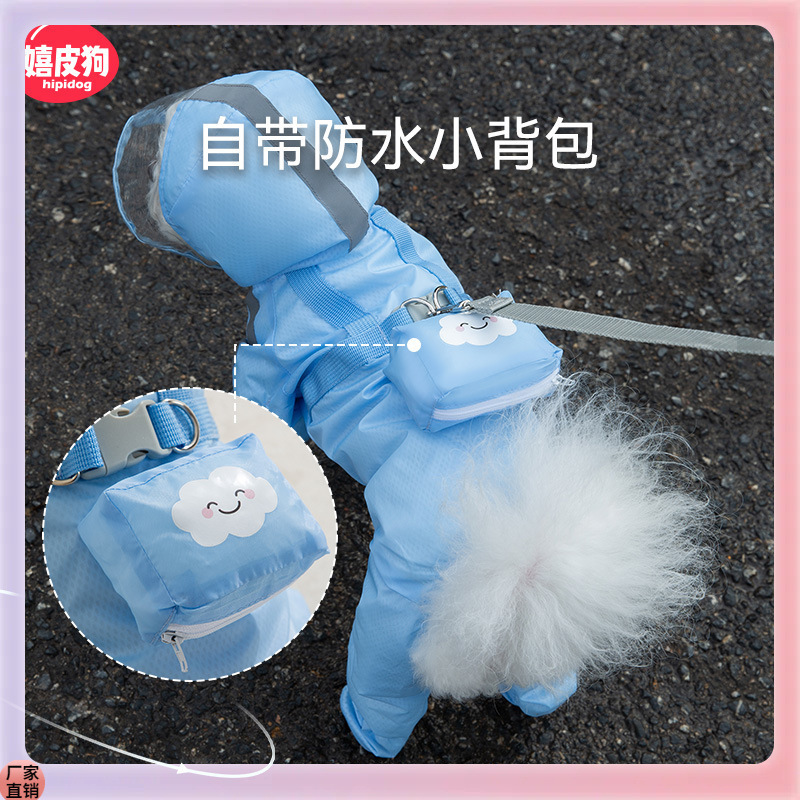 ✅비극적 인 개 네 다리 비옷 방수 모든 것을 포함하는 작은 개 Bichon Teddy 애완 동물 비오는 날 옷