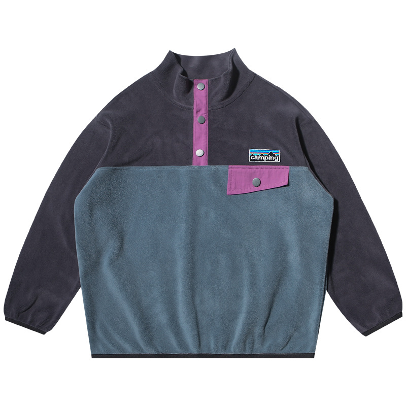 EK 아동복 스플라이스 대비 색상 소년 터틀넥 폴라 플리스 루즈 풀오버 스웨트 셔츠, 중대형 아동용 탑 및 재킷