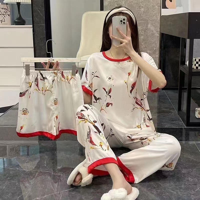 폭발 동남아시아 대외 무역 잠옷 공장 도매 만화 여름 잠옷 여성 반바지 3 피스 세트