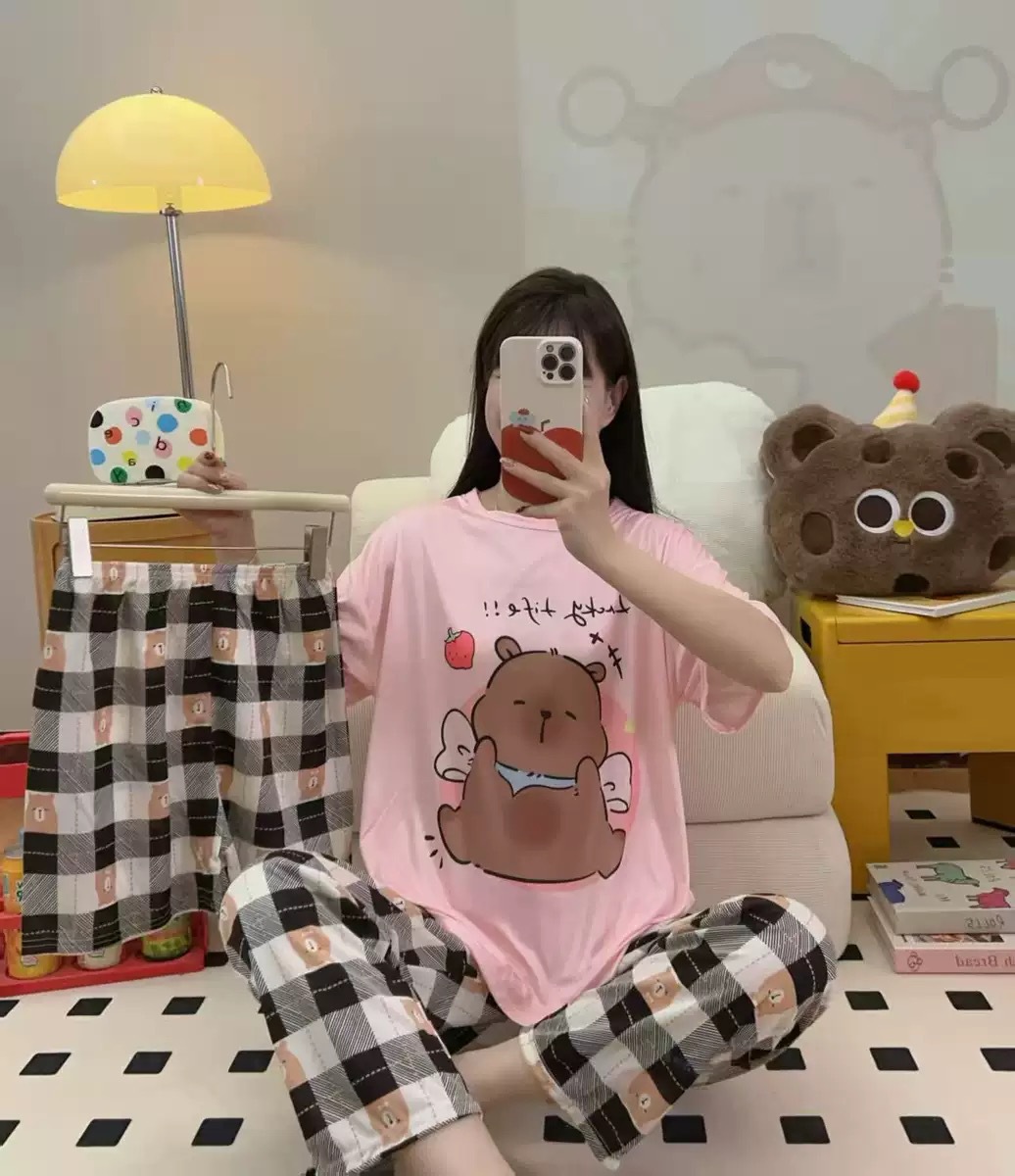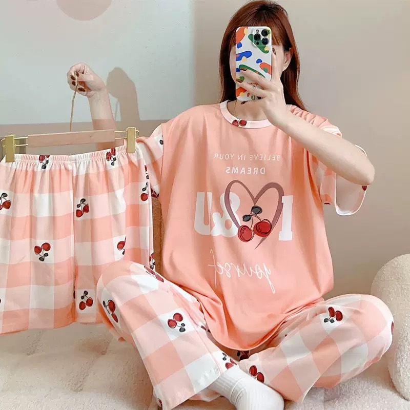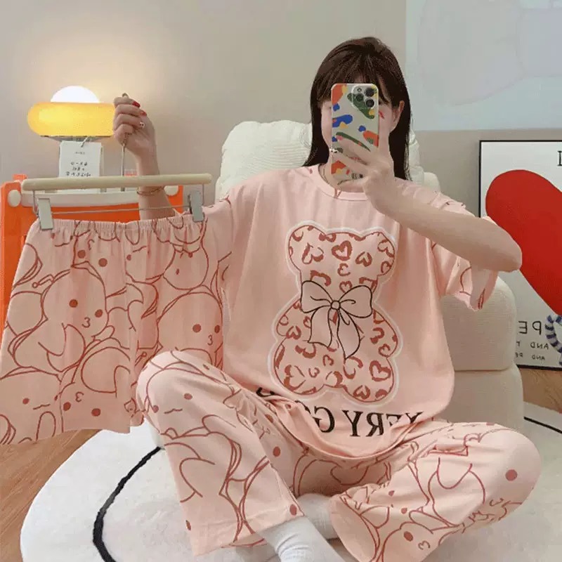 폭발 동남아시아 대외 무역 잠옷 공장 도매 만화 여름 잠옷 여성 반바지 3 피스 세트스토어 가기