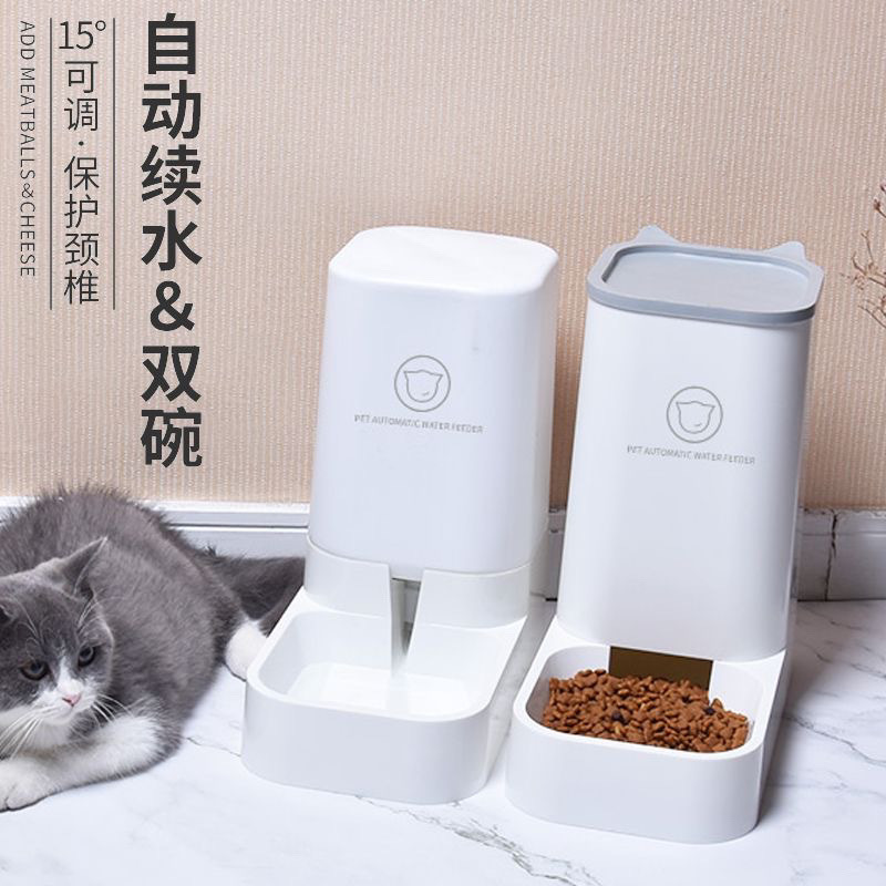 고양이 개 물 디스펜서 두 배 그릇 자동 애완 동물 물 마시는 물 팁 인공물 쌀 냄비 애완 동물 용품스토어 가기