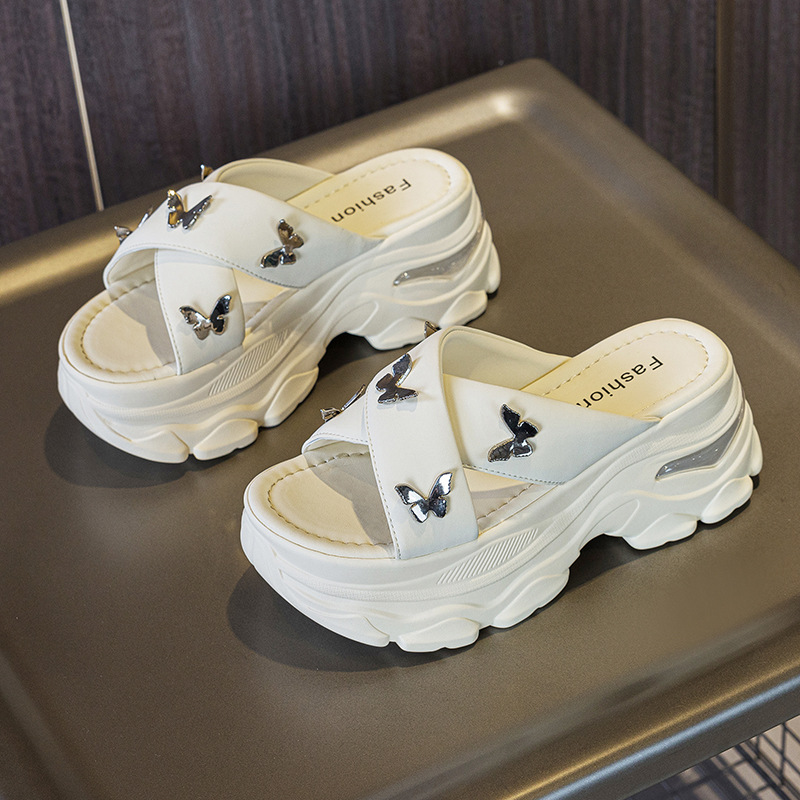 두꺼운 밑창으로 키가 큰 아빠 신발 여름 신상 한국 스타일 트렌디한 아우터 비치 슈즈 작은 사이즈 캐주얼 피쉬 입 샌들 여성용