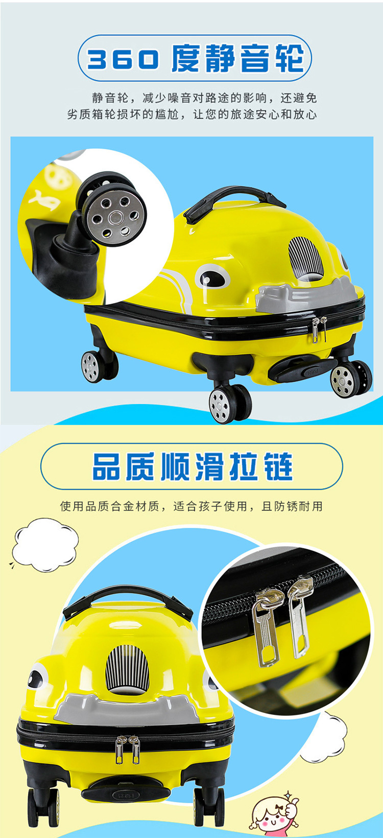 국경 간 폭발 귀여운 만화 어린이 승마 상자 남성과 여성의 보물 여행 가방 공장 아울렛스토어 가기