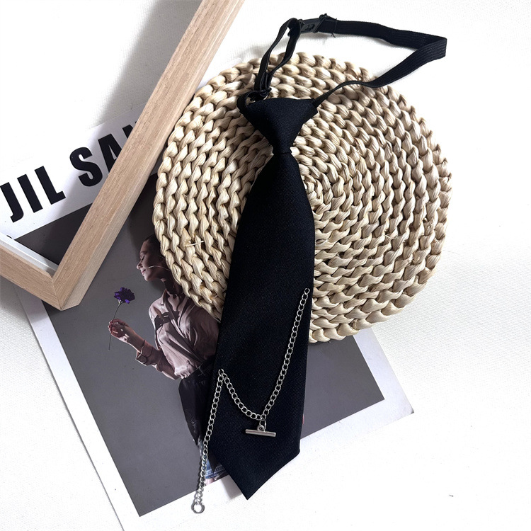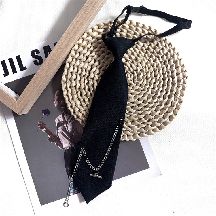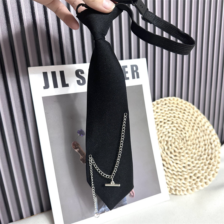 여성용 오리지널 체인 타이, 게으른 사람들을 위한 무료 금속 체인, 심플하고 패셔너블한 블랙 jk 대학 스타일, 잘 생긴 남자