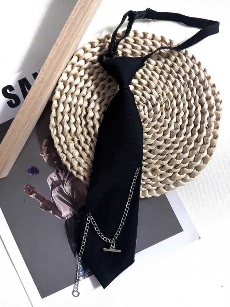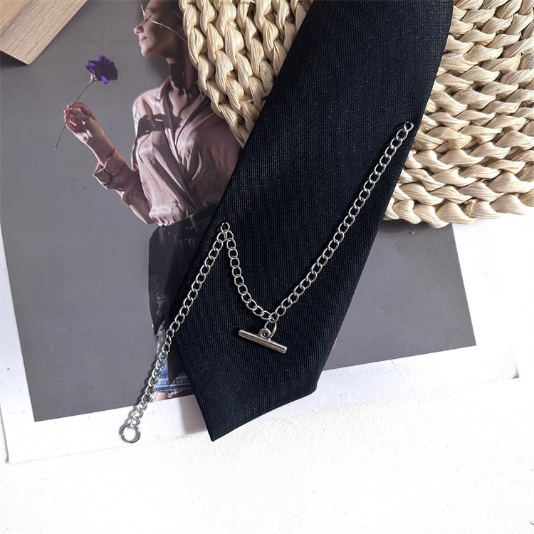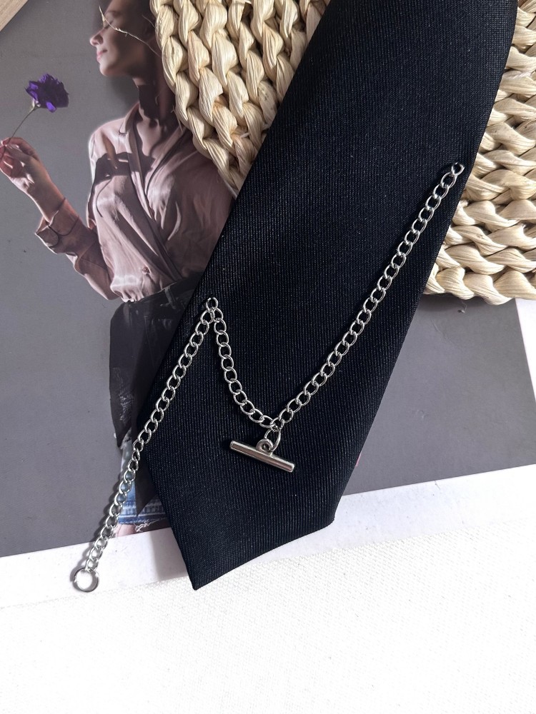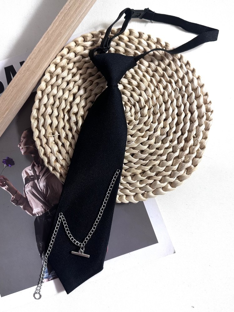 여성용 오리지널 체인 타이, 게으른 사람들을 위한 무료 금속 체인, 심플하고 패셔너블한 블랙 jk 대학 스타일, 잘 생긴 남자스토어 가기
