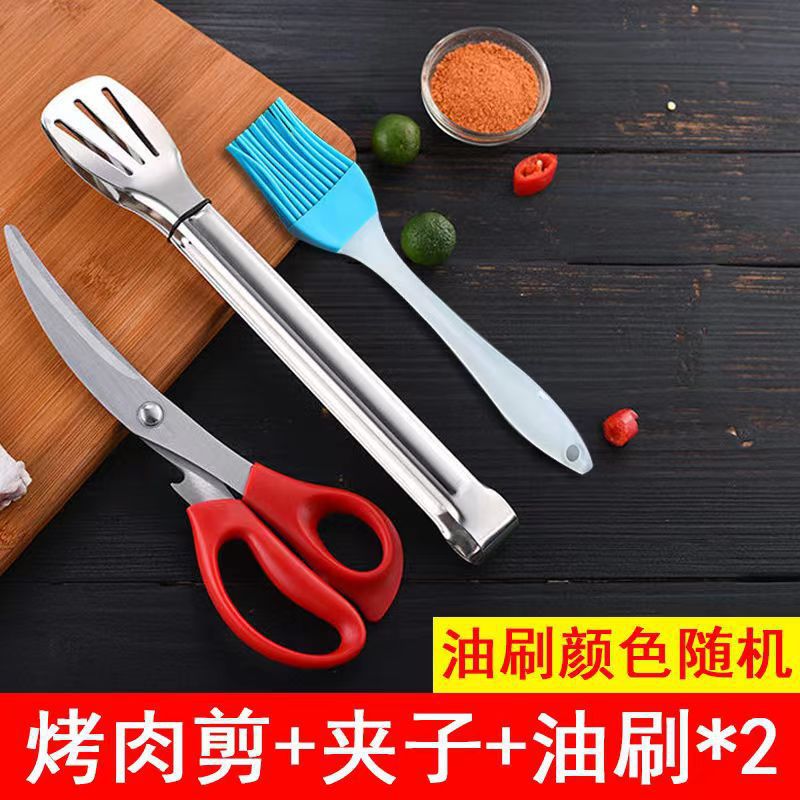 • 준비된 재고/검은색 바베큐 가위+클립+오일 브러시*2