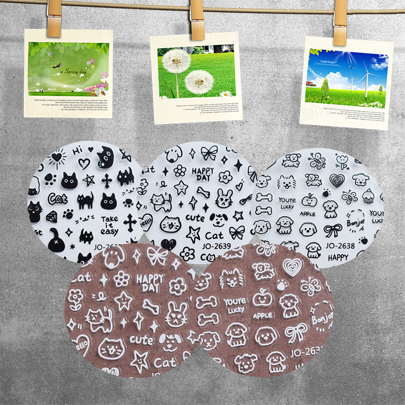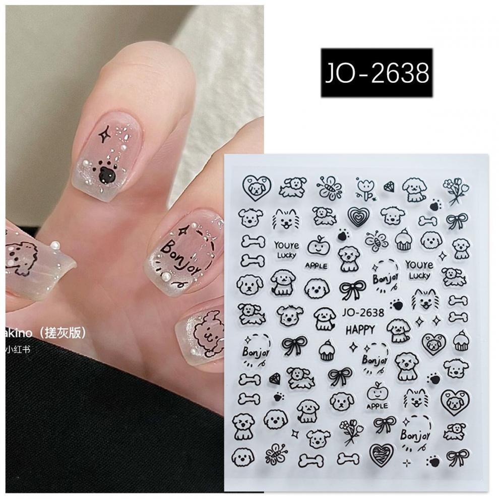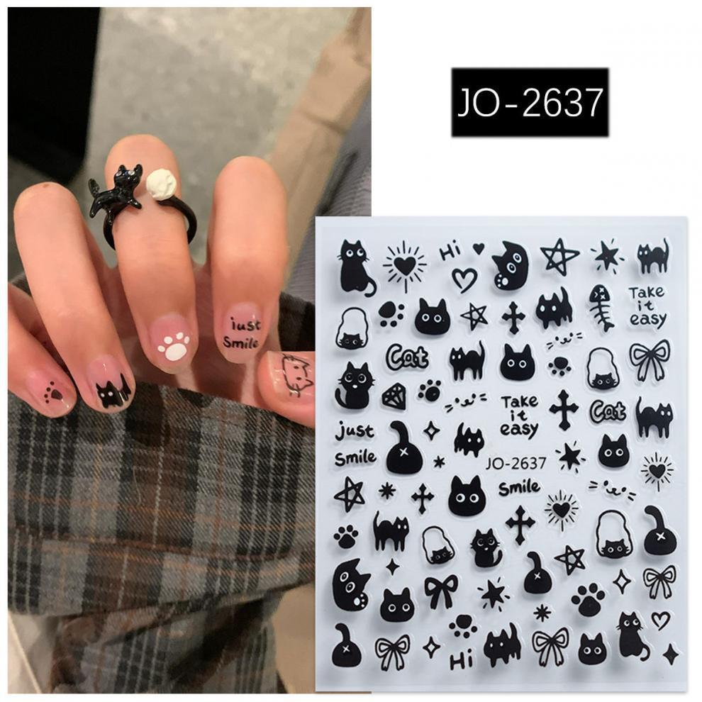 네일 아트 귀여운 고양이 강아지 손으로 그린 스티커 흑백 폭발 귀여운 만화 고양이 낙서 접착제 네일 아트 스티커