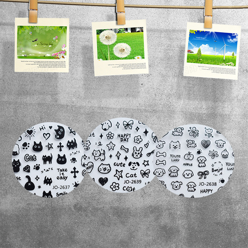 네일 아트 귀여운 고양이 강아지 손으로 그린 스티커 흑백 폭발 귀여운 만화 고양이 낙서 접착제 네일 아트 스티커스토어 가기