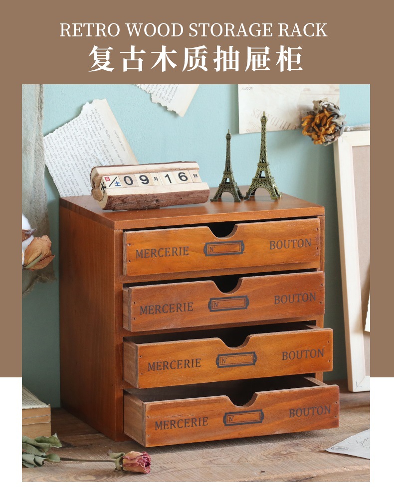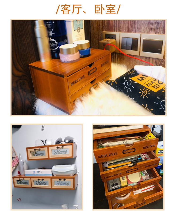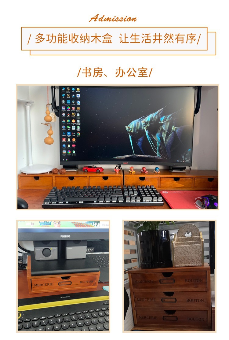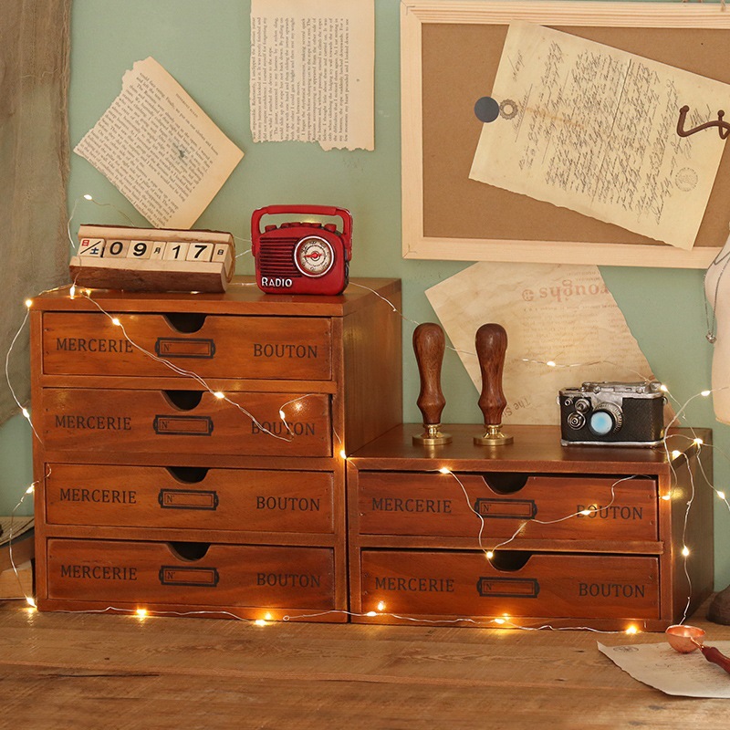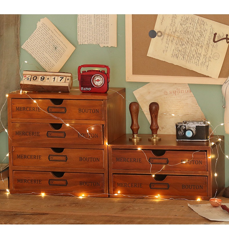 컴퓨터 모니터 높은 랙 빈티지 나무 캐비닛 사무실 데스크탑 다기능 서랍 형 마감 보관 상자스토어 가기