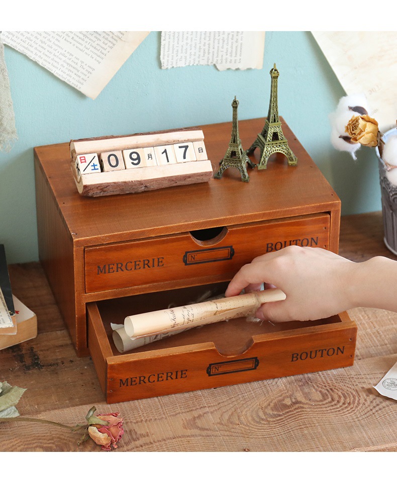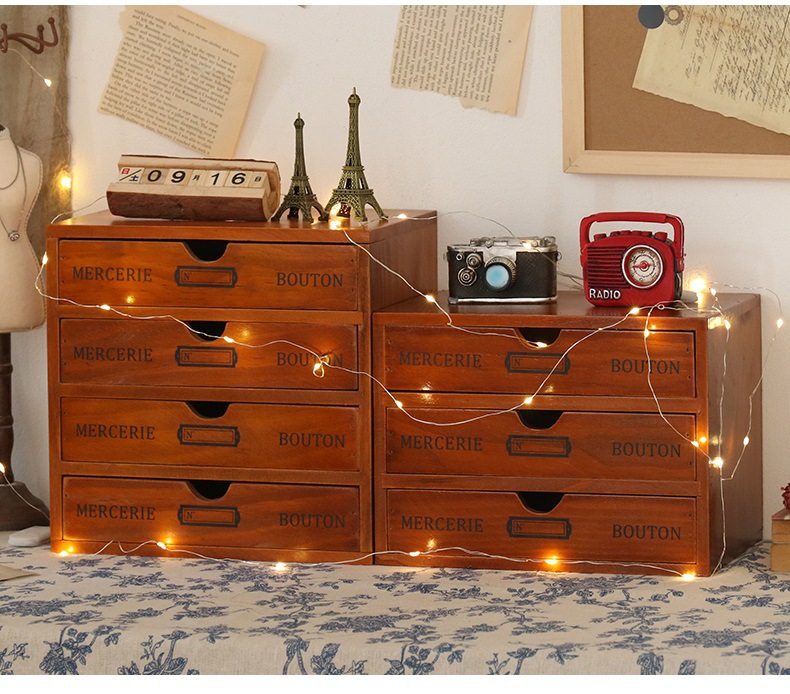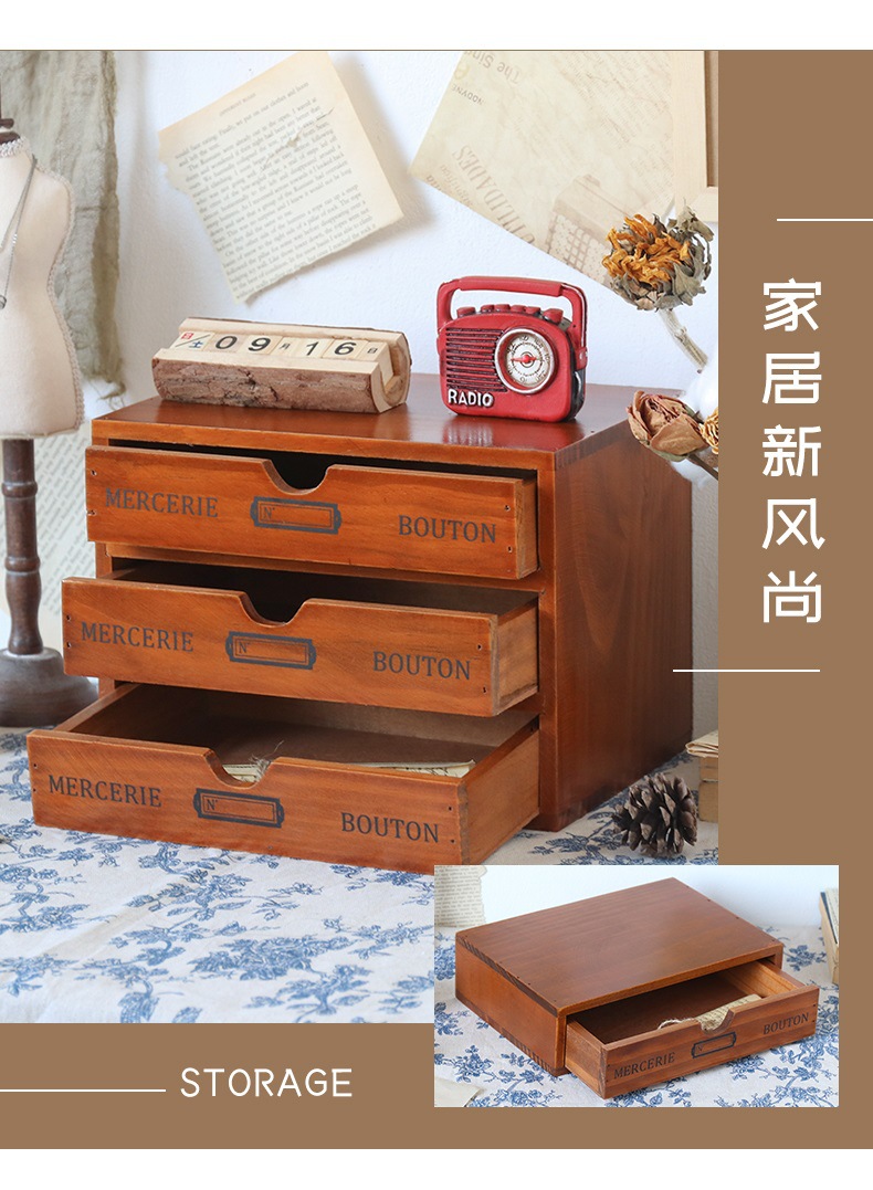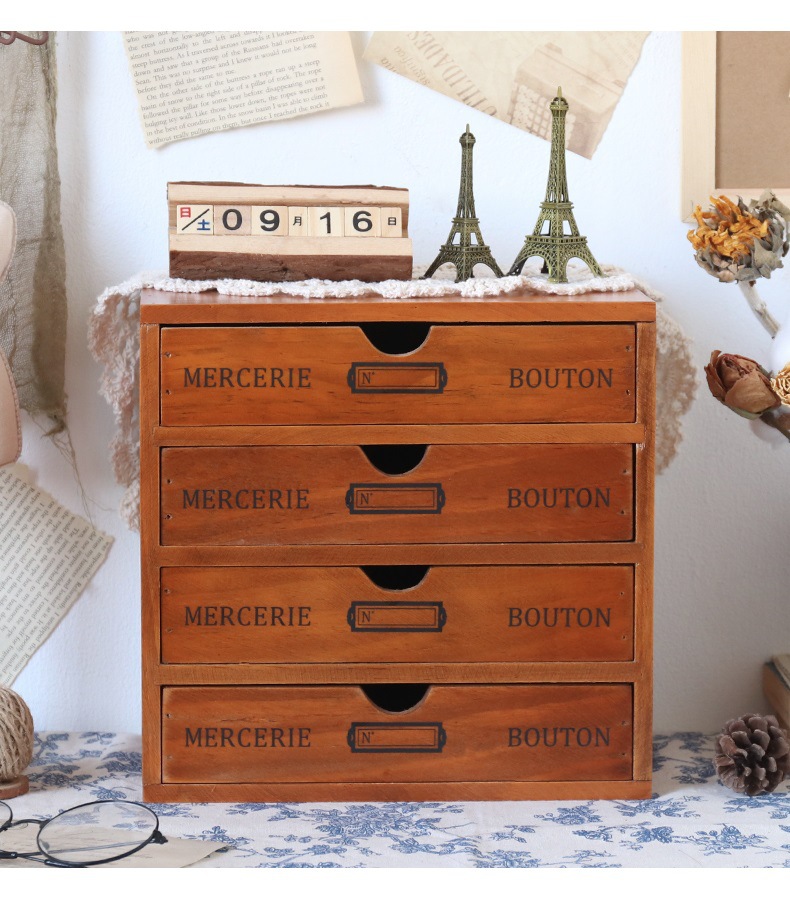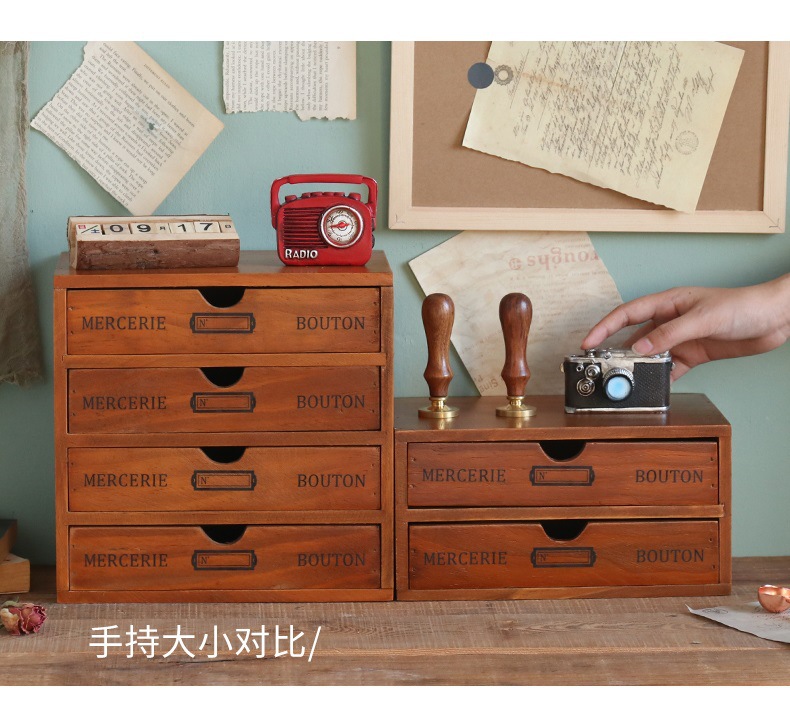 컴퓨터 모니터 높은 랙 빈티지 나무 캐비닛 사무실 데스크탑 다기능 서랍 형 마감 보관 상자스토어 가기
