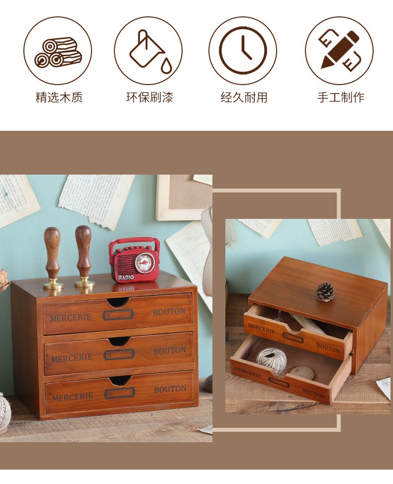 컴퓨터 모니터 높은 랙 빈티지 나무 캐비닛 사무실 데스크탑 다기능 서랍 형 마감 보관 상자
