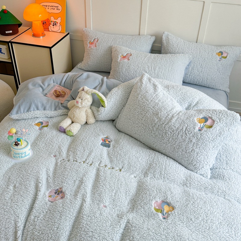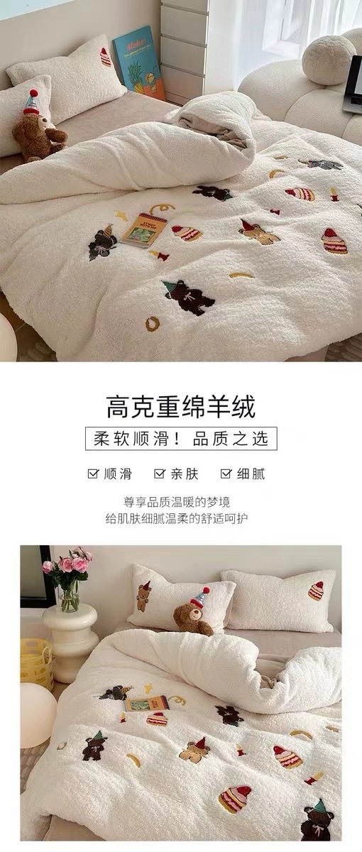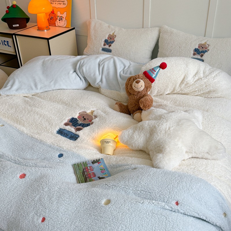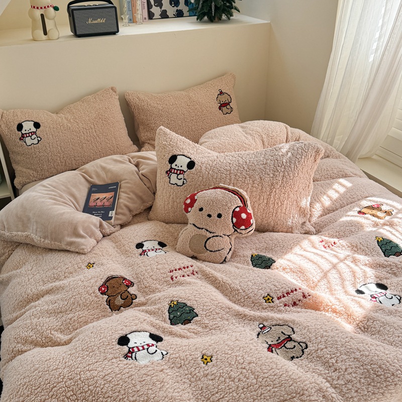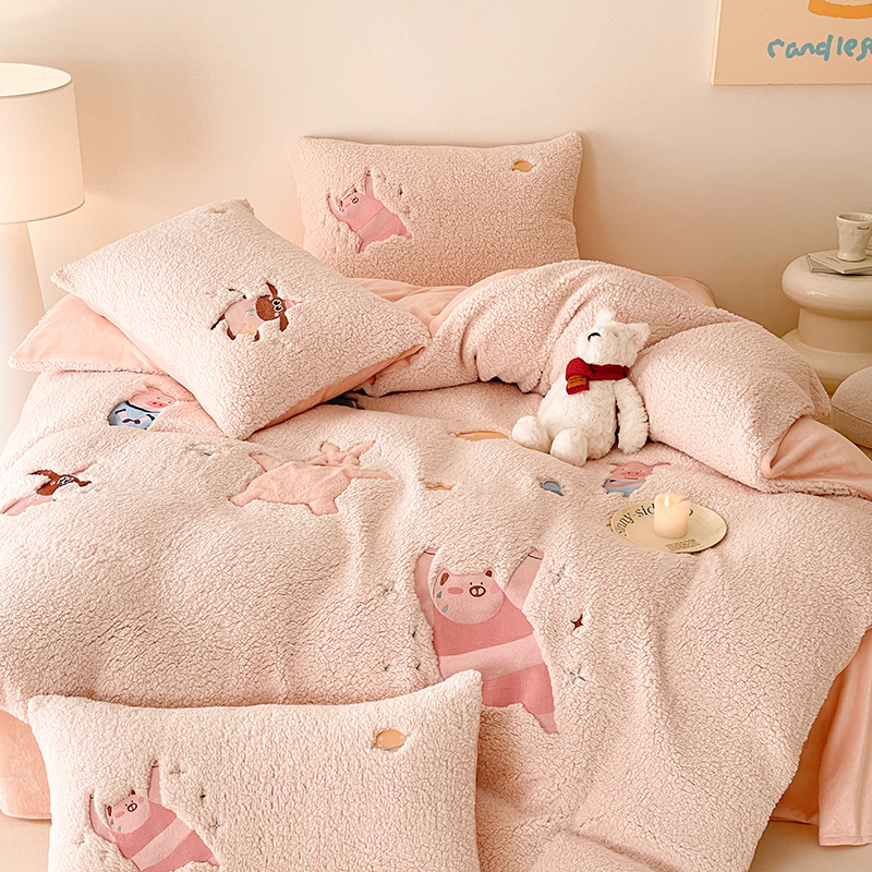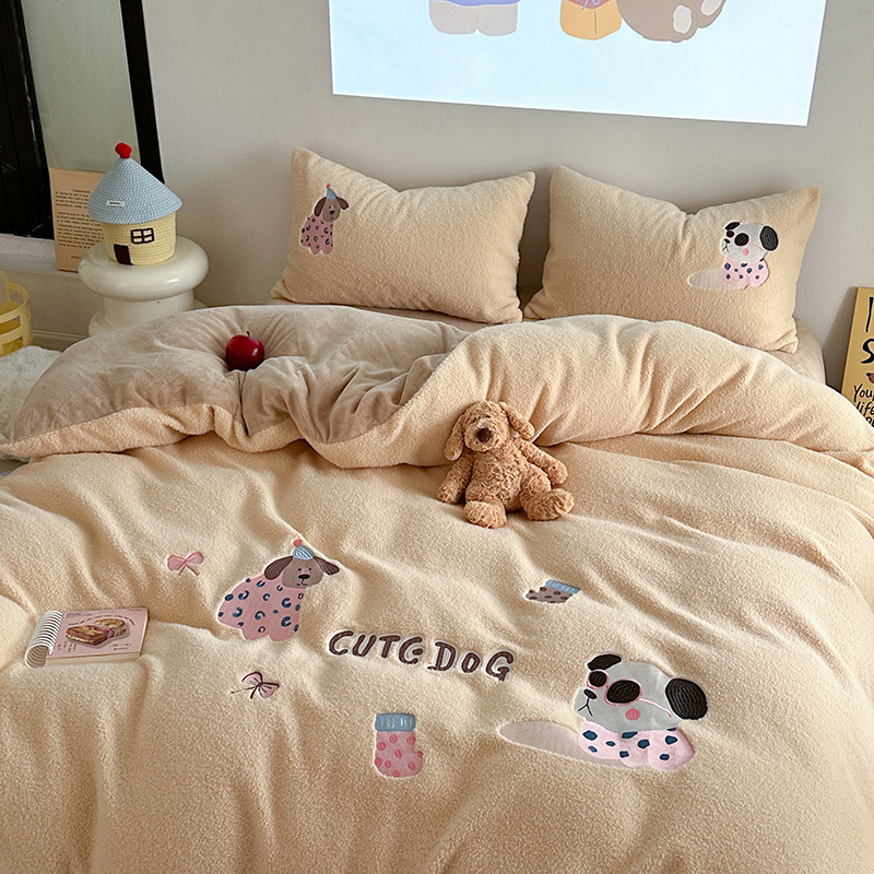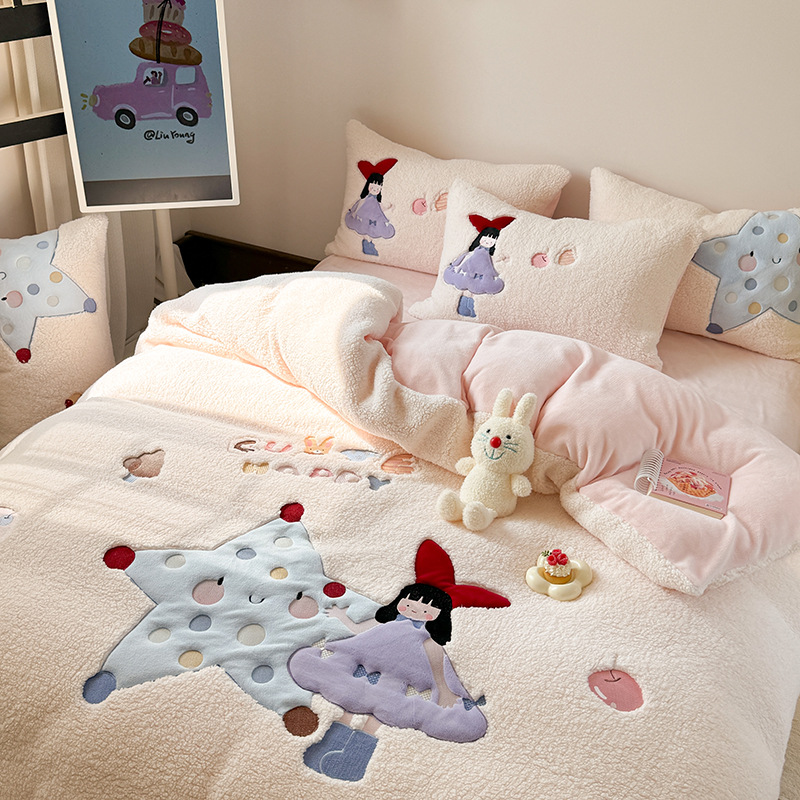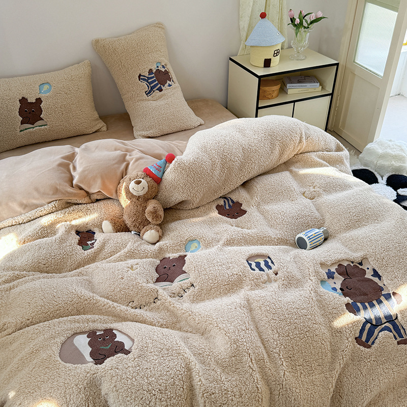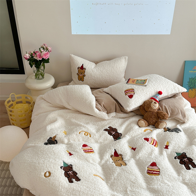 클래스 A 양고기 벨벳 침대 4 피스 만화 자수 우유 벨벳 양면 벨벳 퀼트 커버 가을과 겨울 두꺼운 기숙사 3 피스 세트