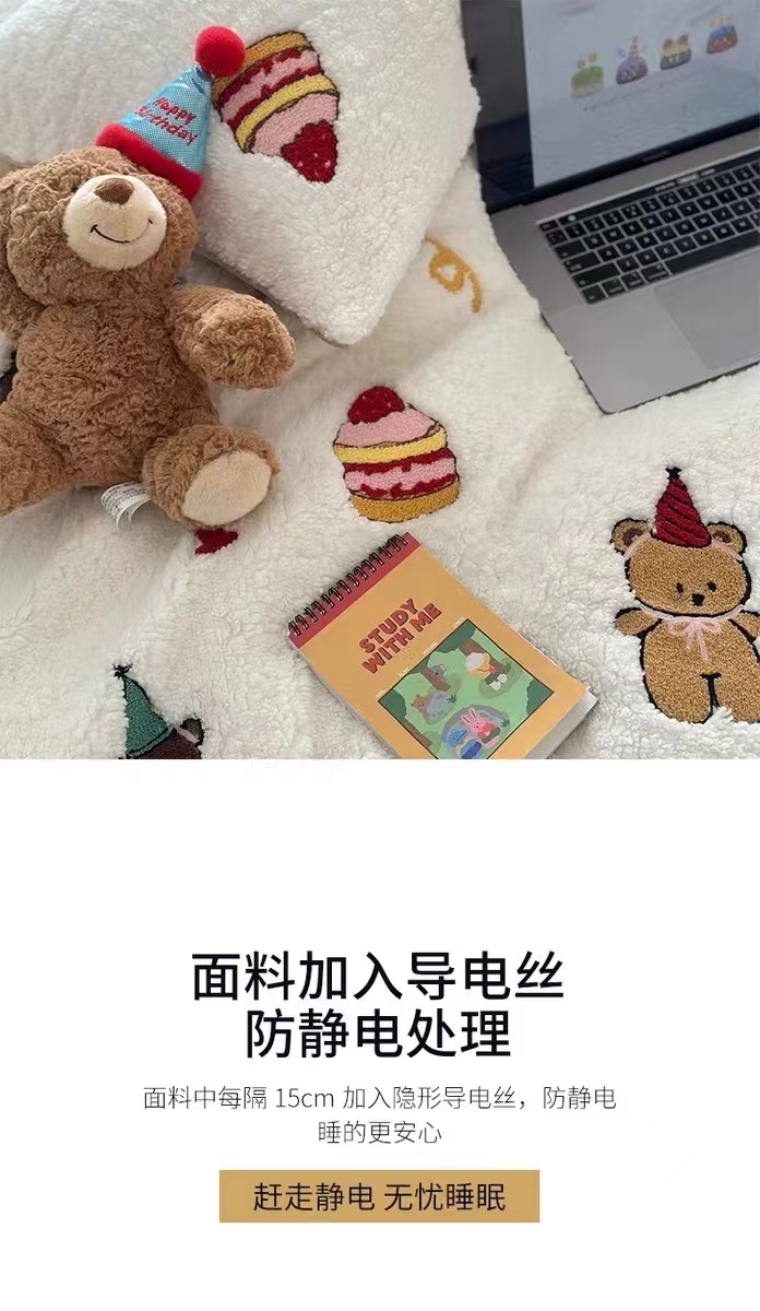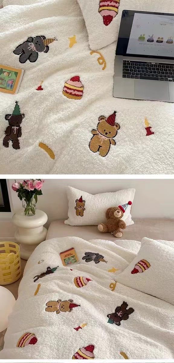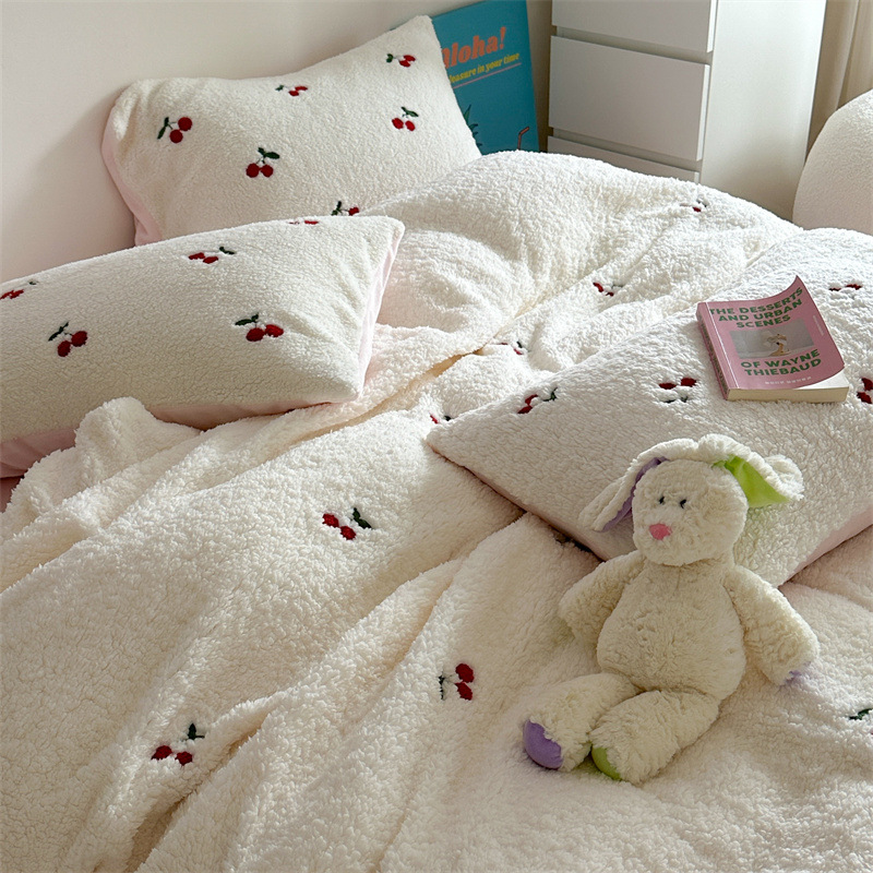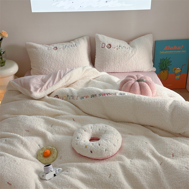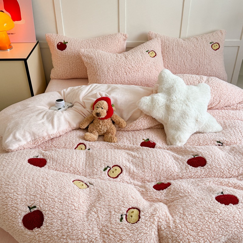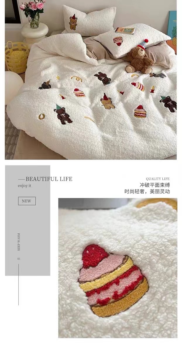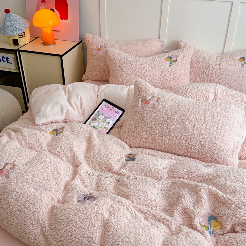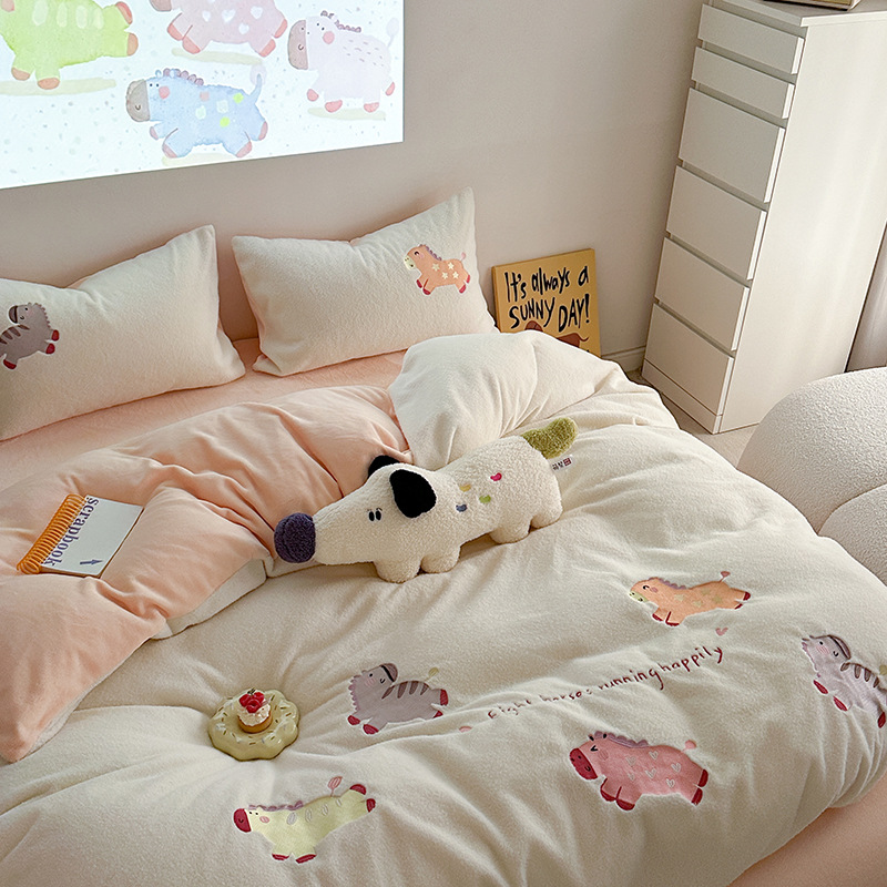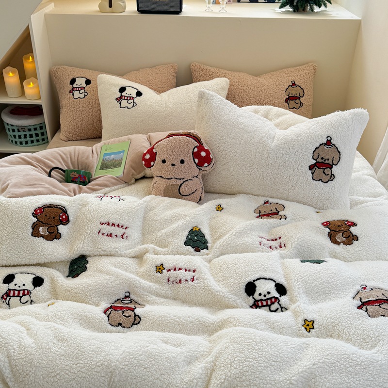 클래스 A 양고기 벨벳 침대 4 피스 만화 자수 우유 벨벳 양면 벨벳 퀼트 커버 가을과 겨울 두꺼운 기숙사 3 피스 세트