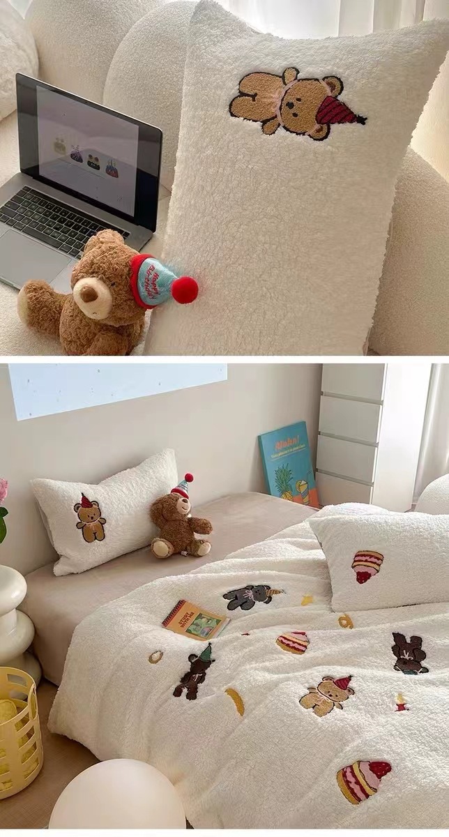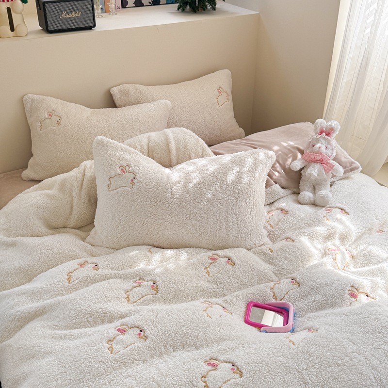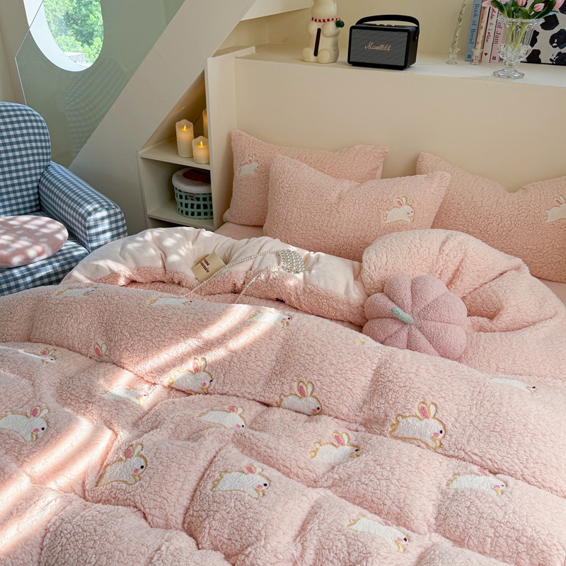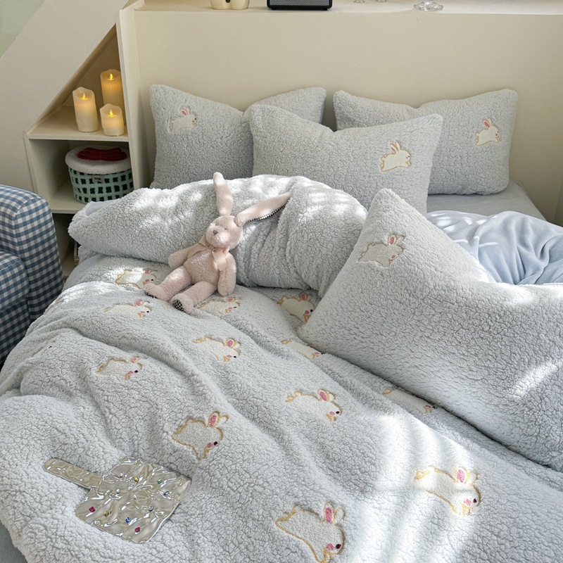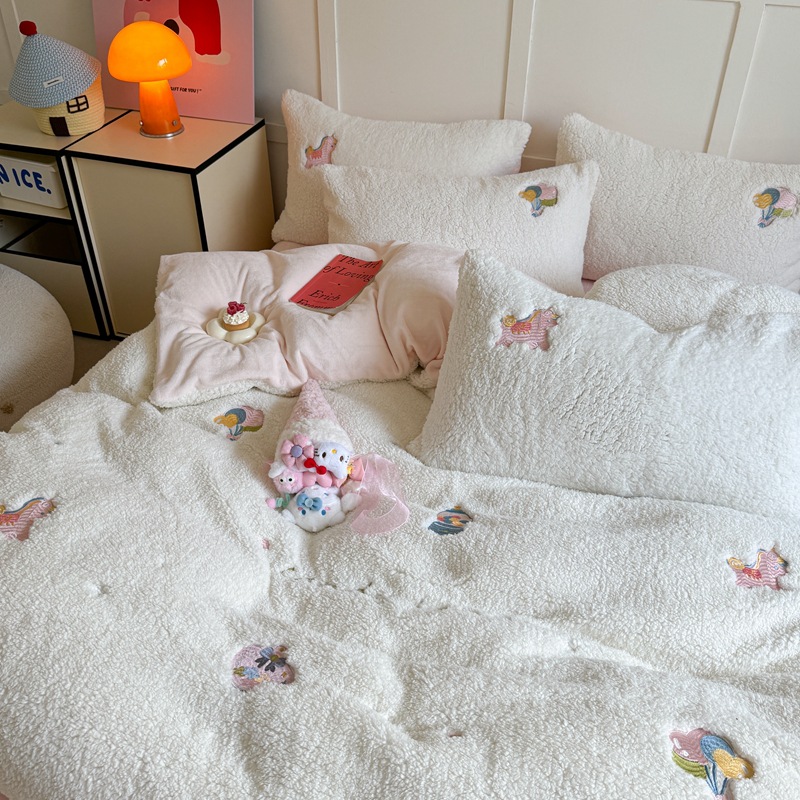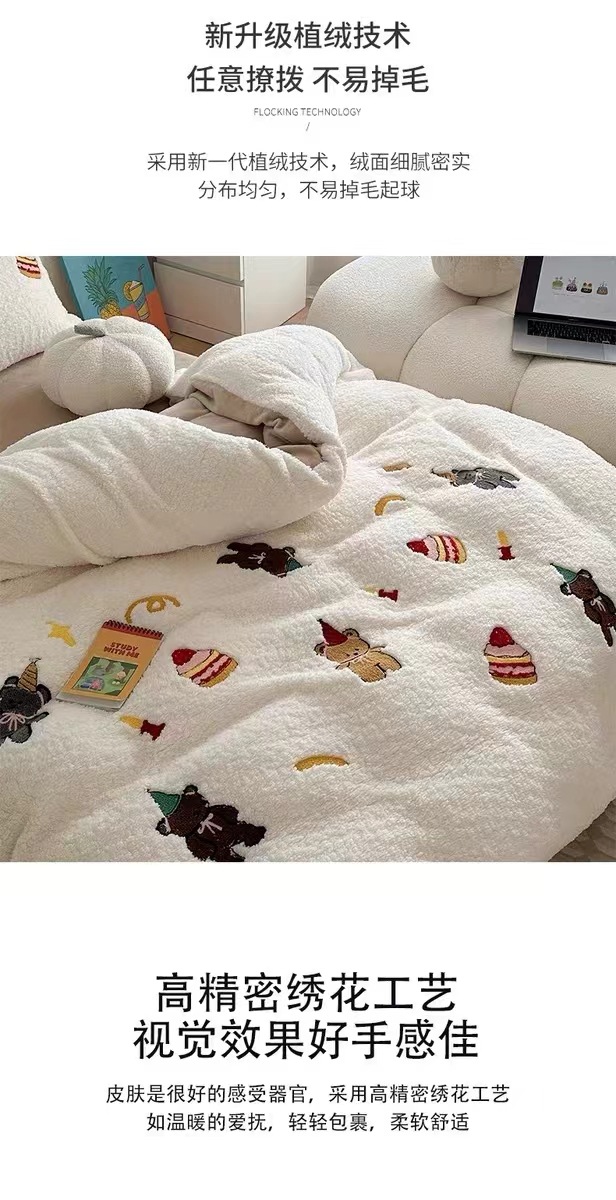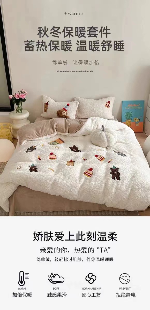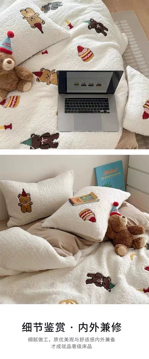 클래스 A 양고기 벨벳 침대 4 피스 만화 자수 우유 벨벳 양면 벨벳 퀼트 커버 가을과 겨울 두꺼운 기숙사 3 피스 세트스토어 가기
